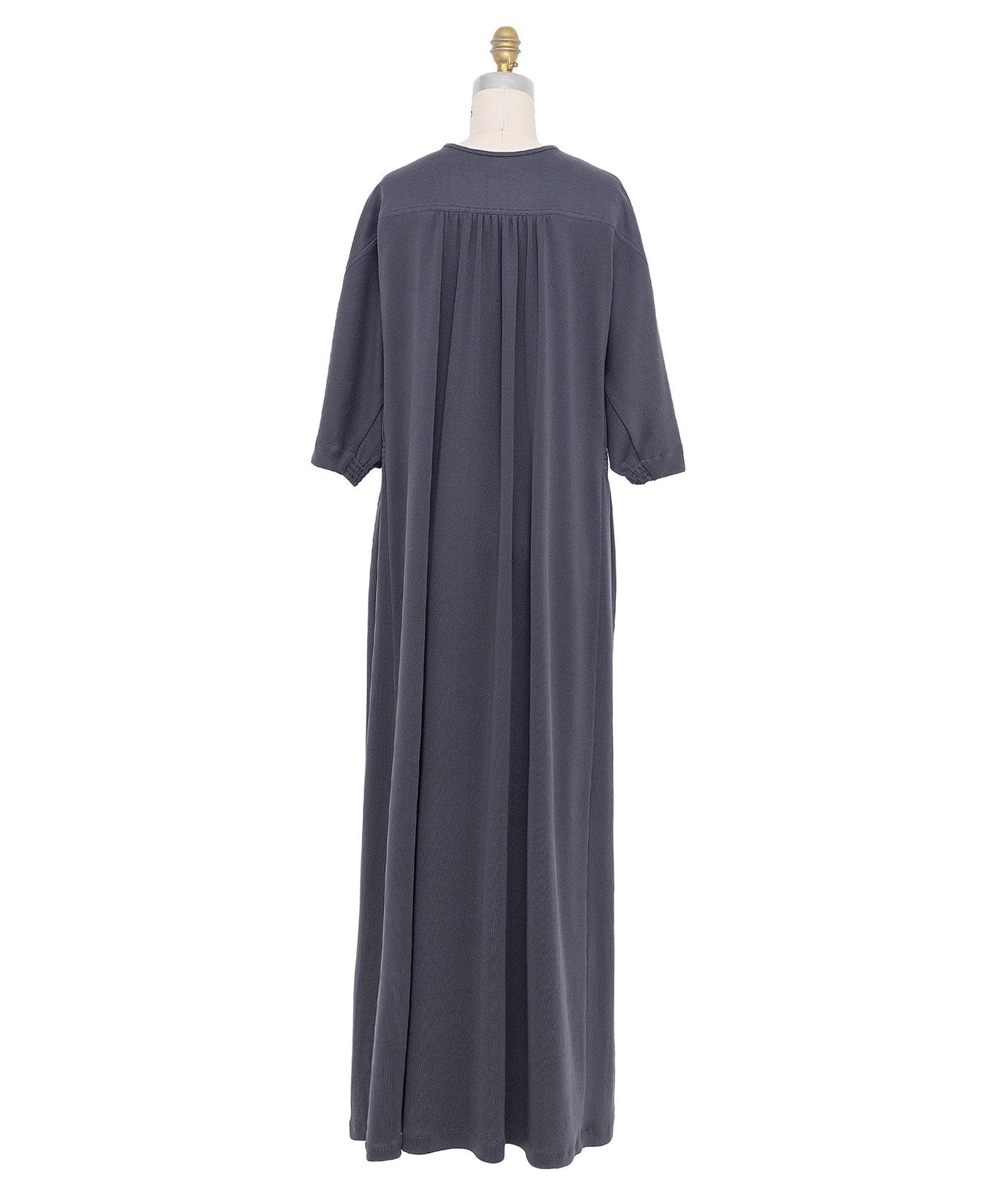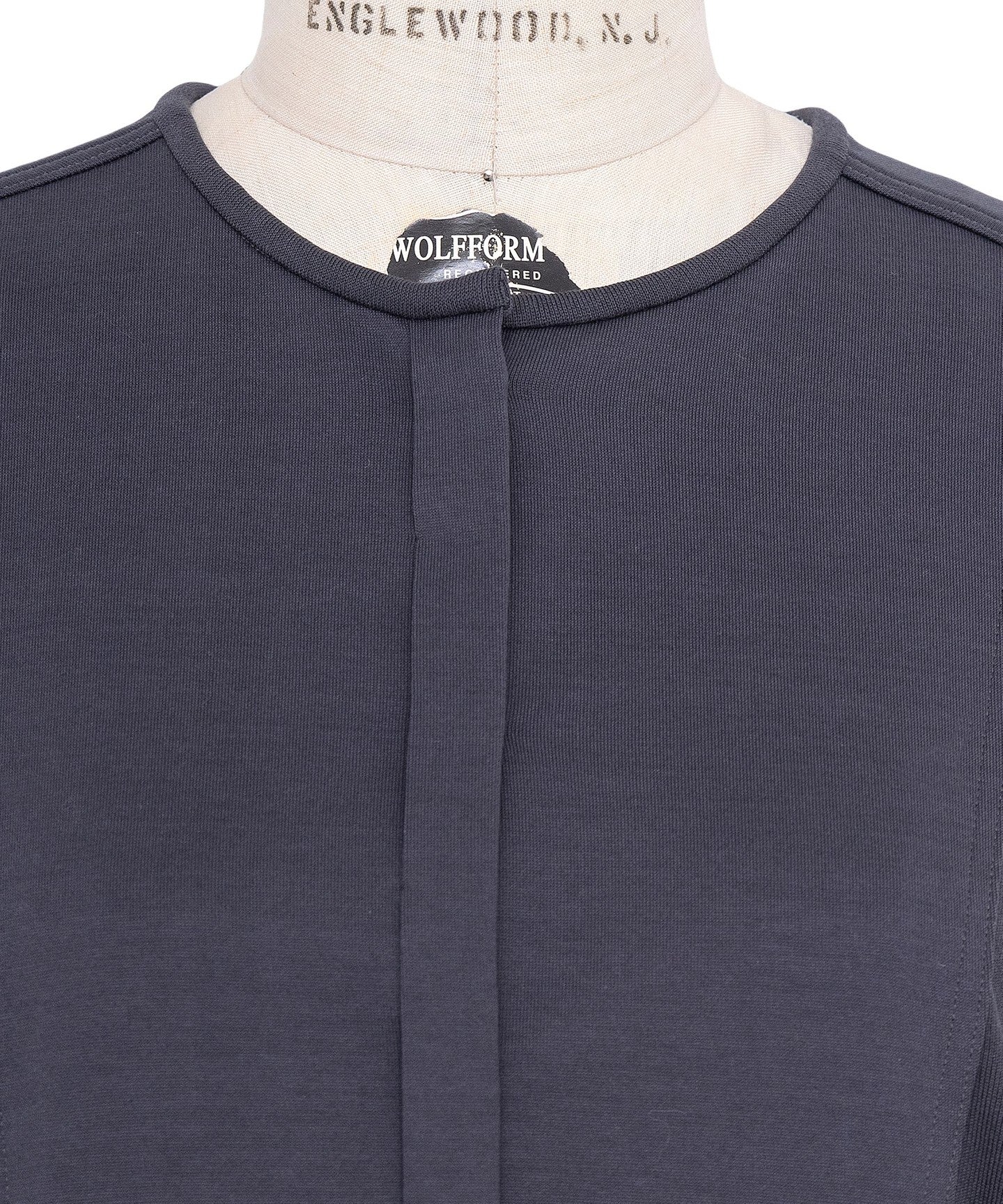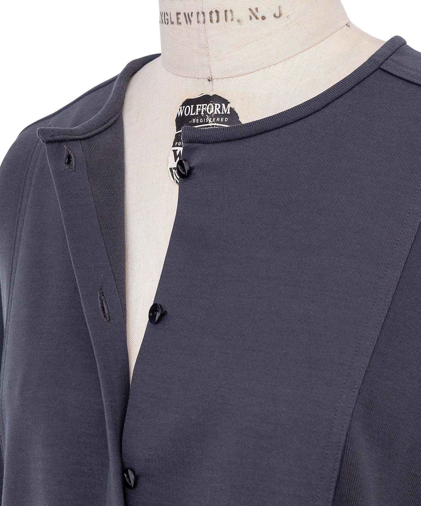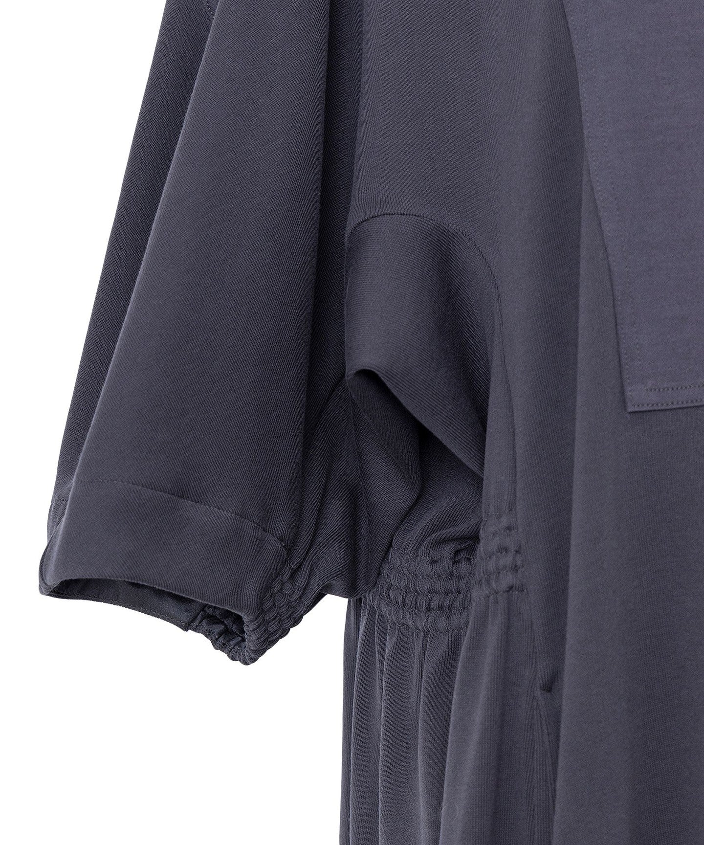 The front bust is made of glossy jersey material, and the material change creates a dynamic no-collar design. DRESS .