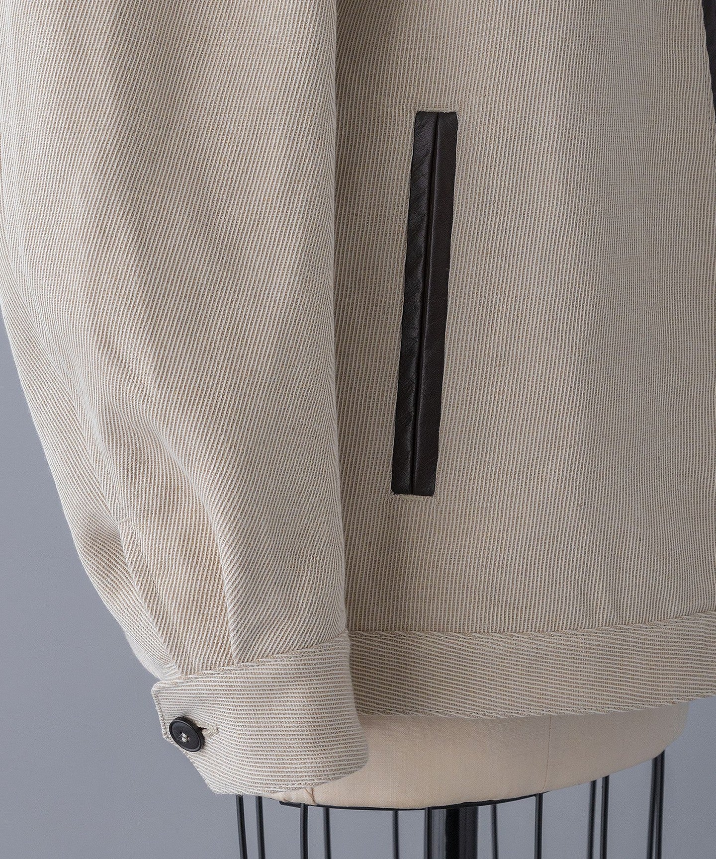 BEIGE:表生地;麻65% コットン35% 裏生地; 身頃;コットン100% 袖;キュプラ100% 皮革部分;羊革
