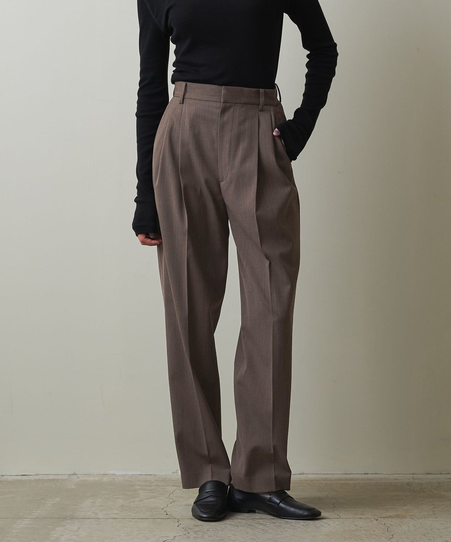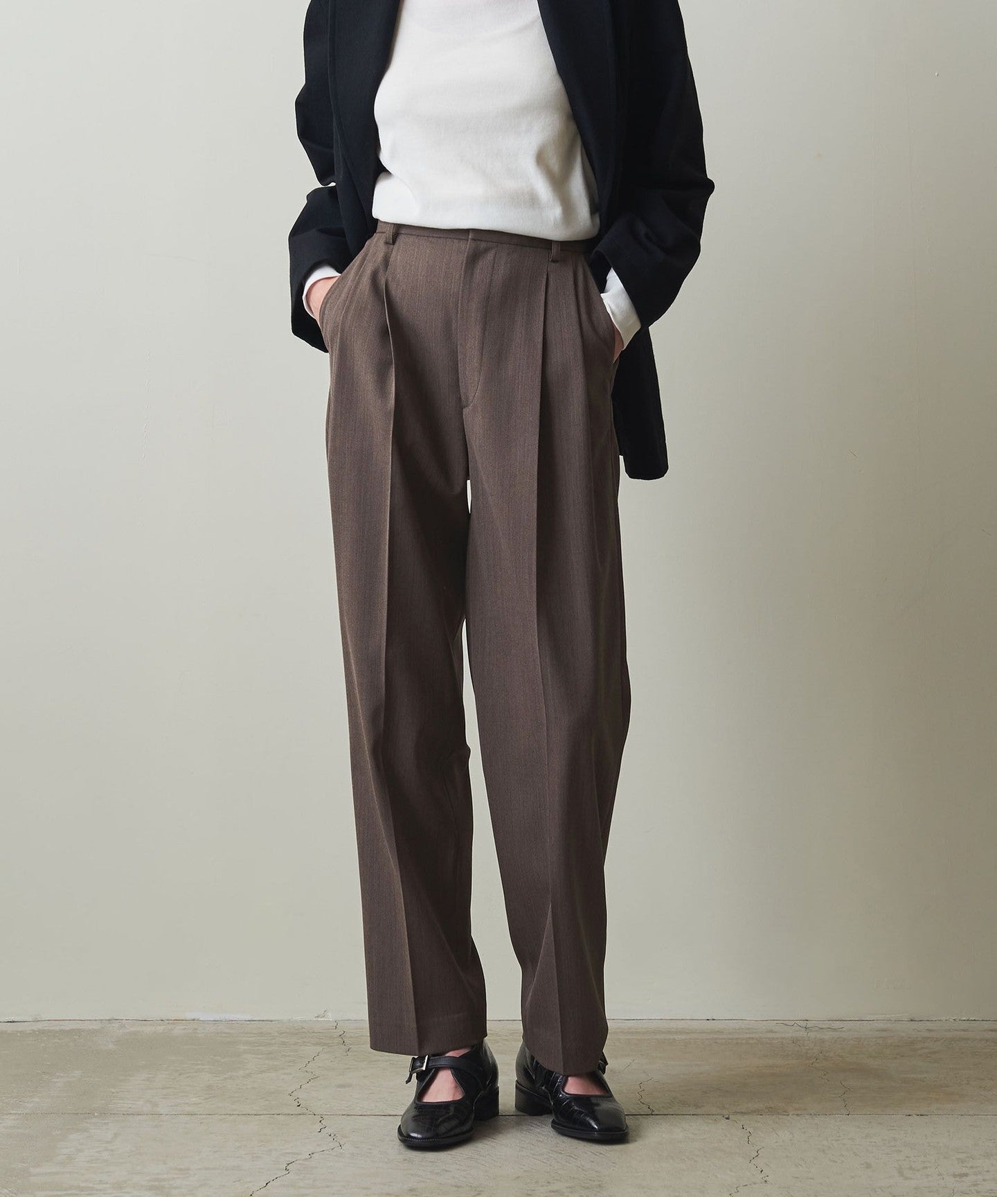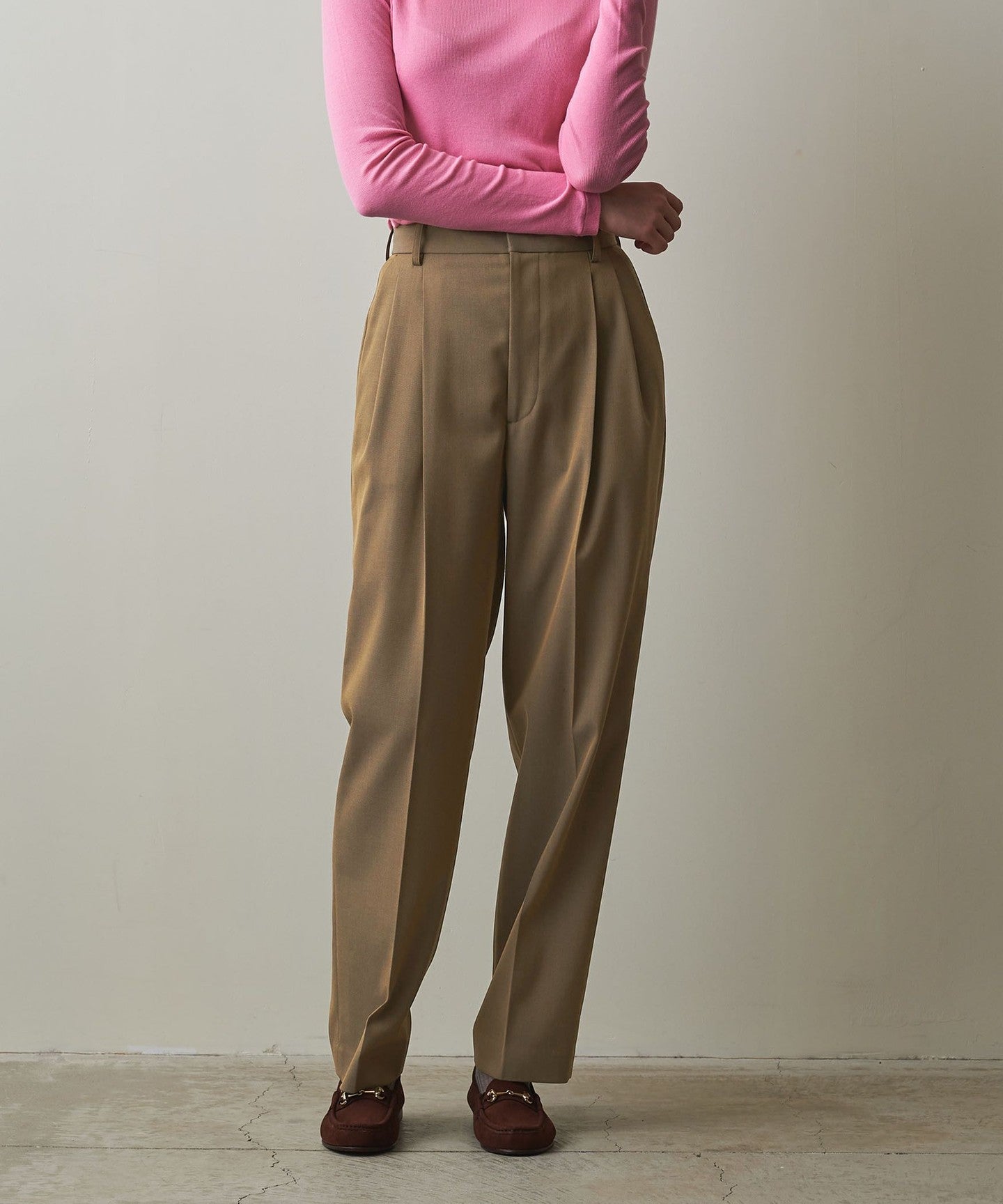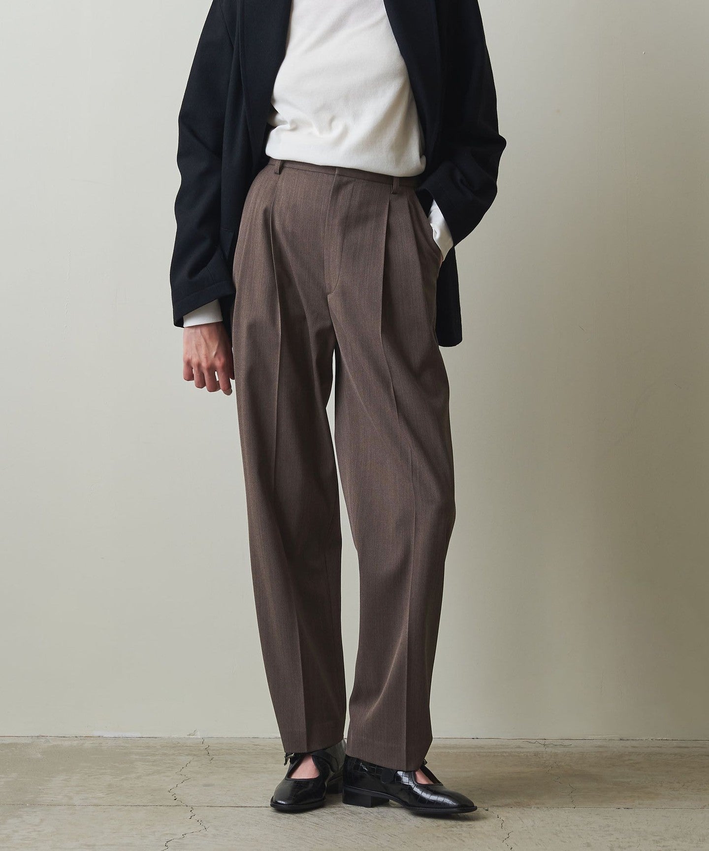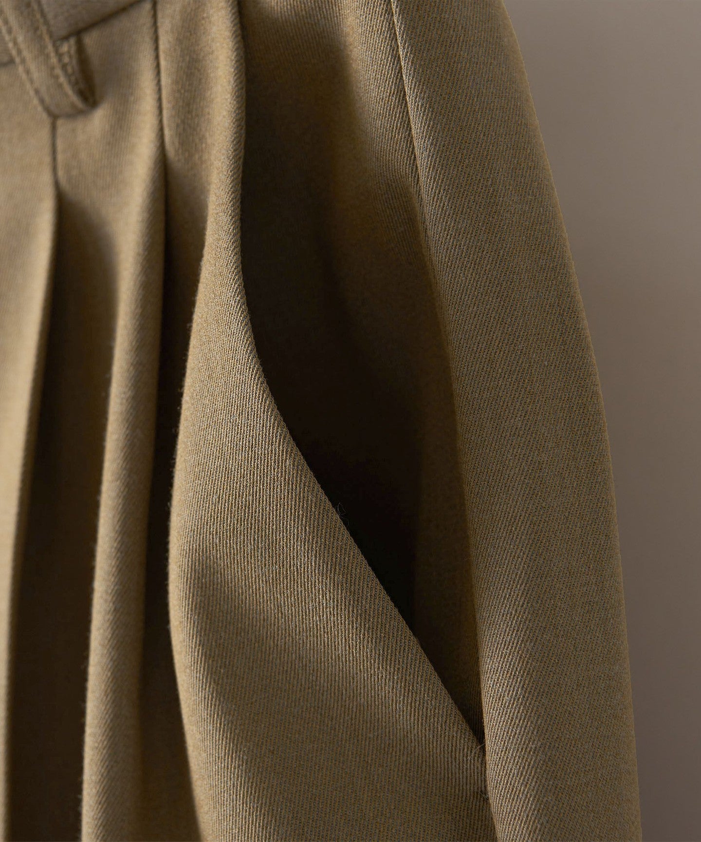 These pleated pants are made from a soft twill material that has just the right amount of firmness and drape.