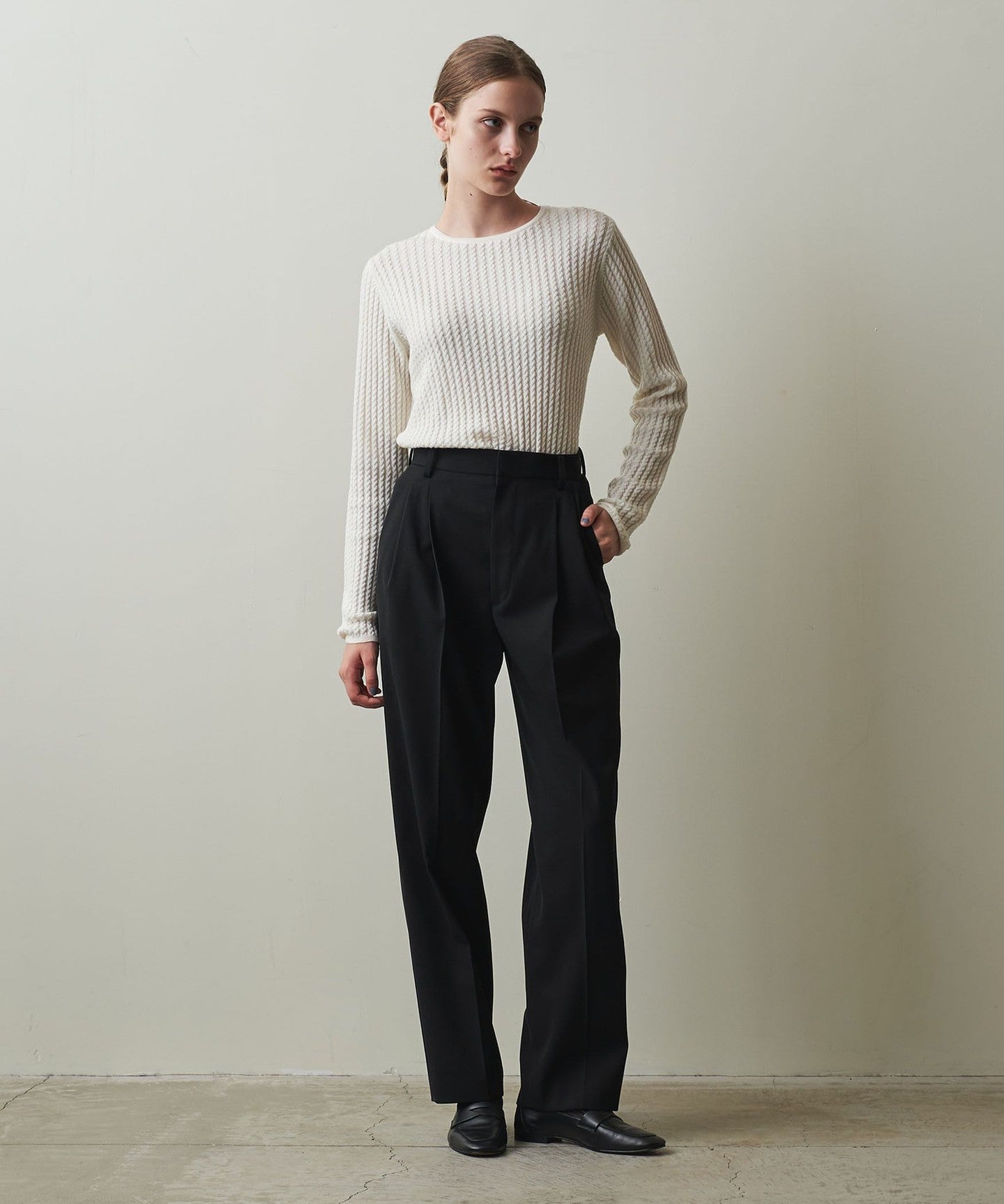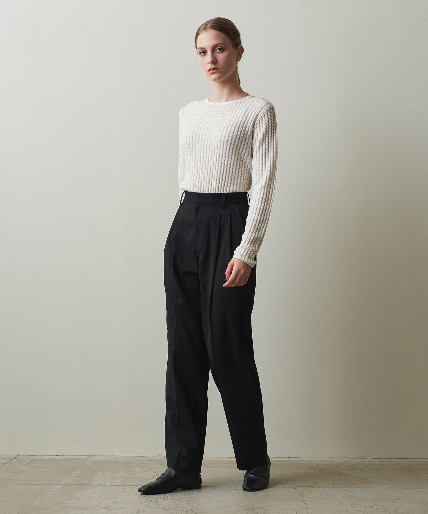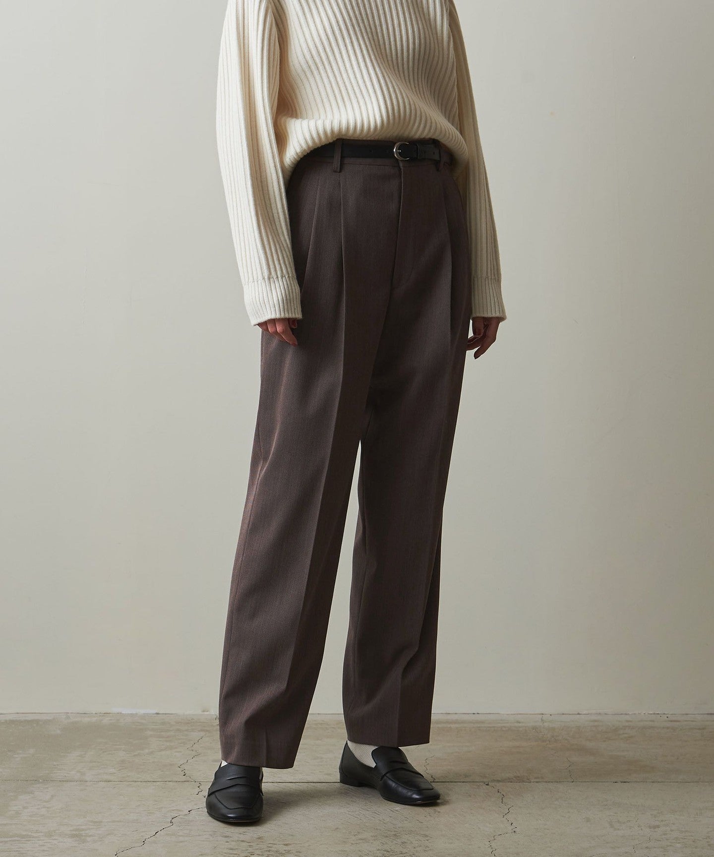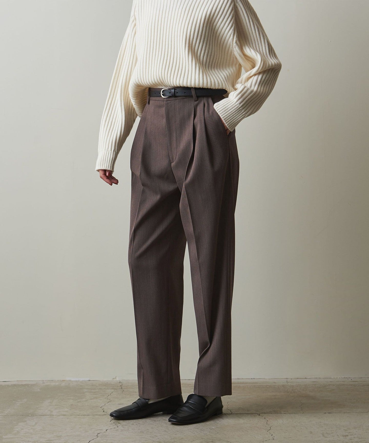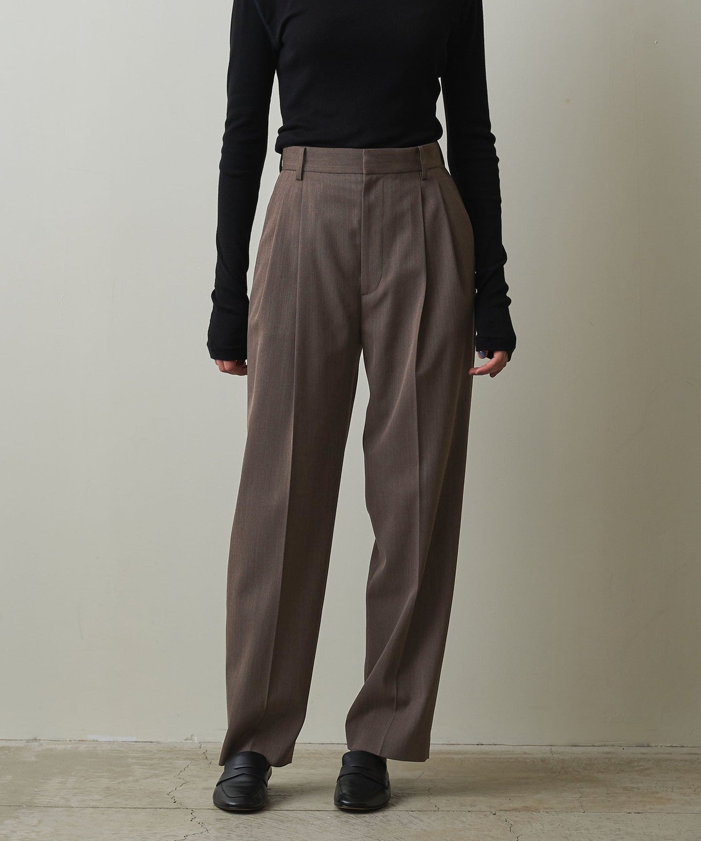 These pleated pants are made from a soft twill material that has just the right amount of firmness and drape.