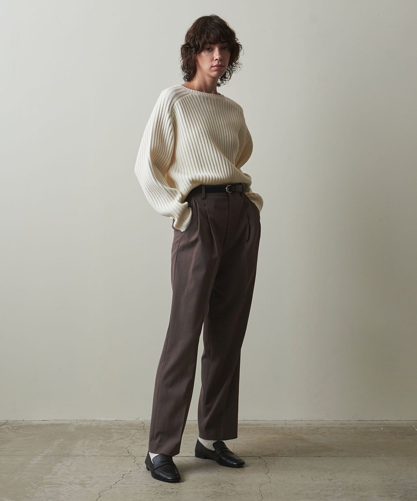 BLACK:レーヨン44% 毛36% ポリエステル19% ポリウレタン1% BEIGE:レーヨン44% 毛36% ポリエステル19% ポリウレタン1% |