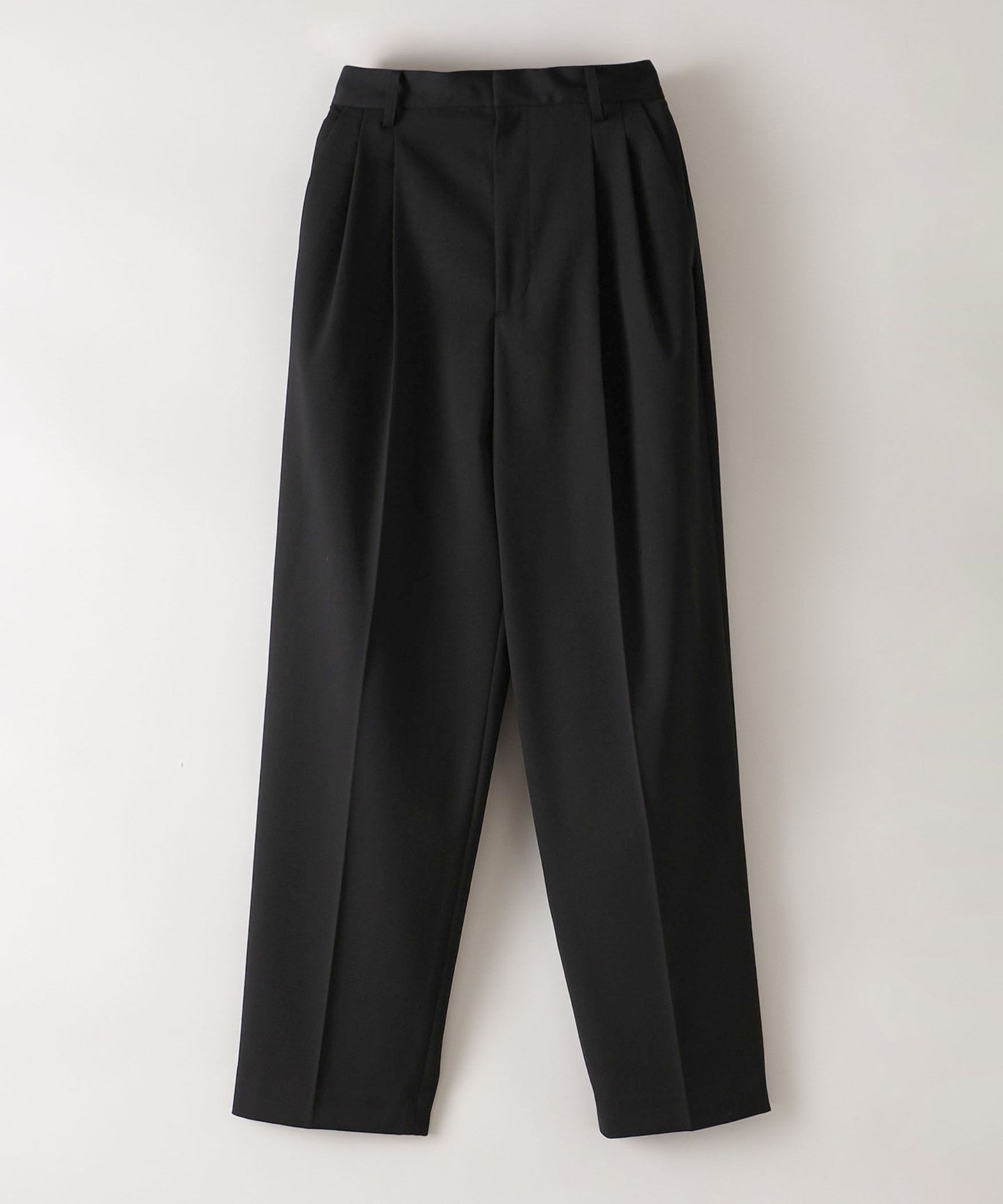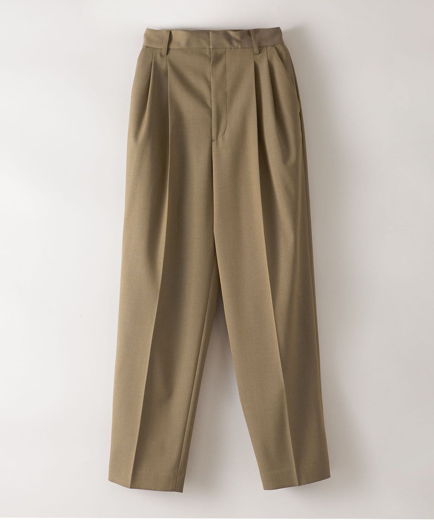 The two pleats on the front and tapered silhouette that narrows towards the hem give a sharp impression.