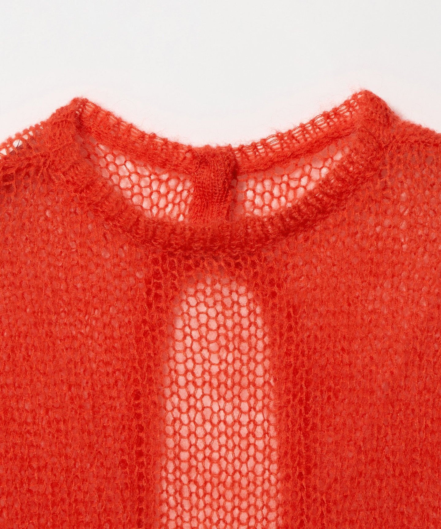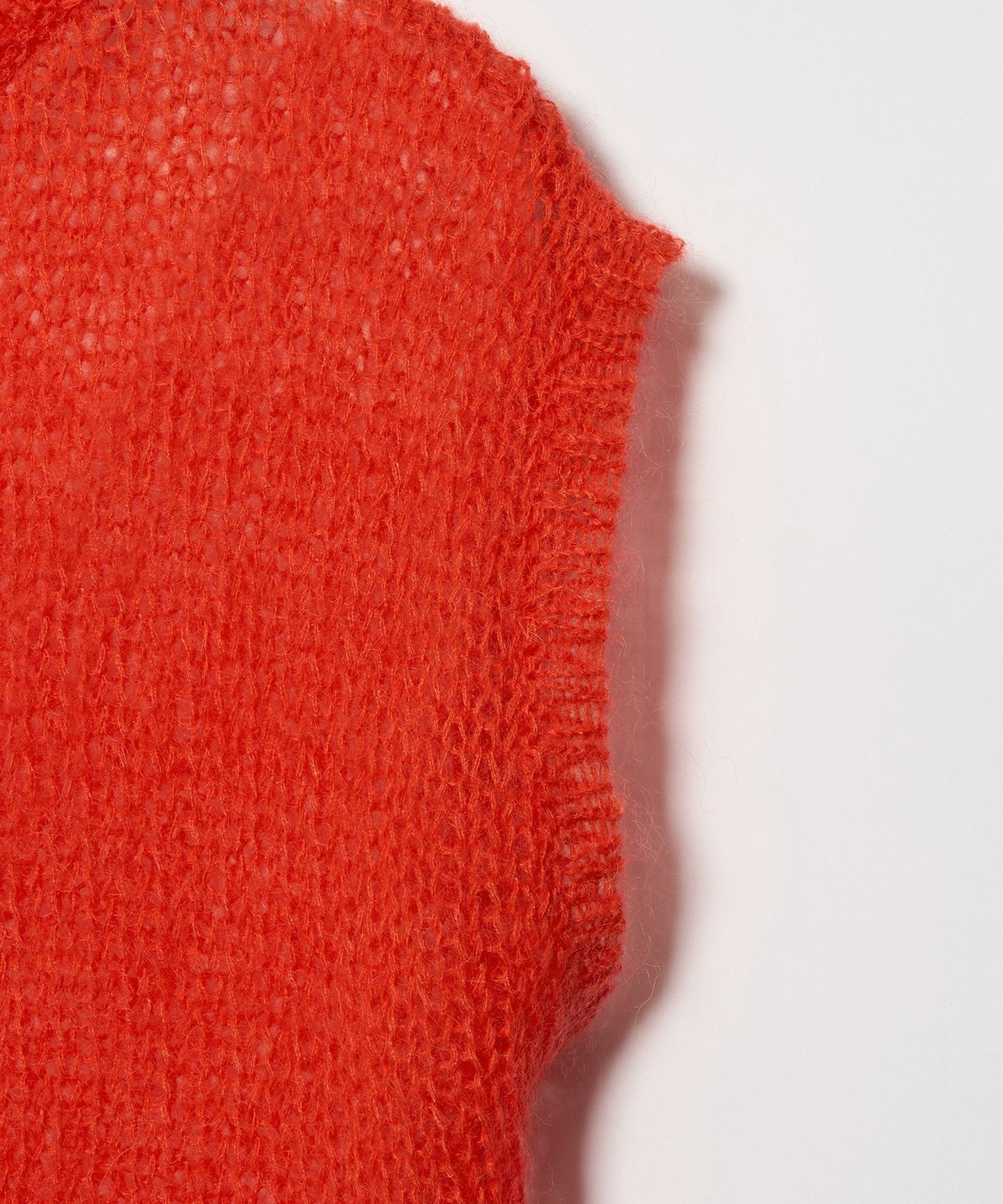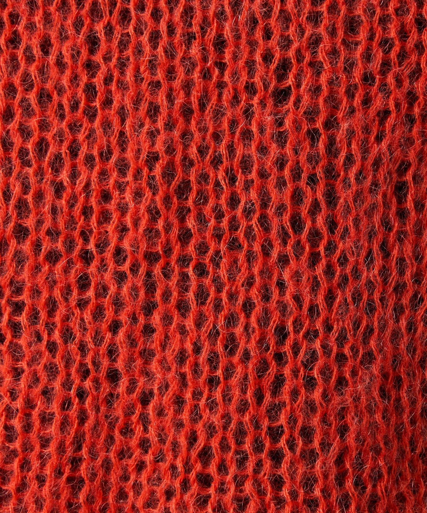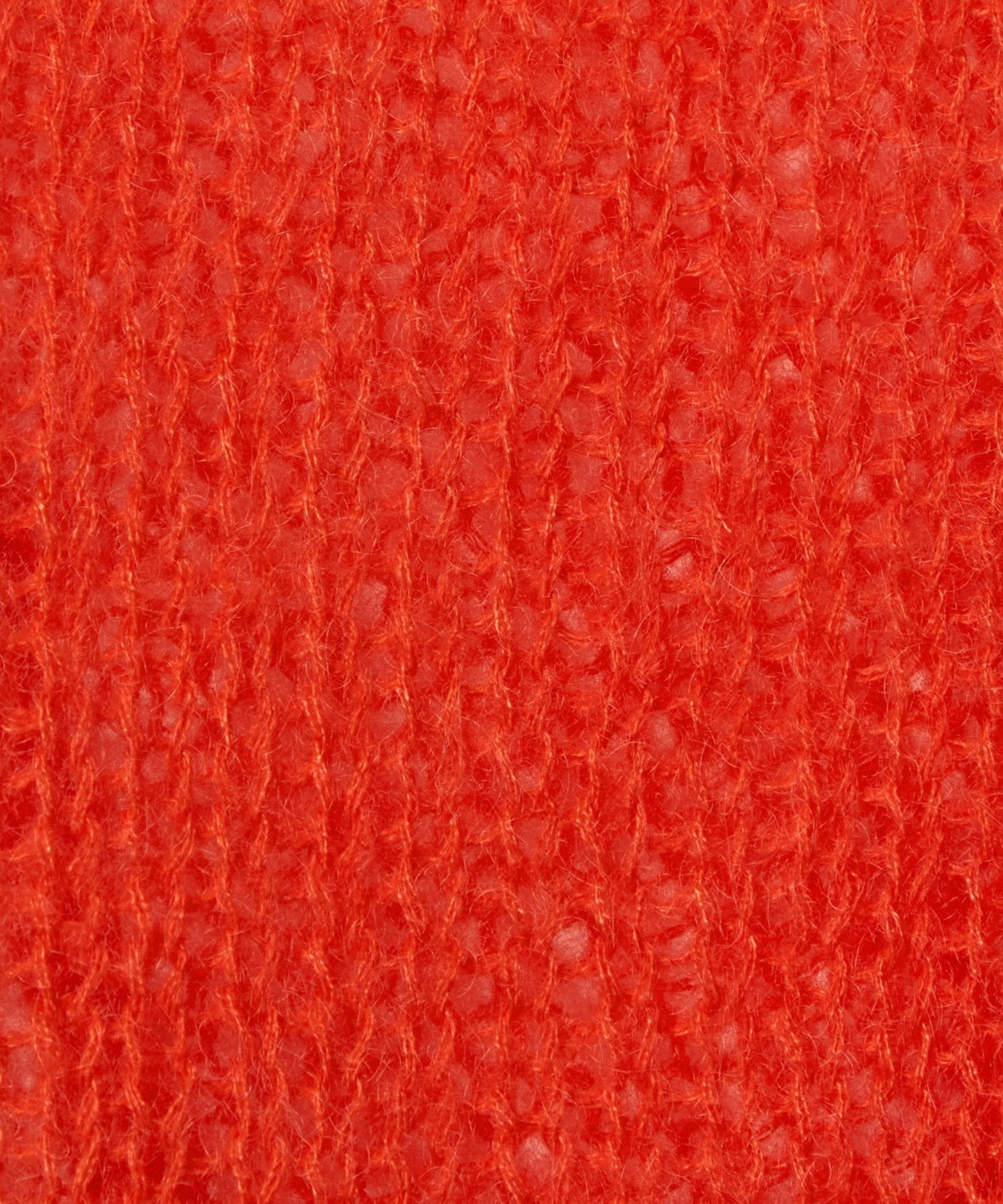 This piece is made of a mohair blend material that has a soft and fluffy texture, and the contrast of bright colors gives it a striking look.