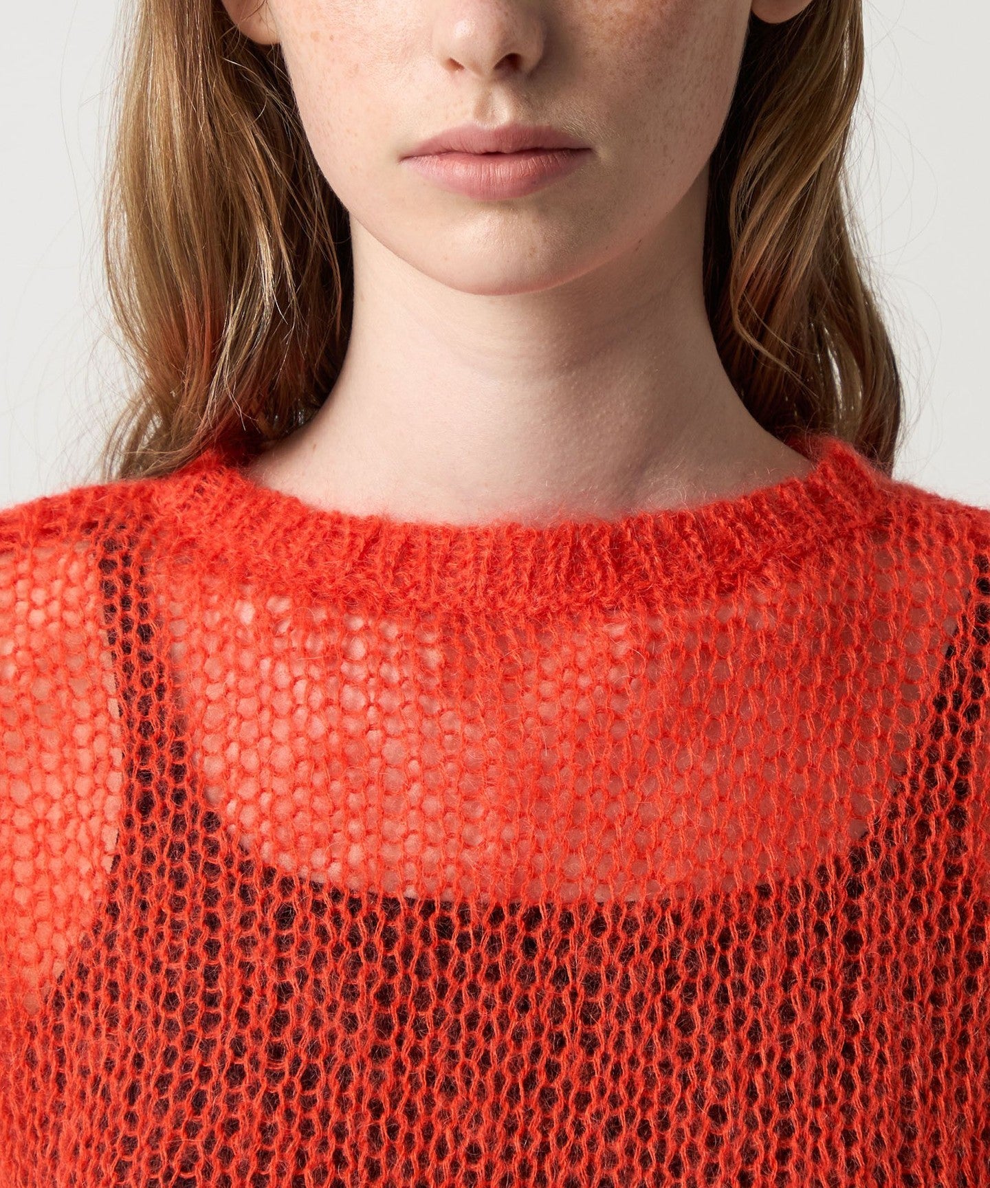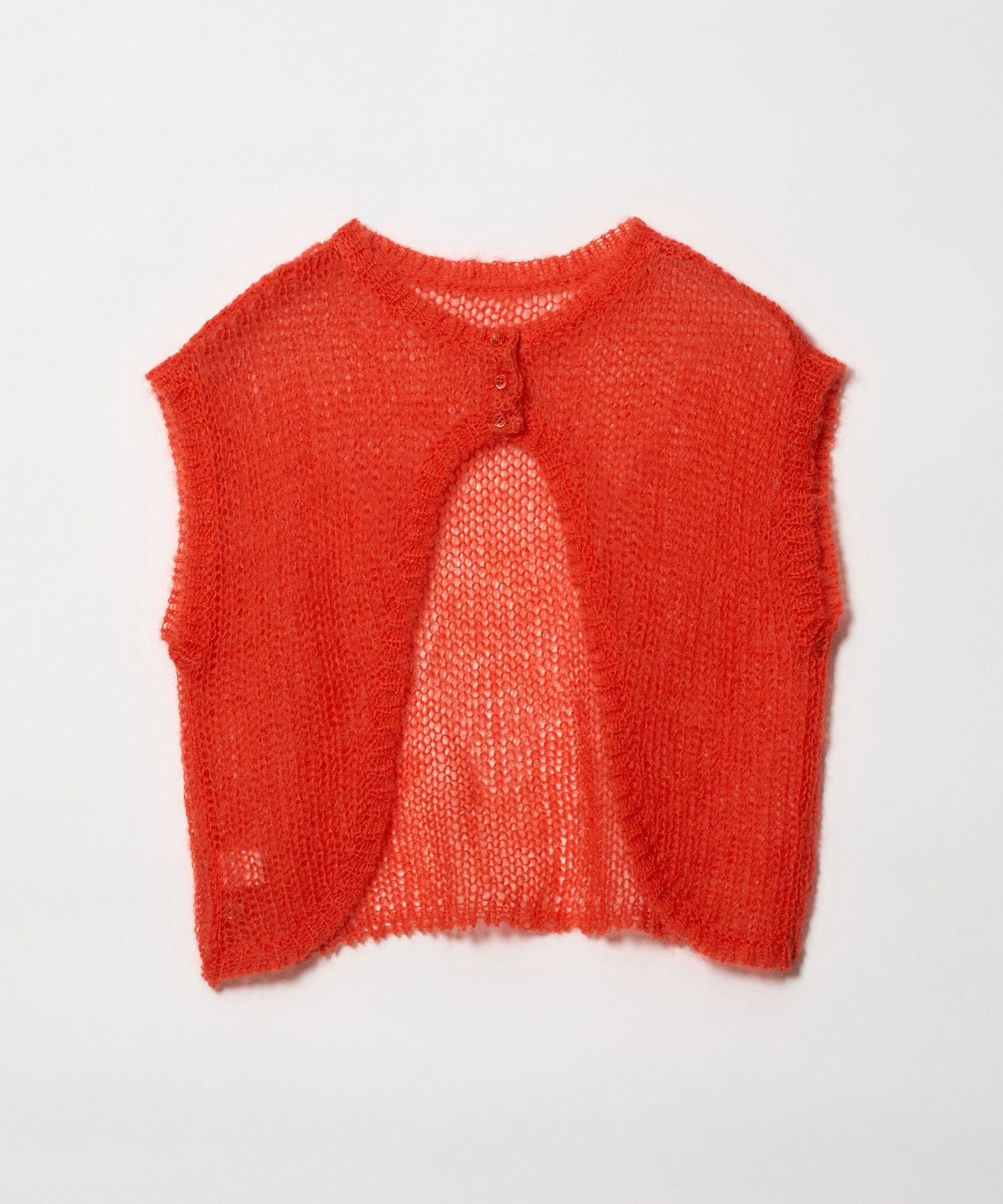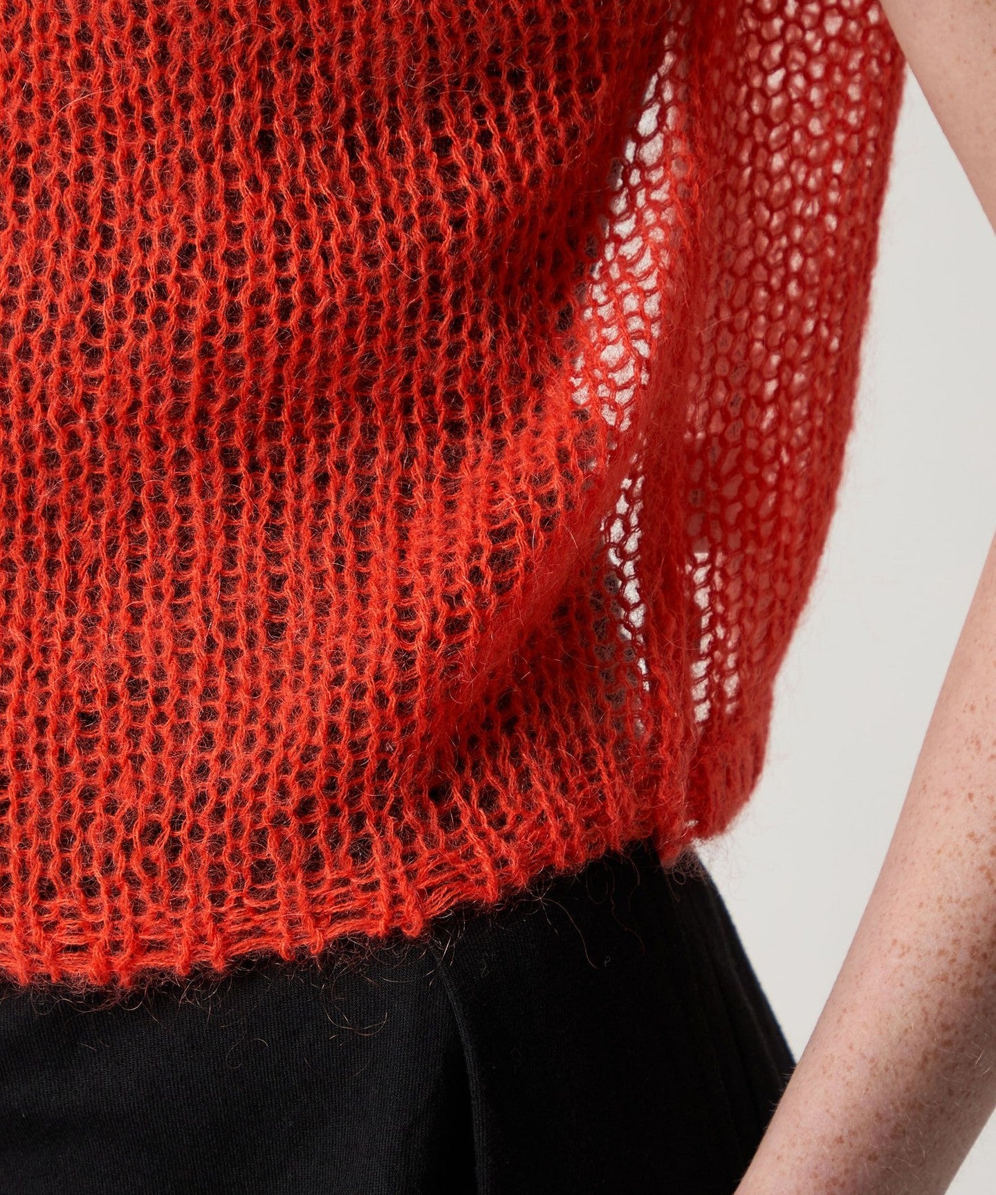 This piece is made of a mohair blend material that has a soft and fluffy texture, and the contrast of bright colors gives it a striking look.