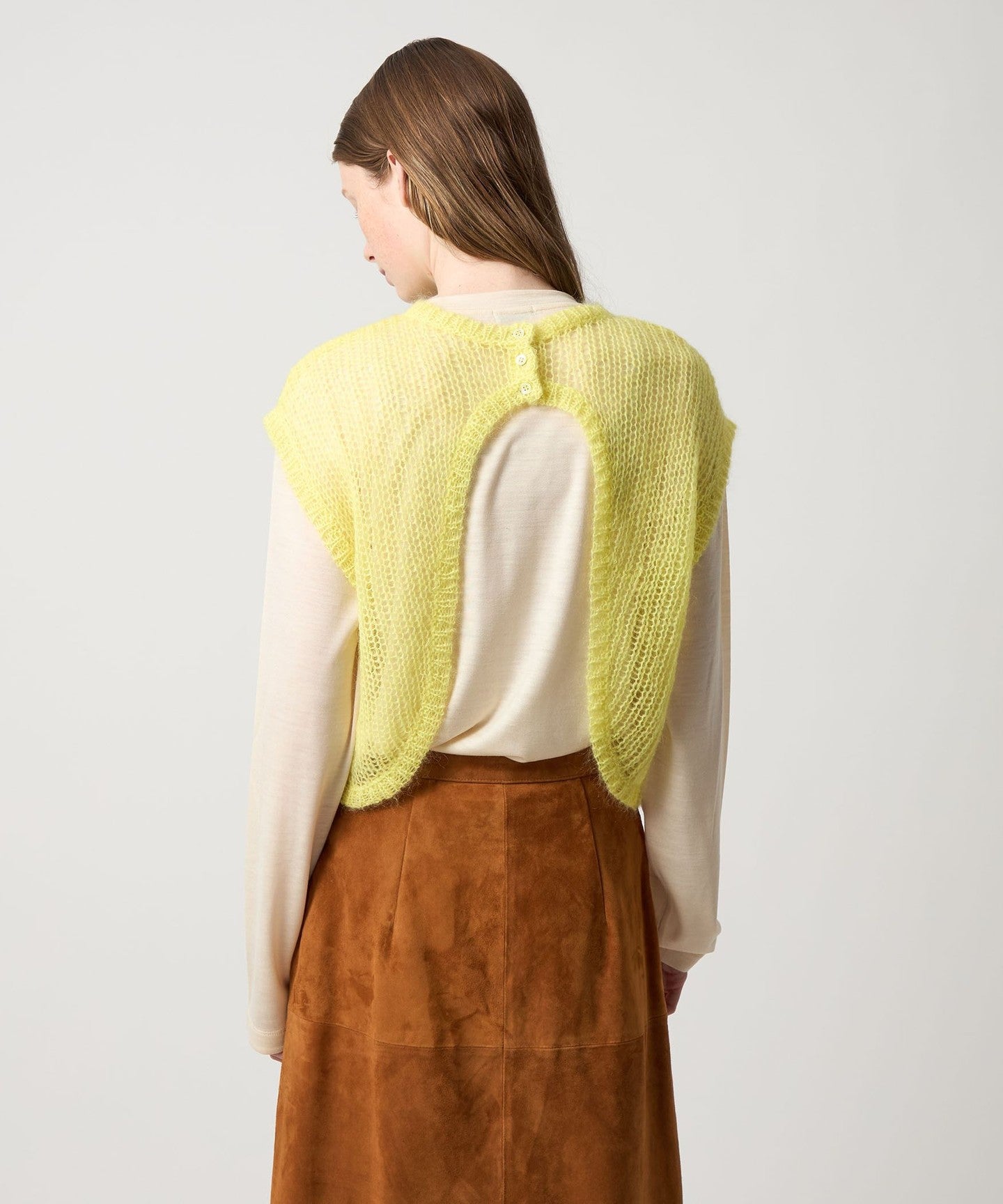 The design has a wide opening in the back, allowing you to wear it both front and back, allowing you to change the look depending on how you wear it.