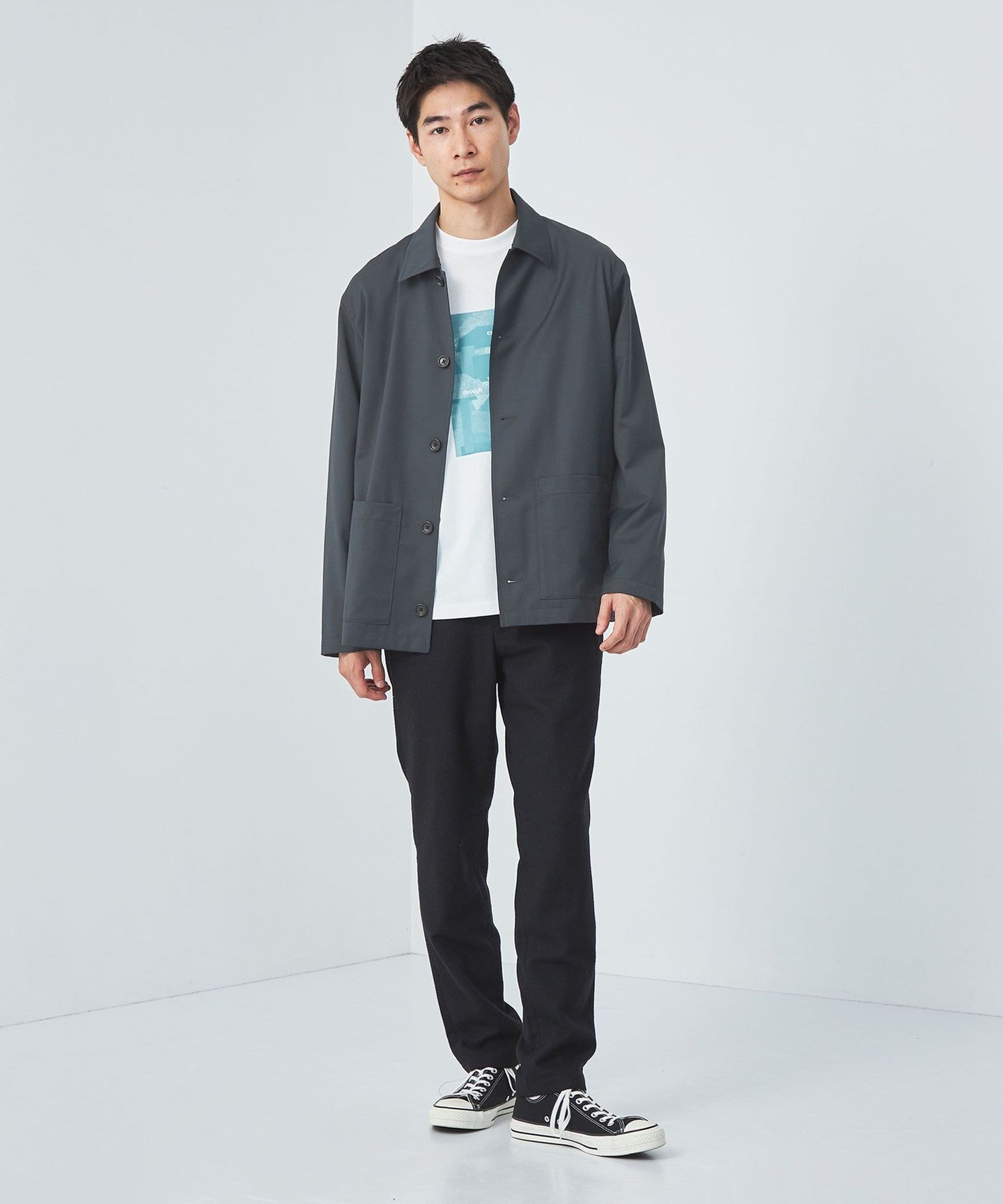 To match the clean look, we recommend pairing it with neat, loose-fitting pants.