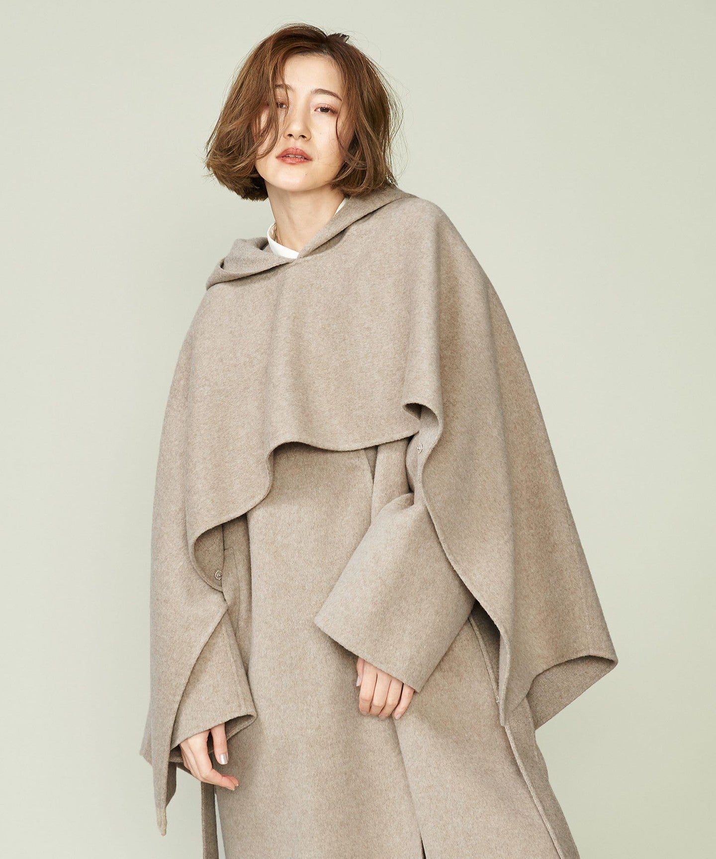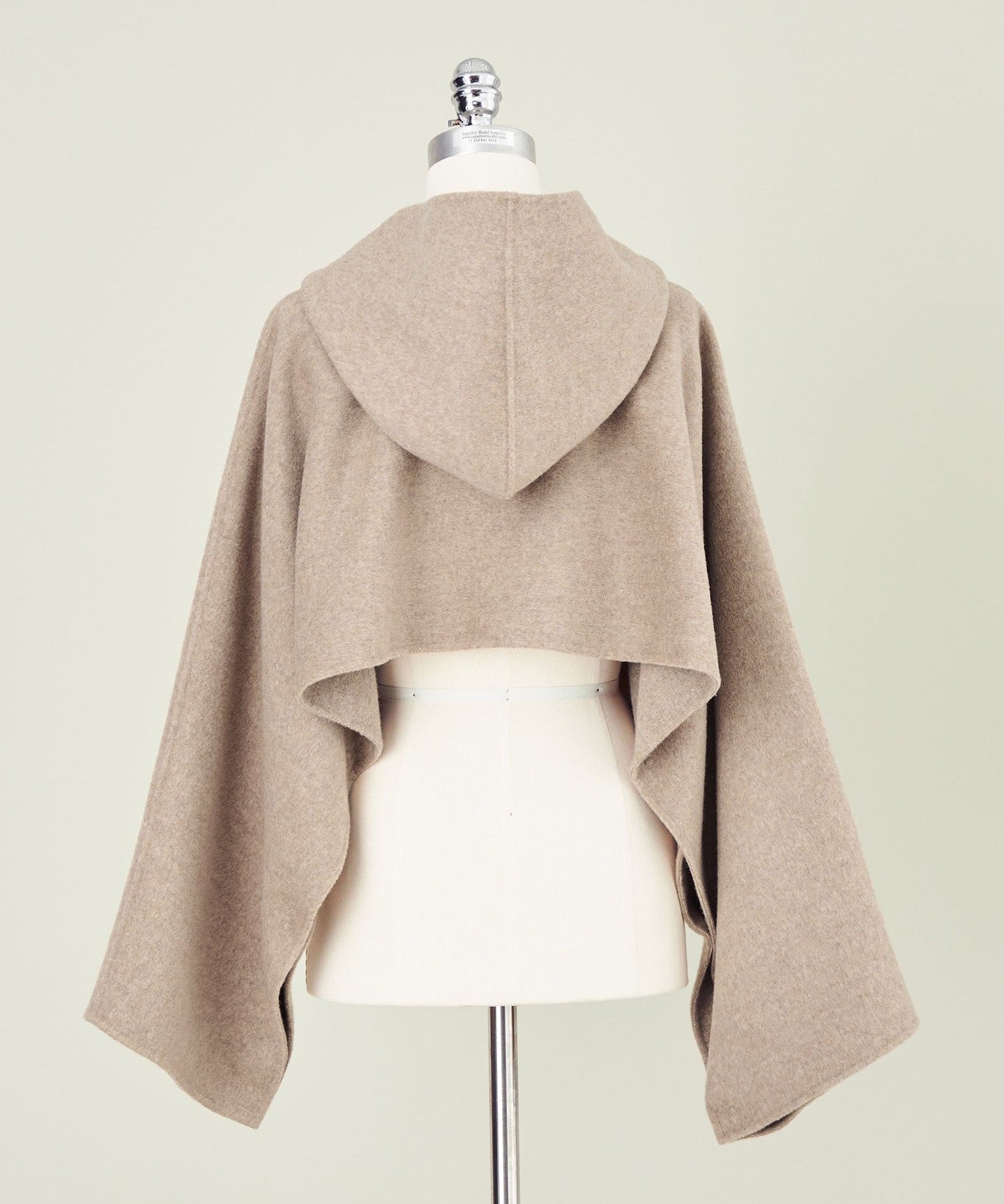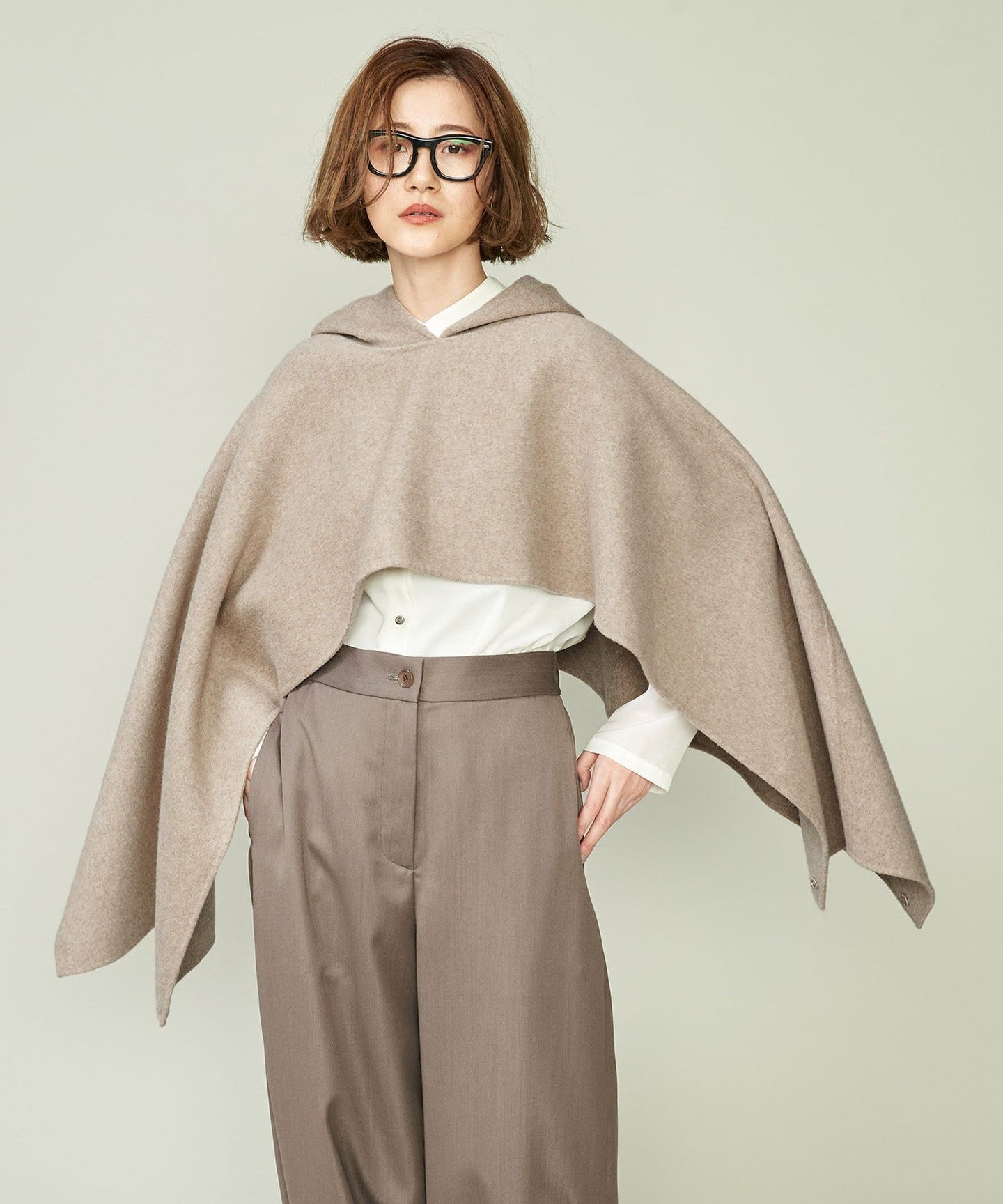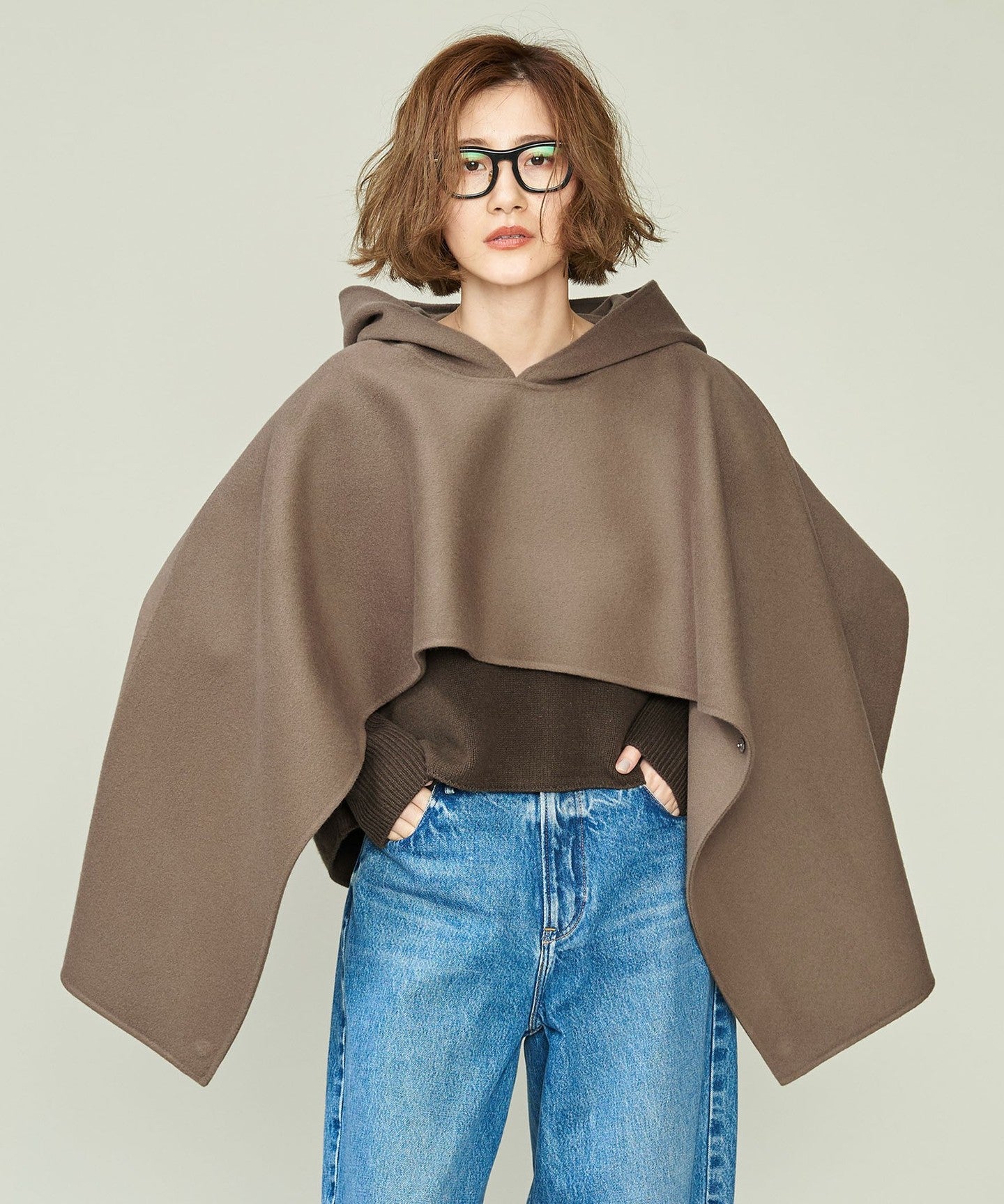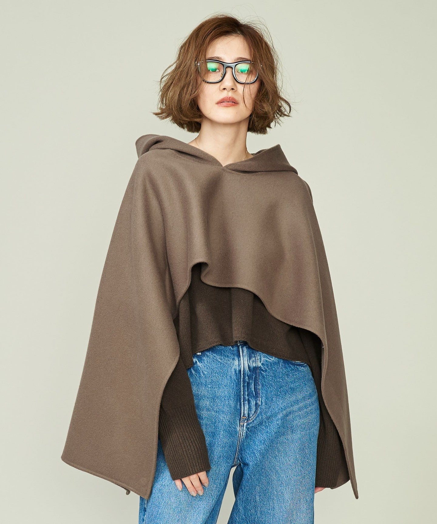 A hooded cape that can be worn as an accessory with a variety of outfits.