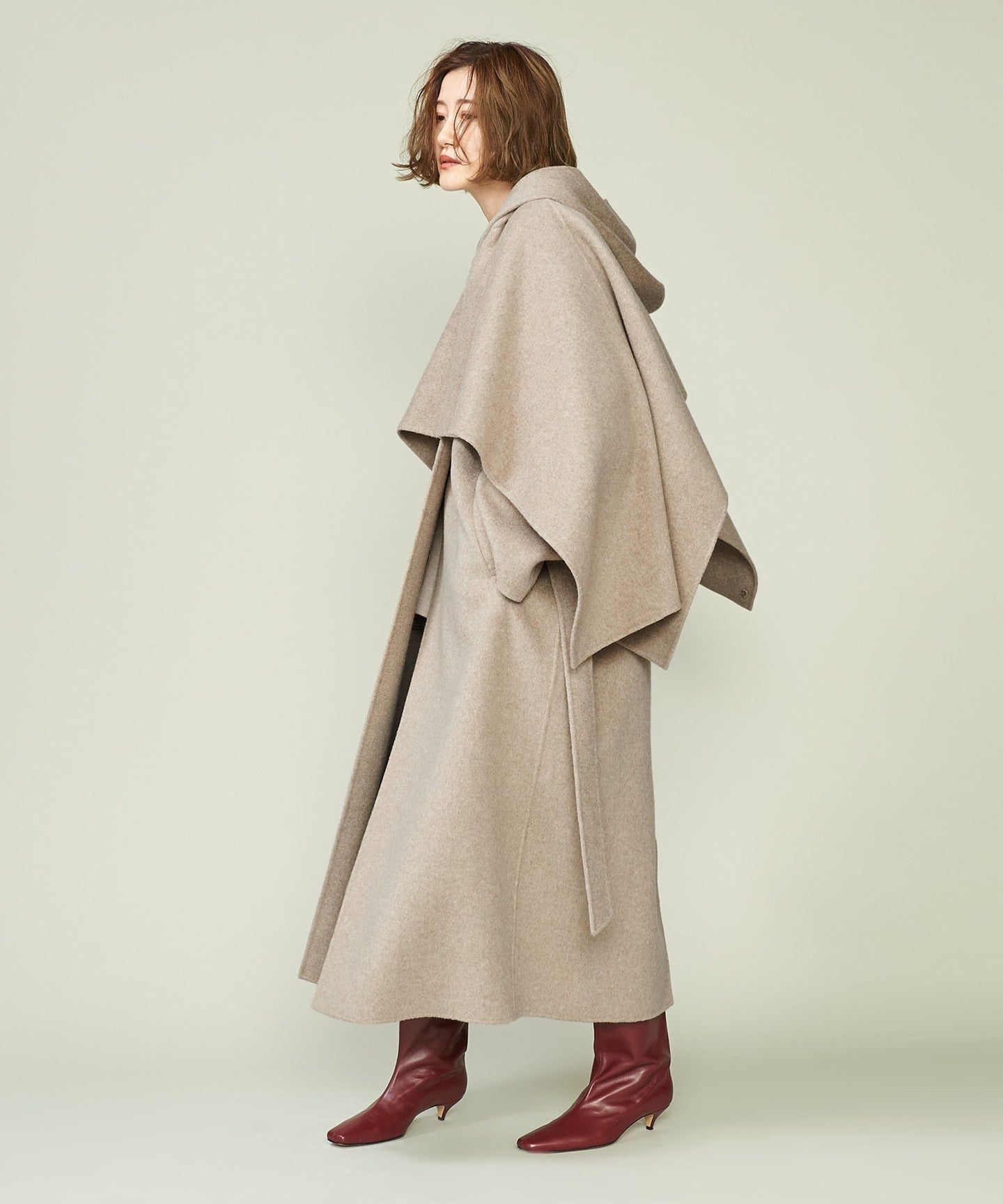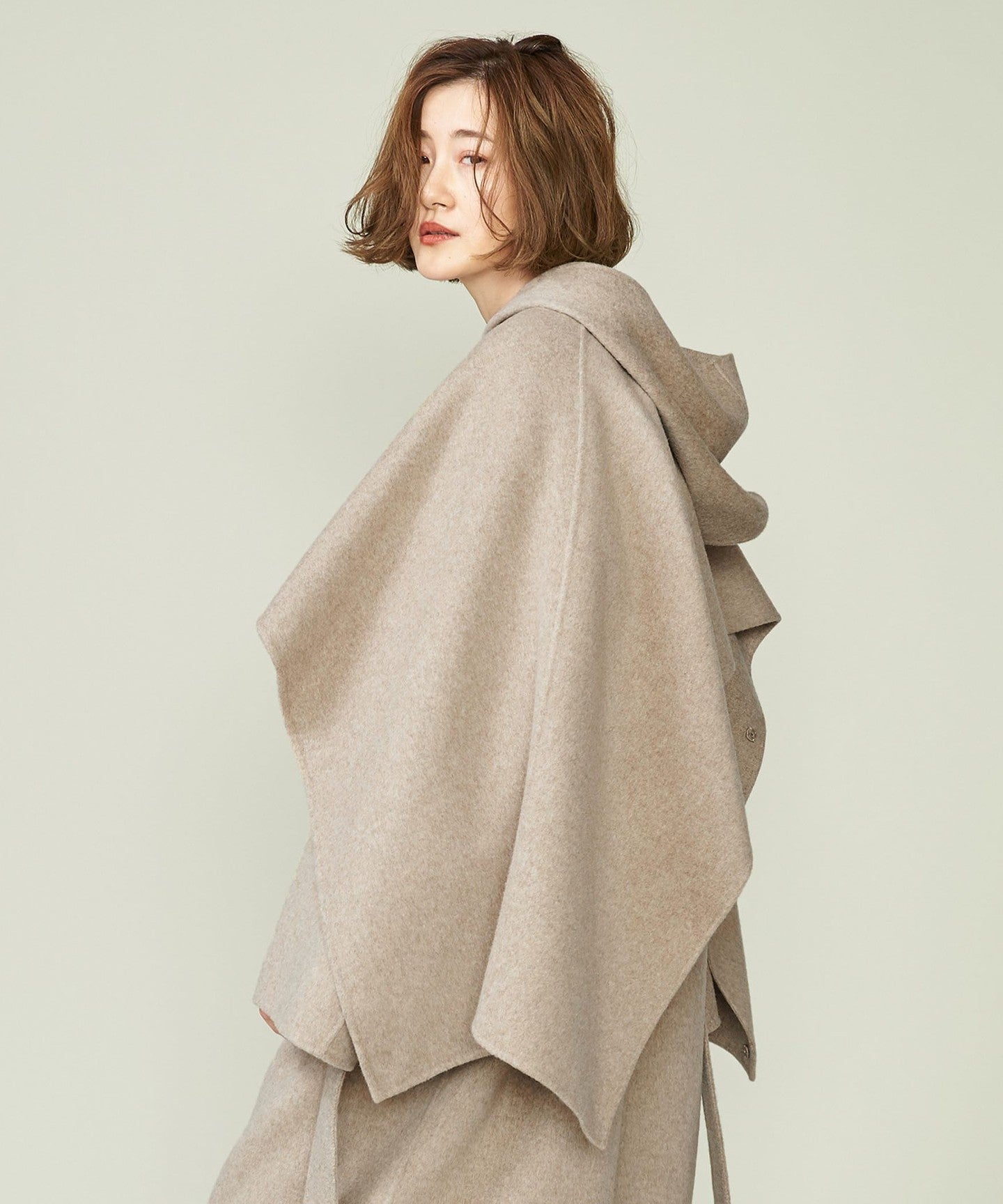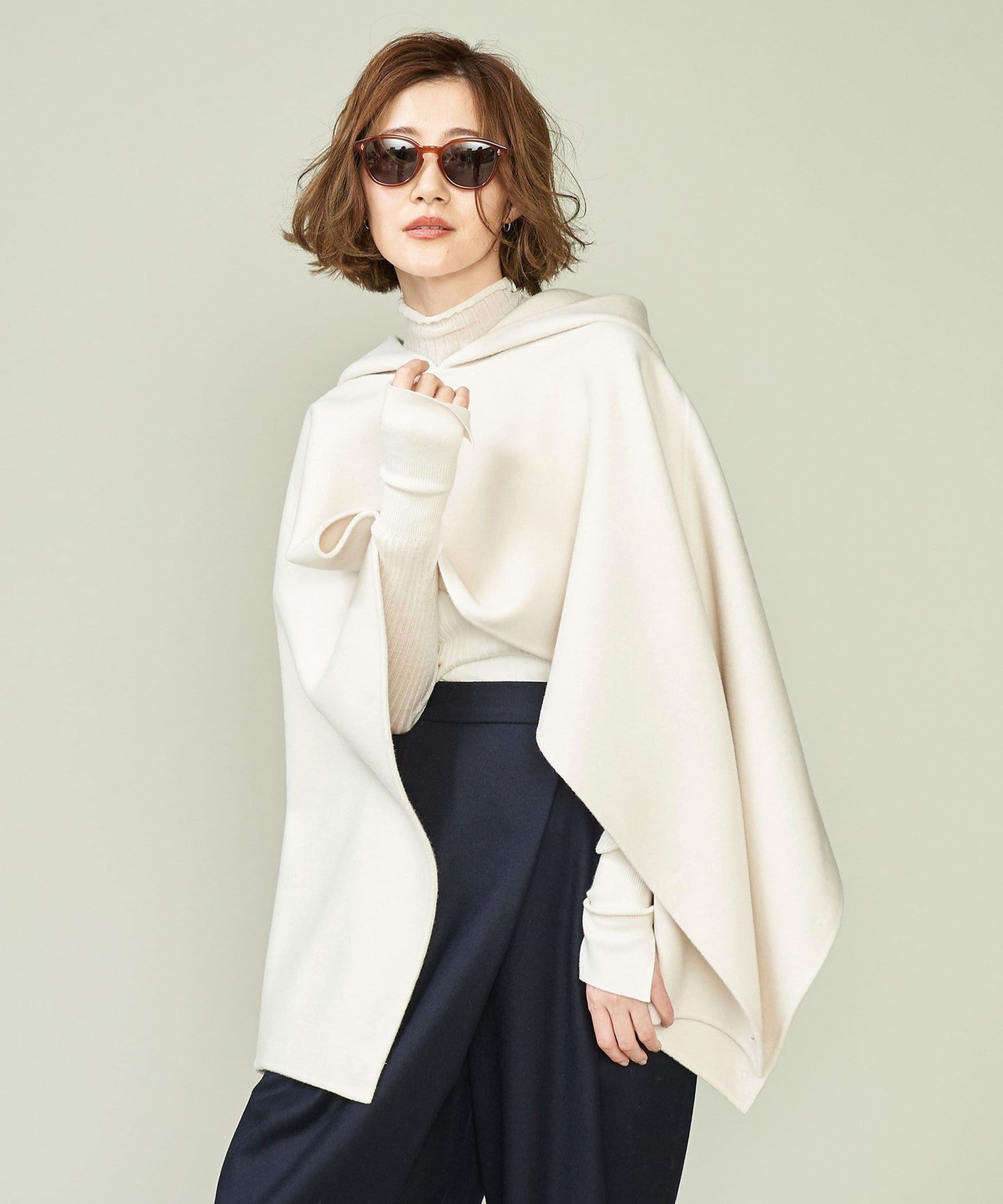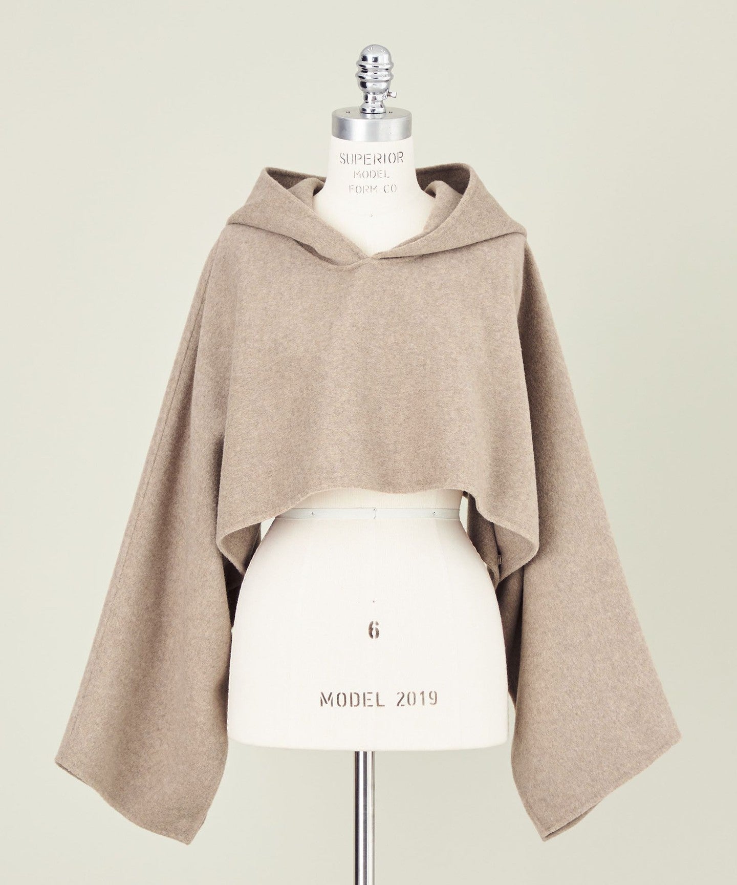 A hooded cape that can be worn as an accessory with a variety of outfits.