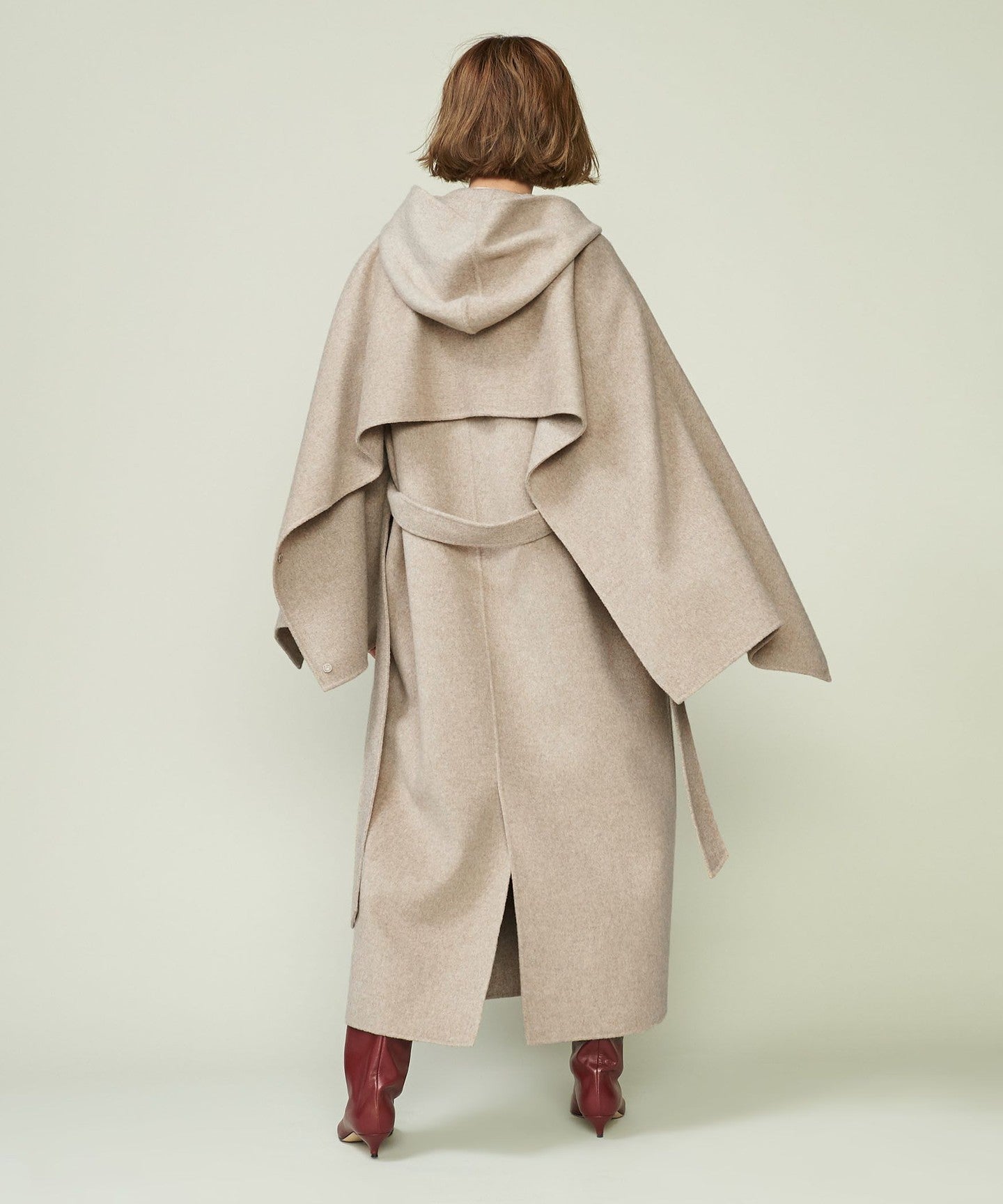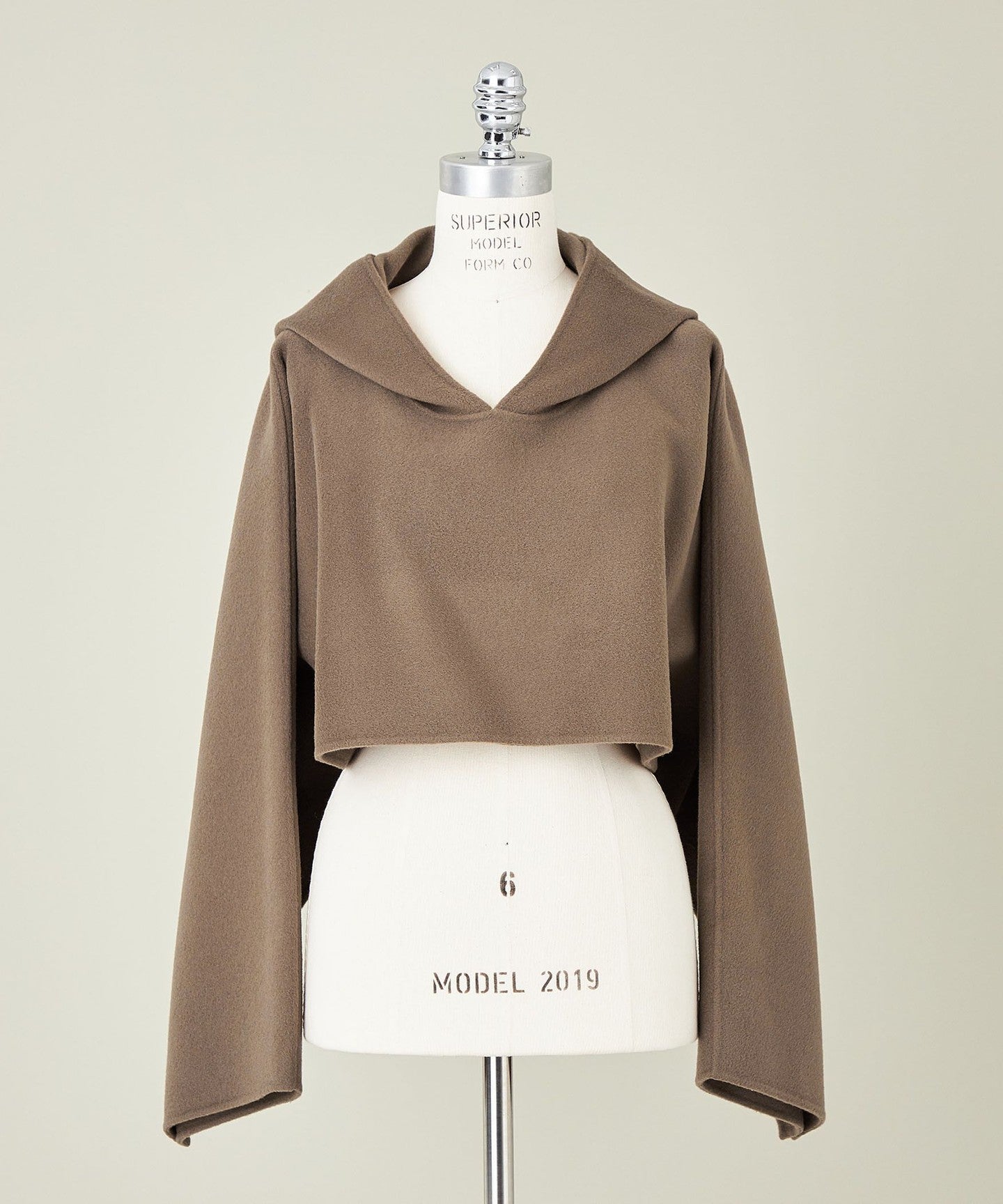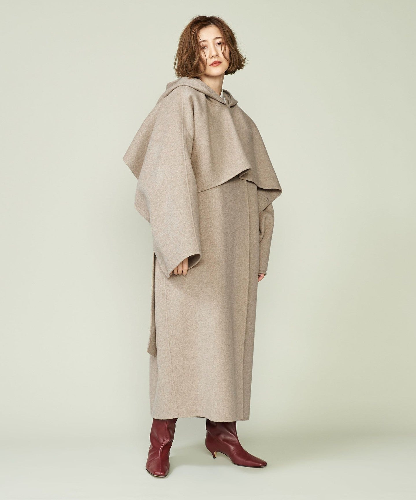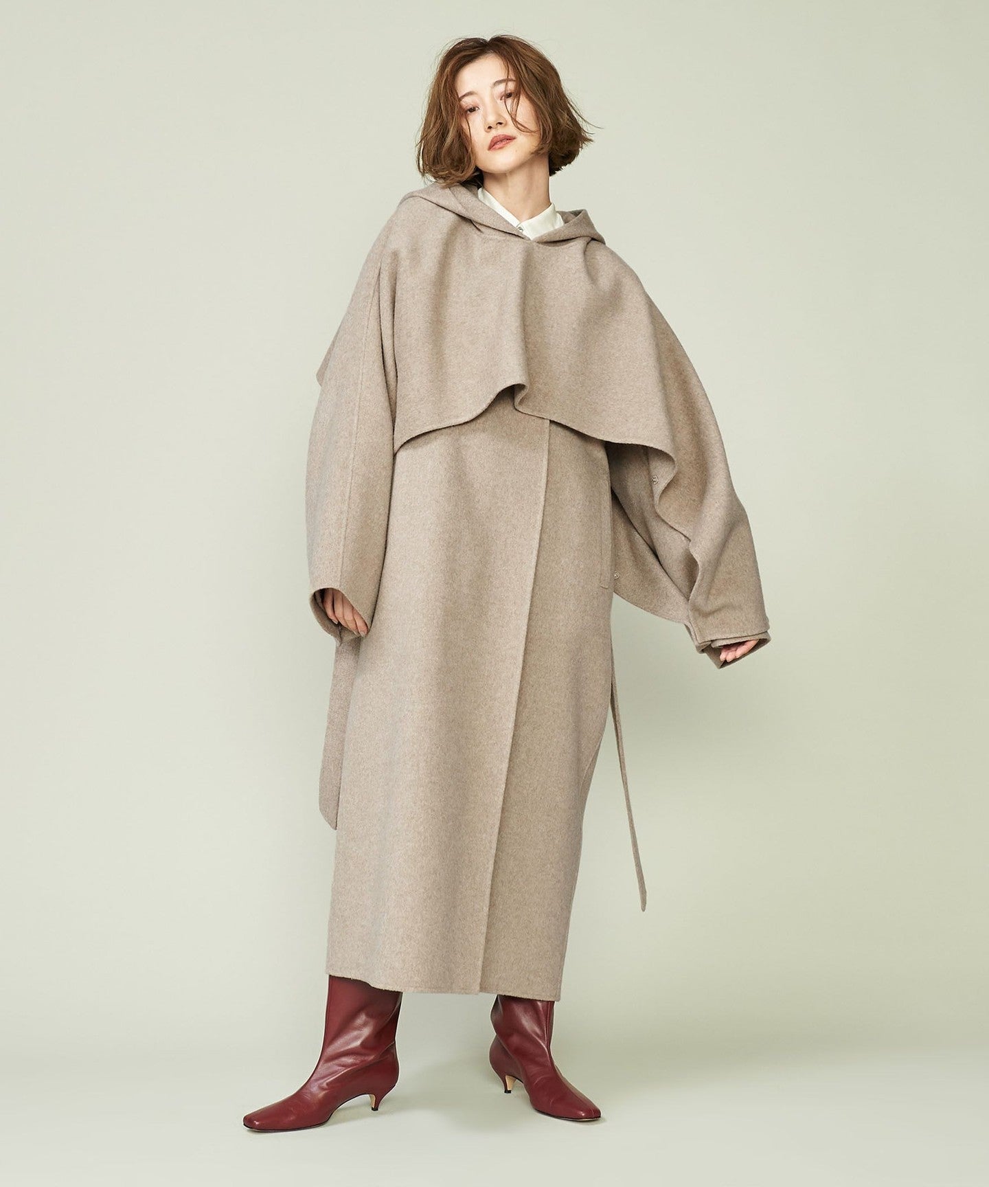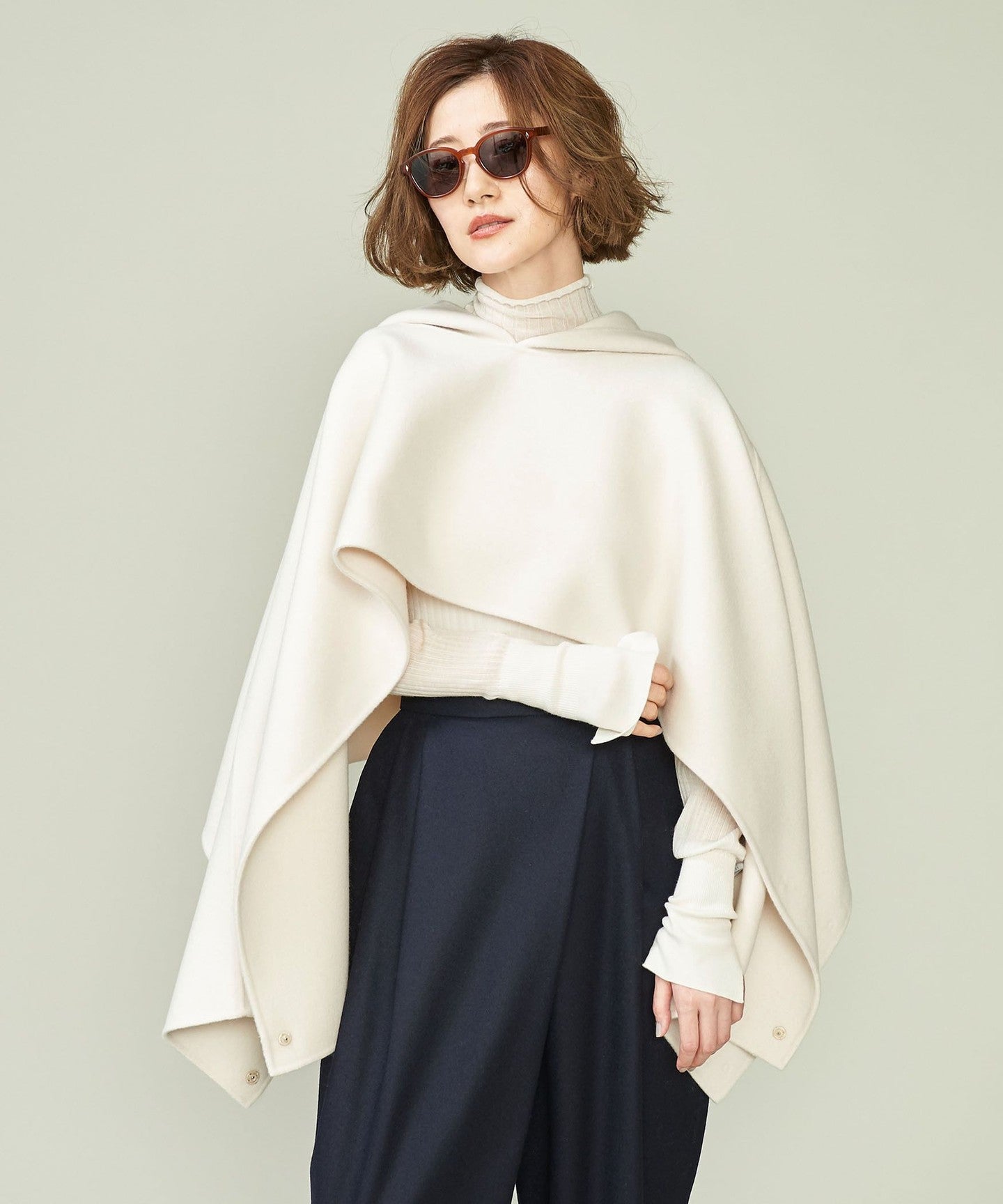 A hooded cape that can be worn as an accessory with a variety of outfits.