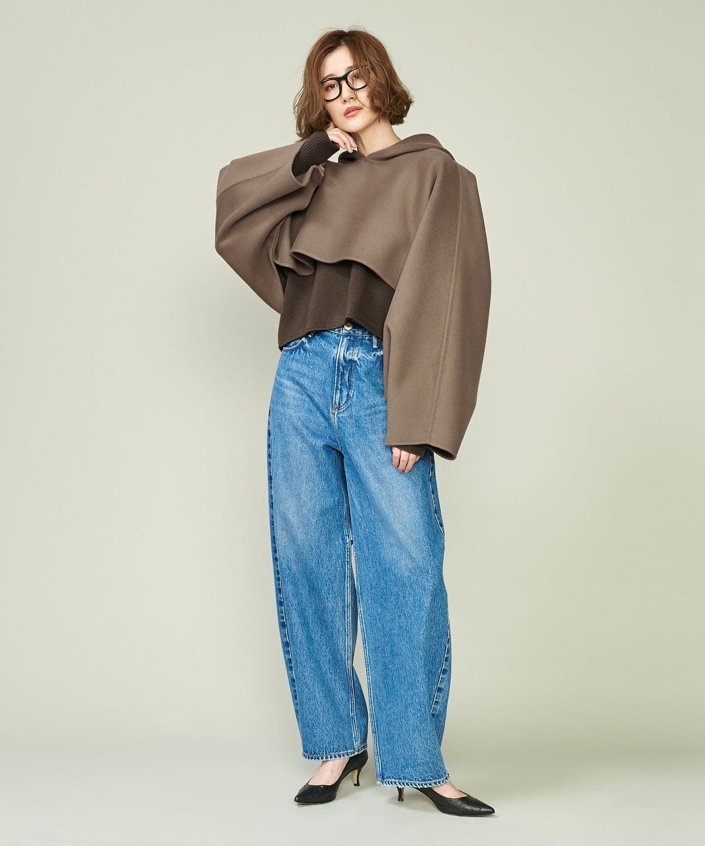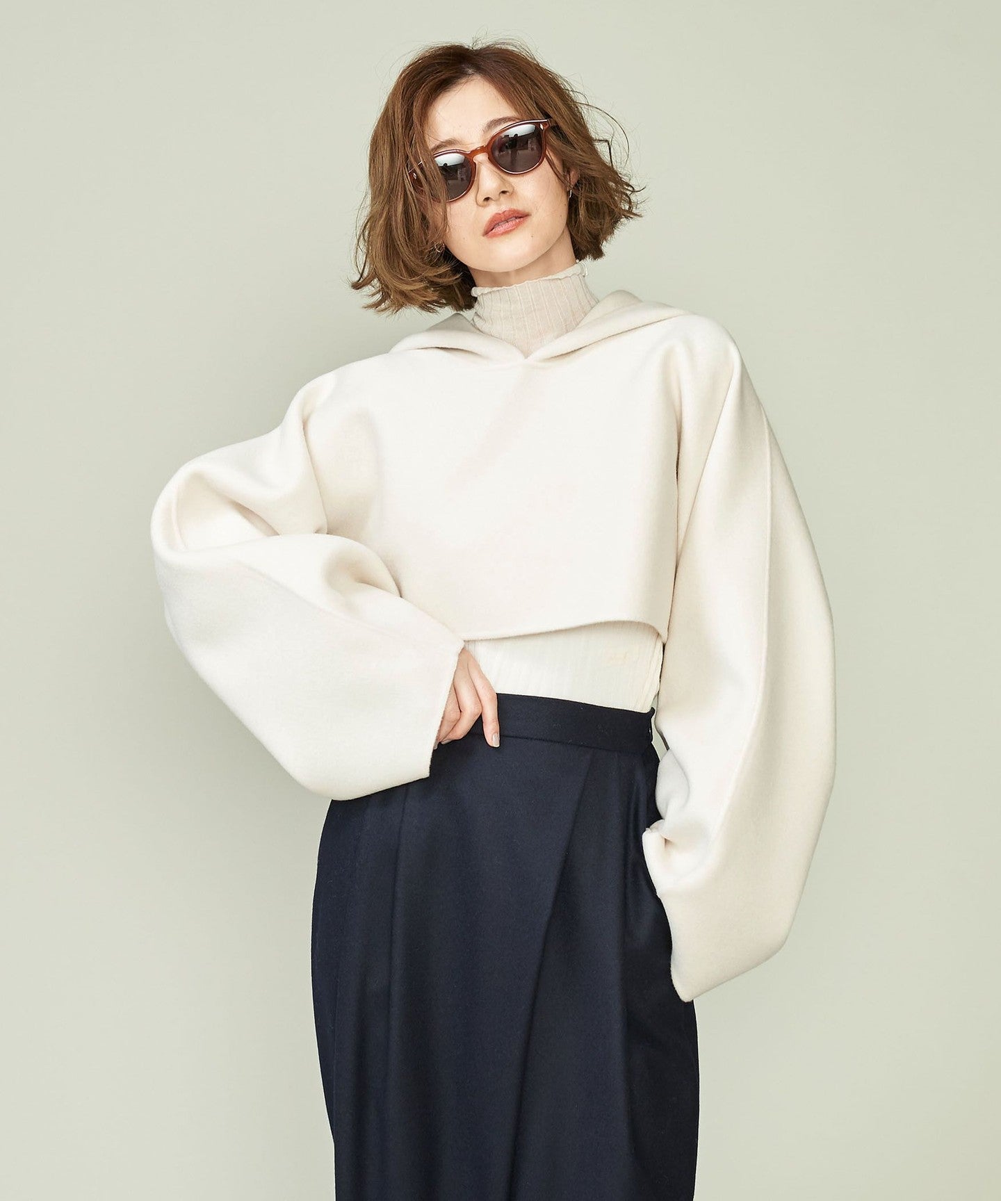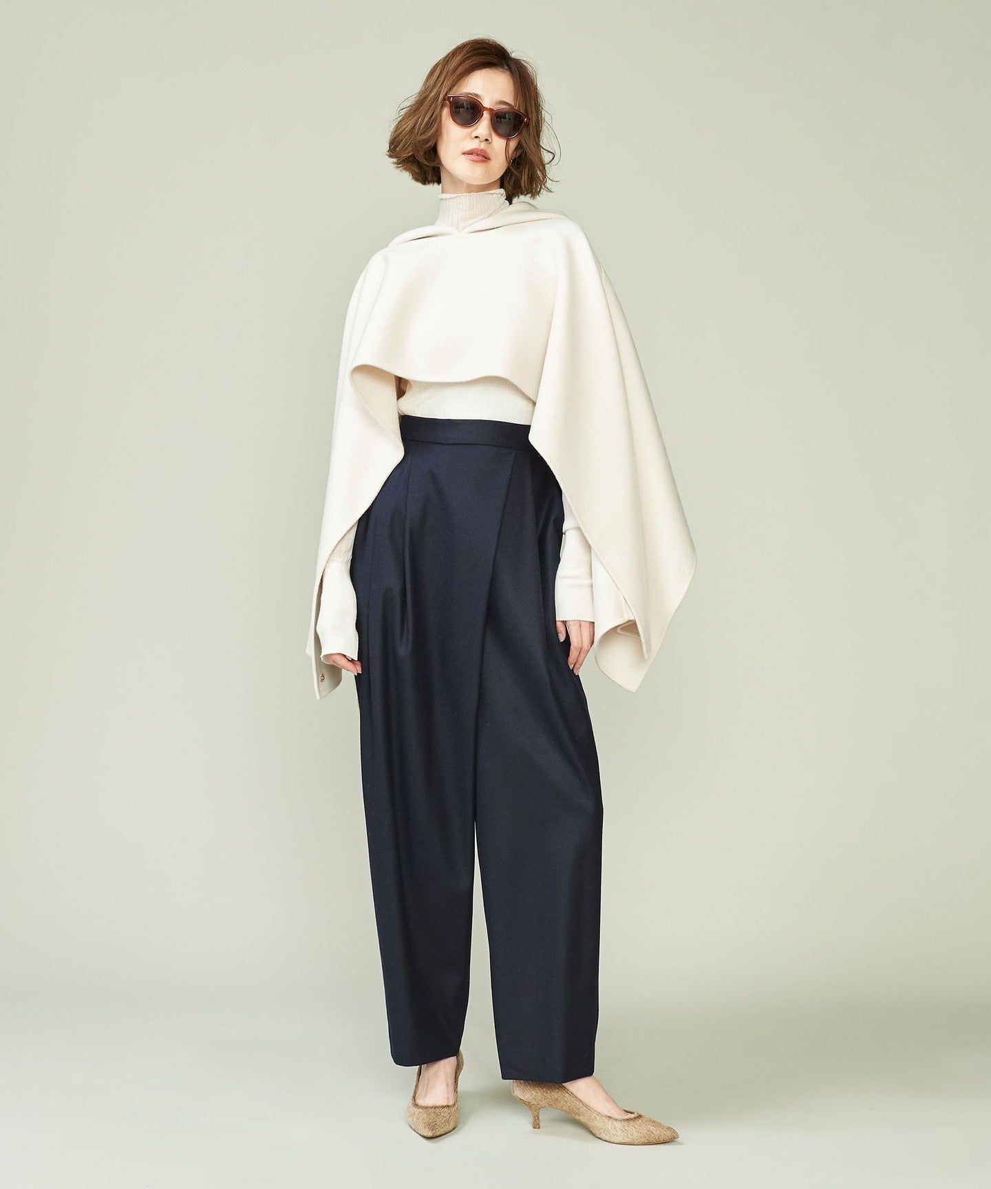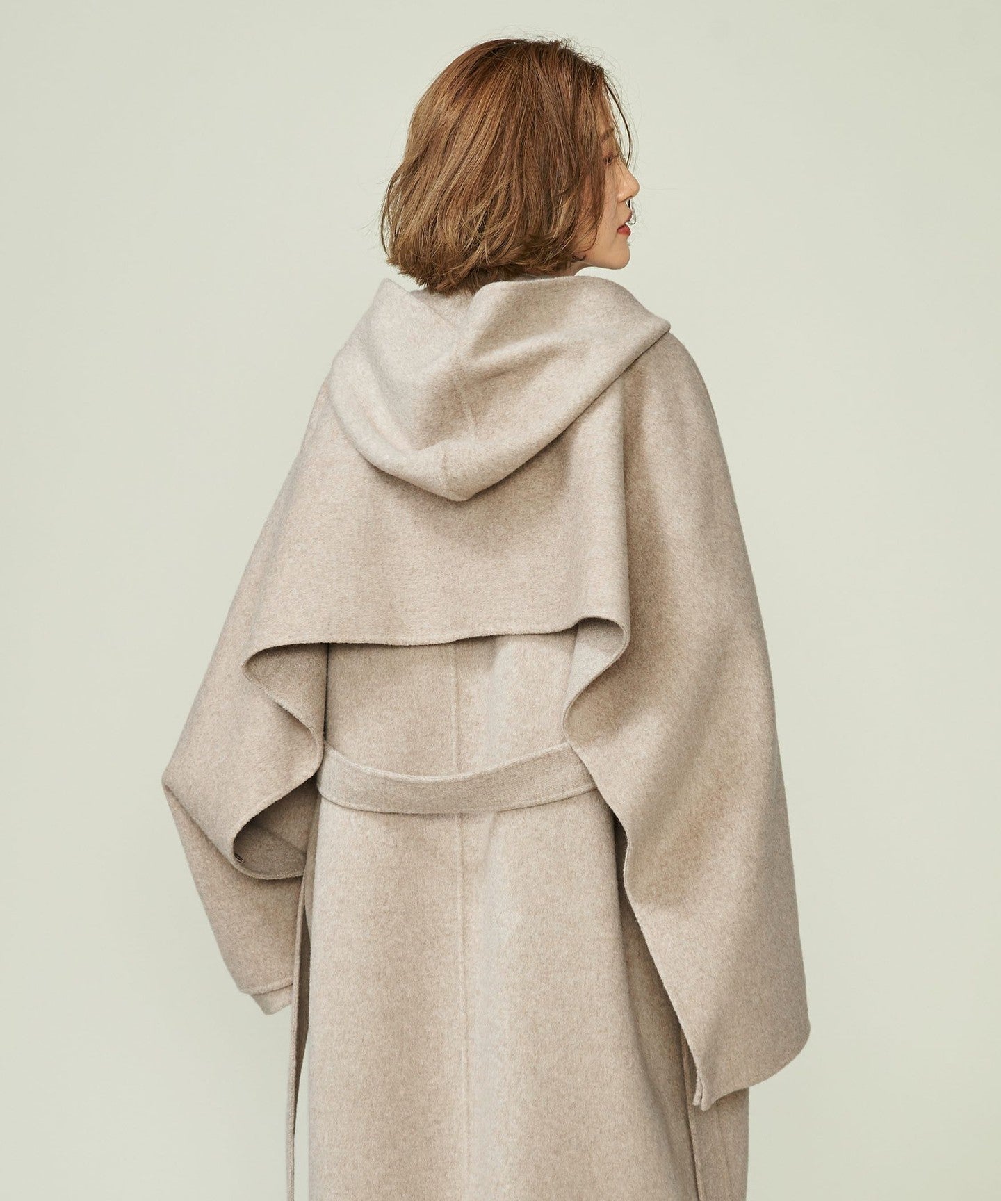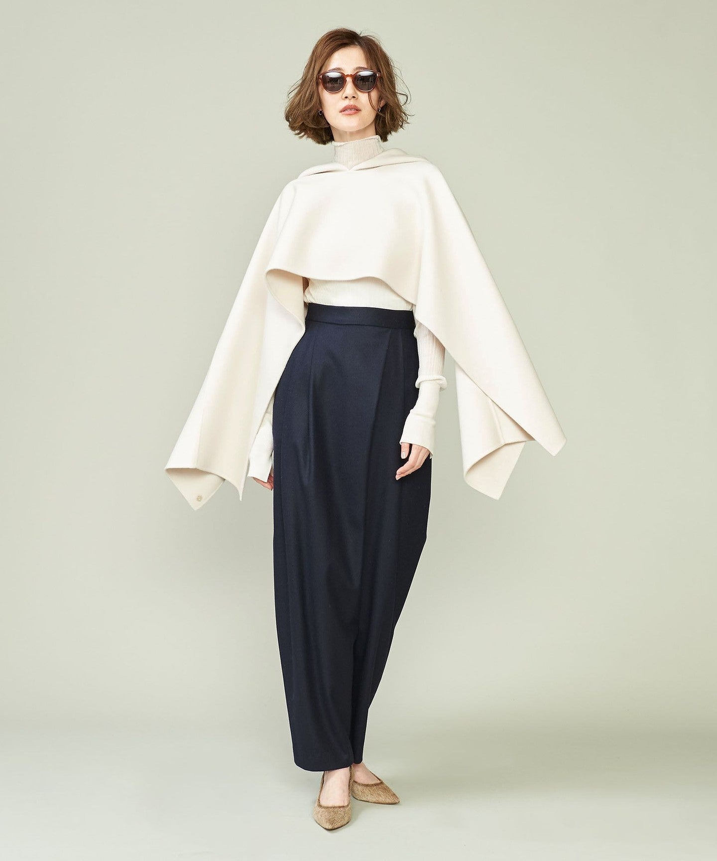 A hooded cape that can be worn as an accessory with a variety of outfits.
