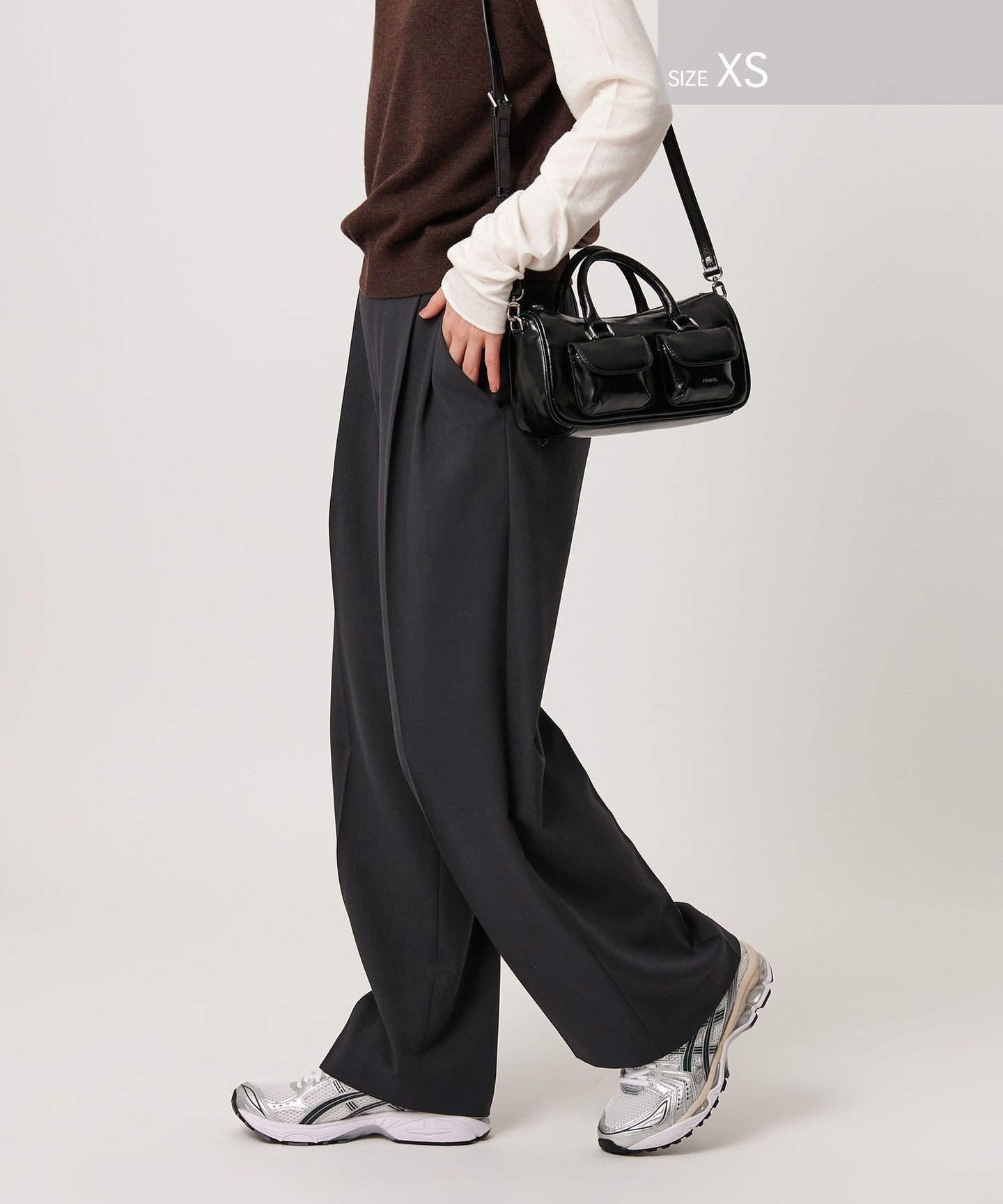 The wide straight silhouette has a relaxed hemline but doesn't add too much volume around the waist.