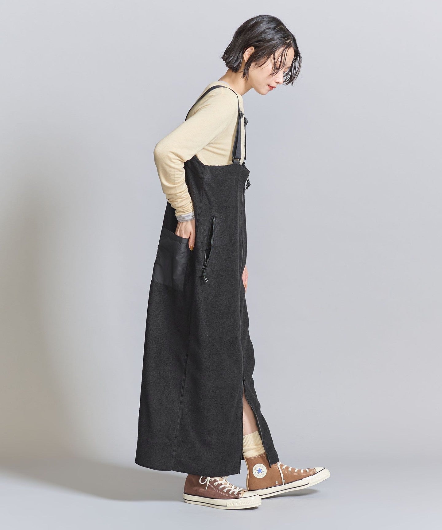 A jumper skirt made from fleece material based on a military jumpsuit.