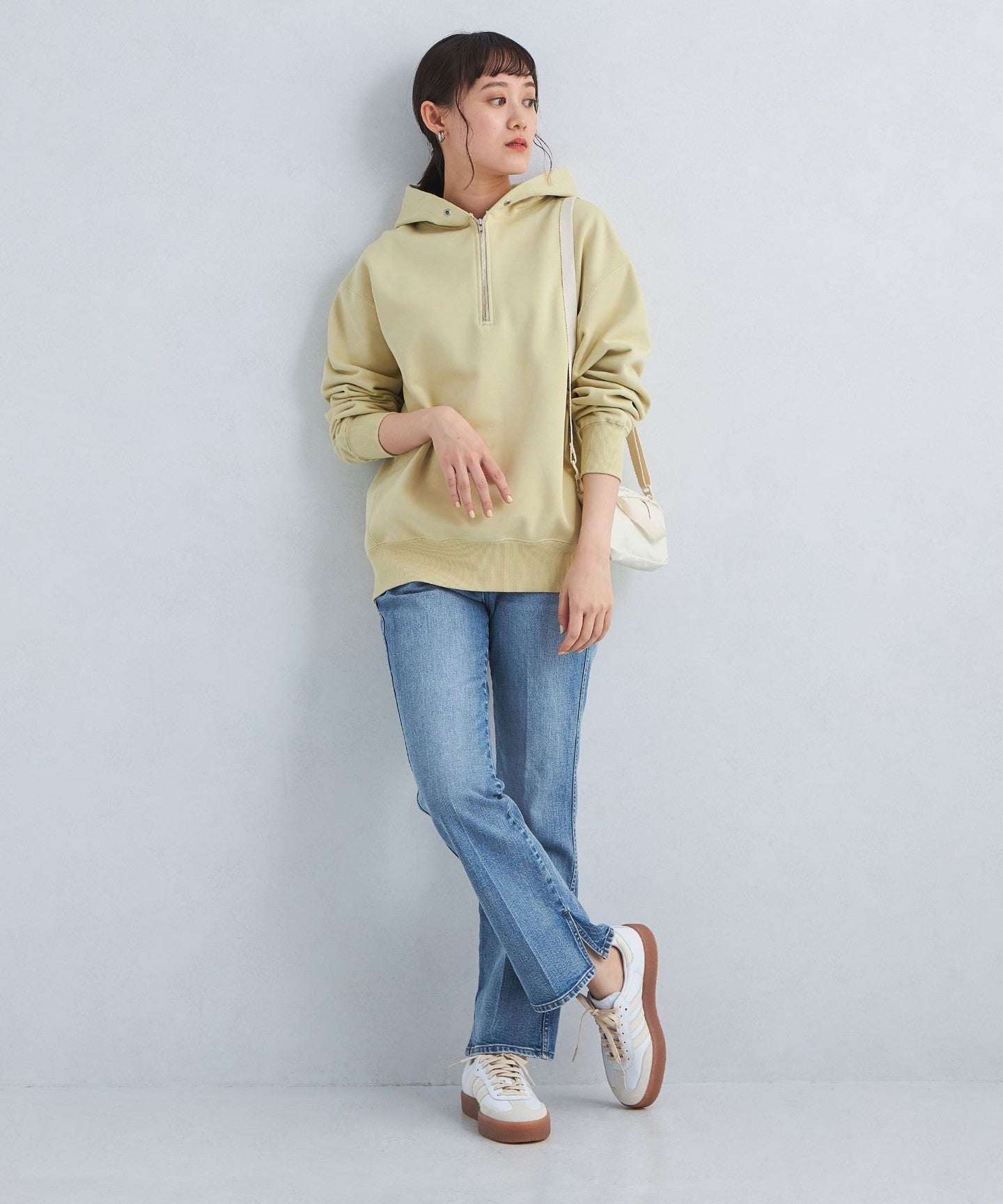 This is a piece that you can enjoy changing the way you wear it by opening and closing the zipper.