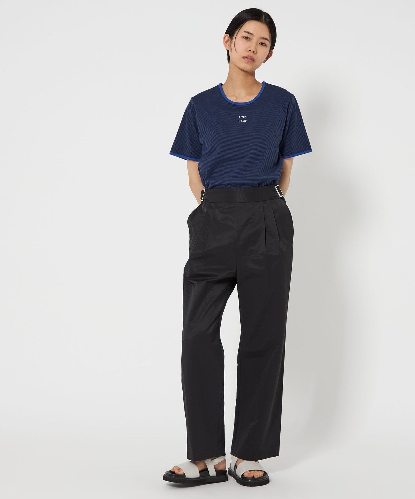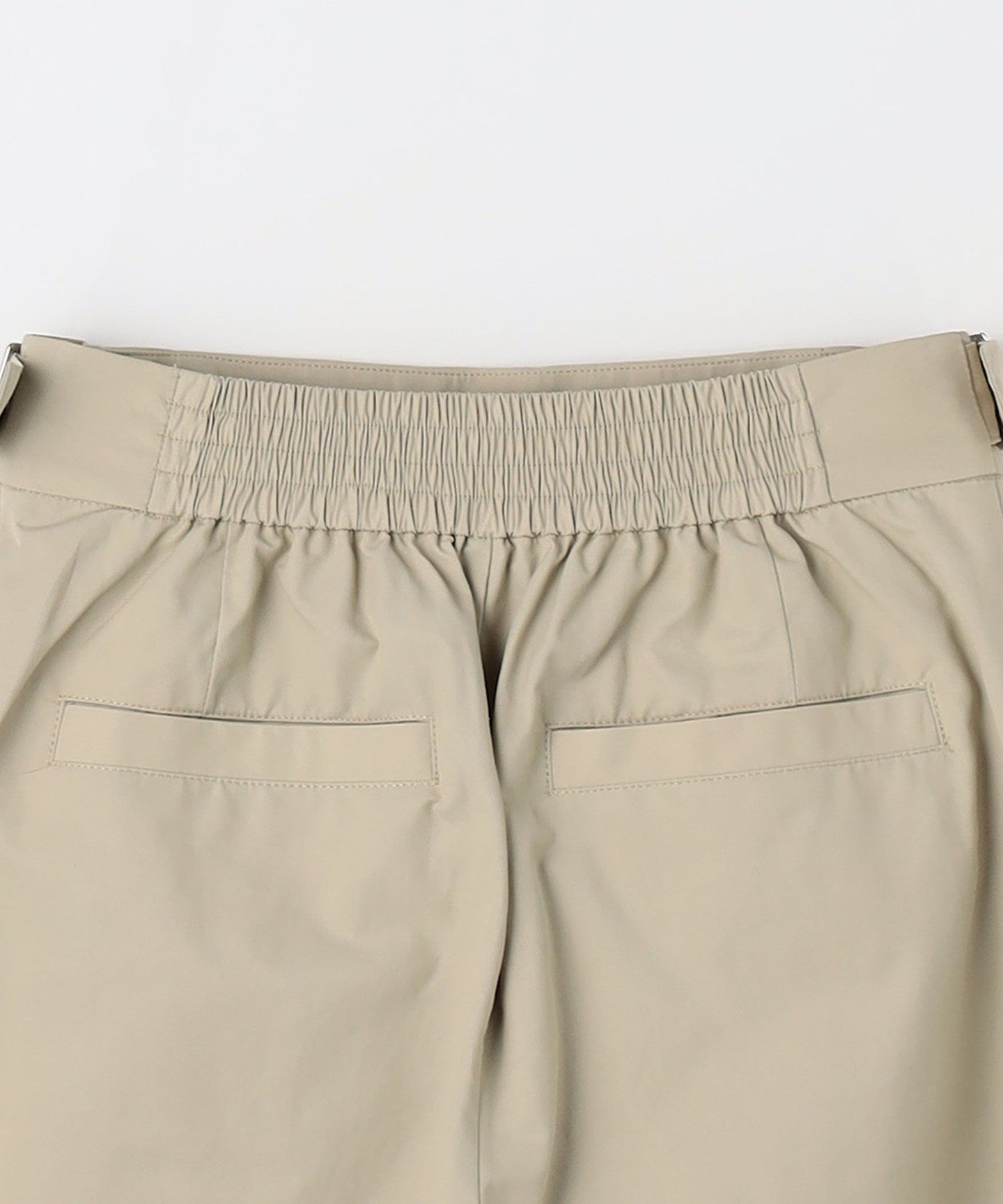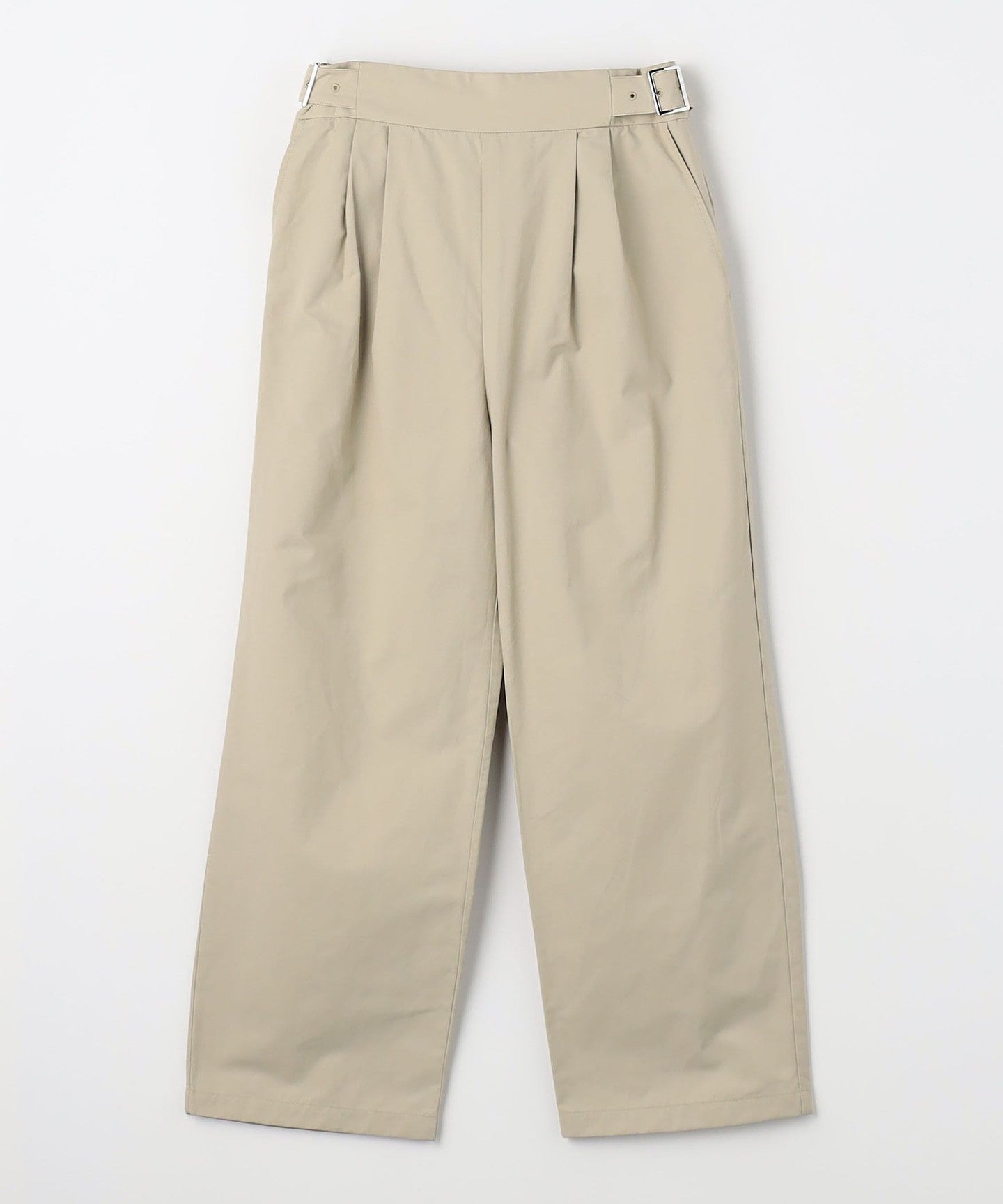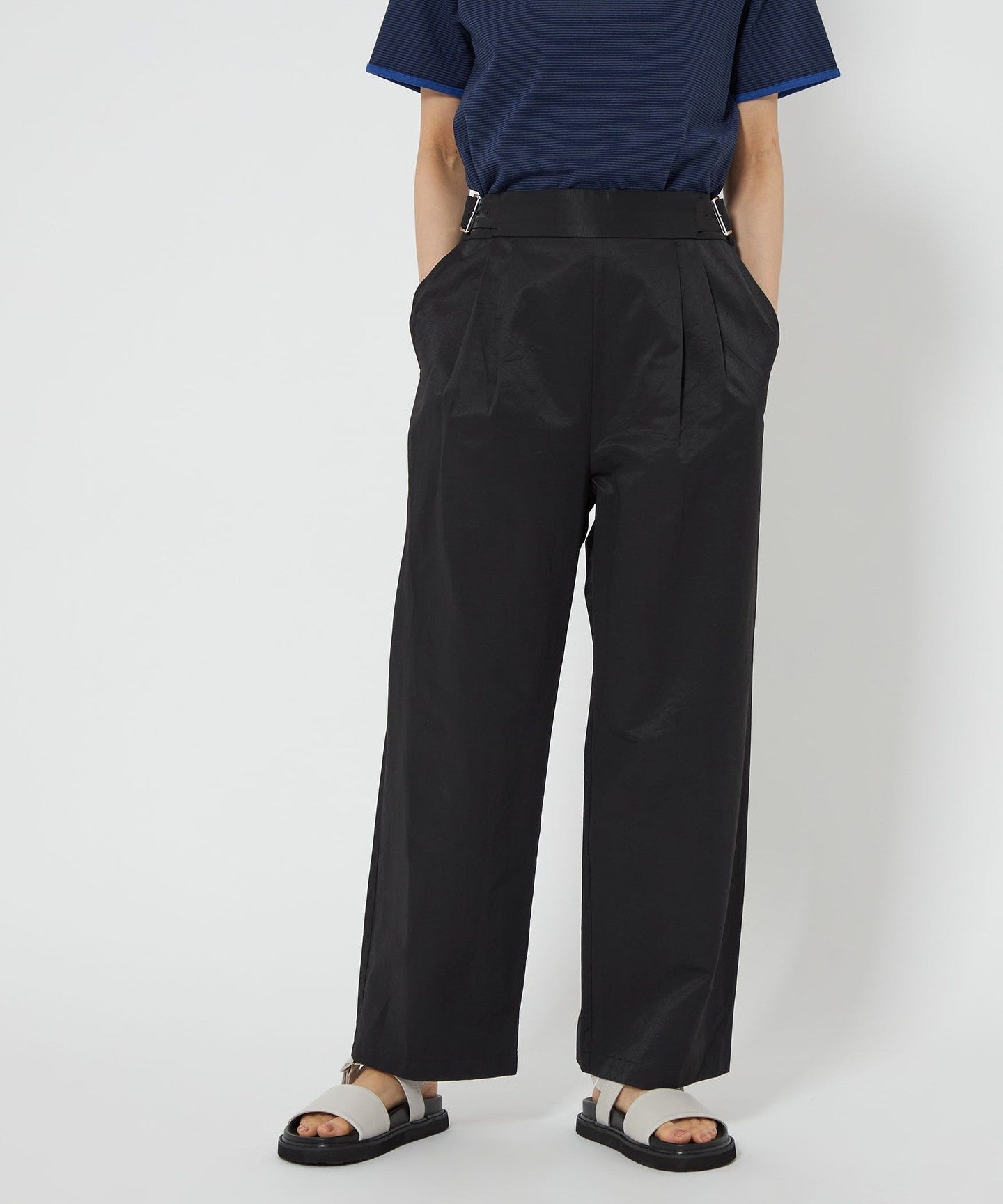 The Gurkha wide pants, accented with waist tabs, have a masculine and elegant look.