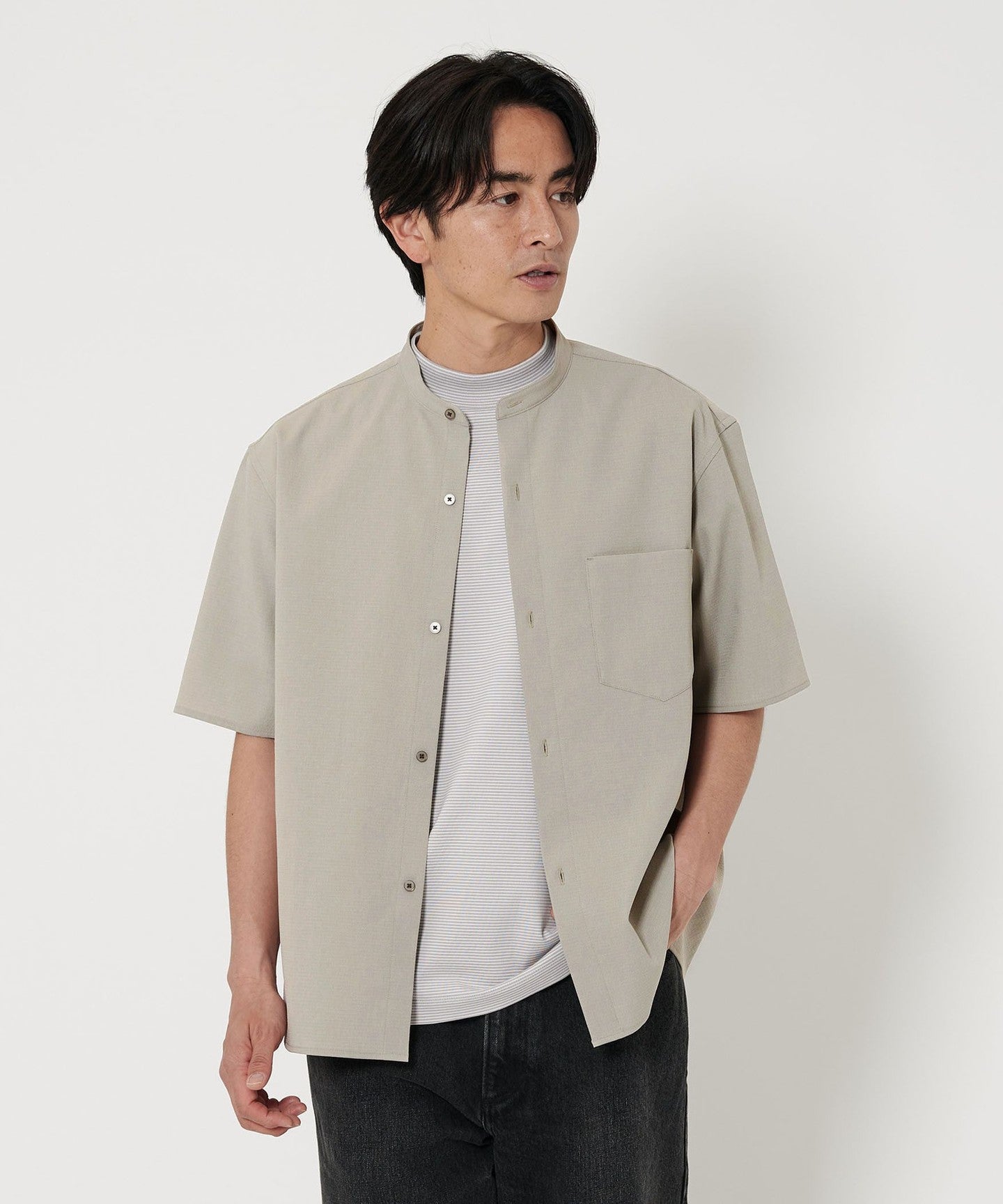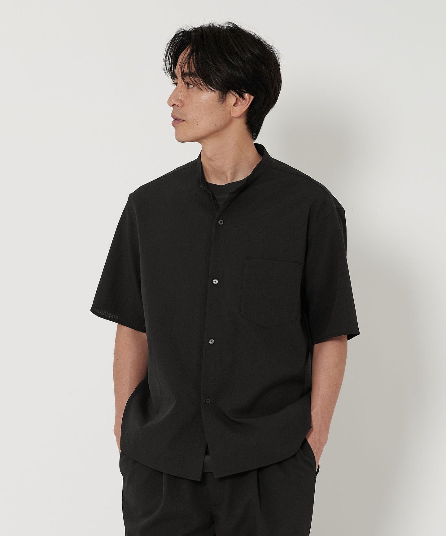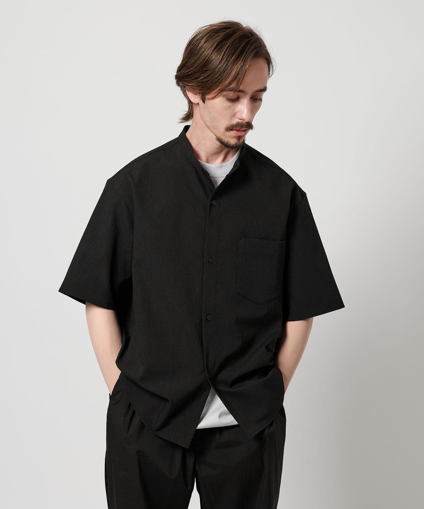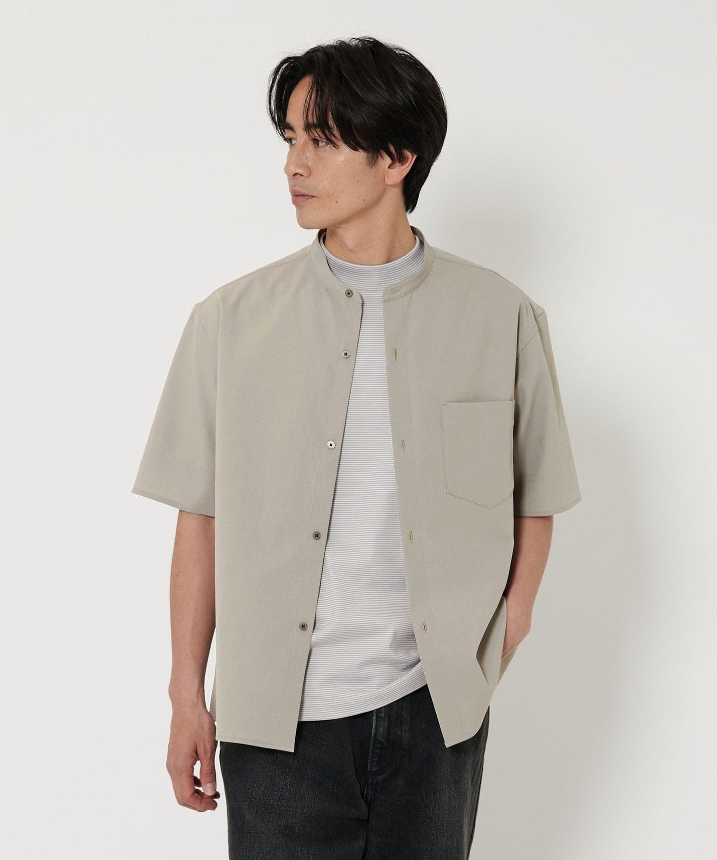 A boxy silhouette short-sleeved band collar shirt that looks great on its own.