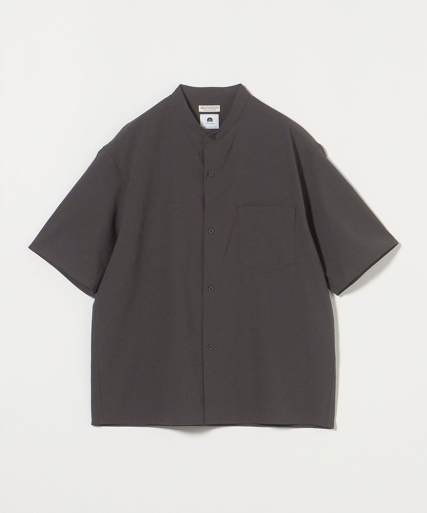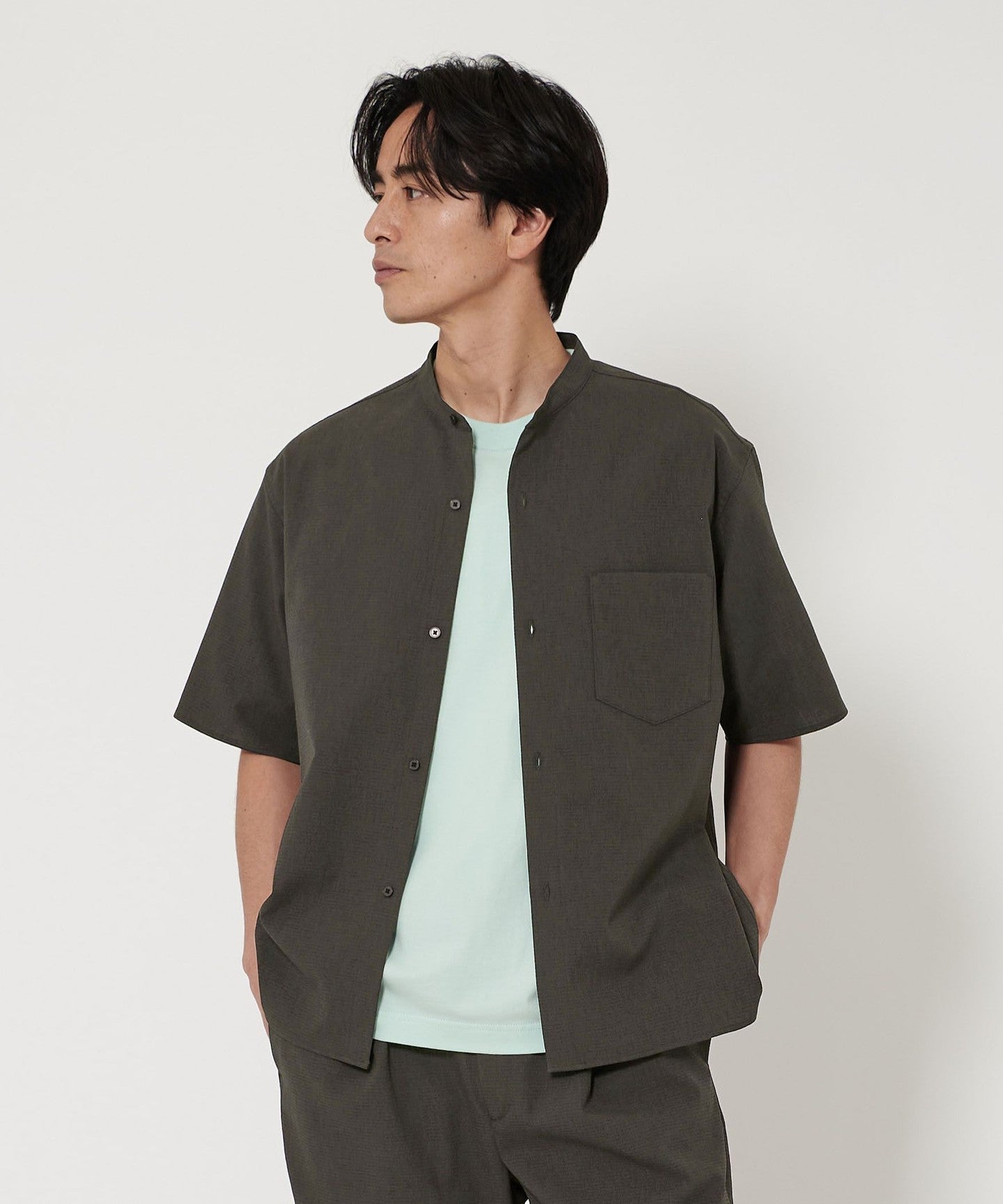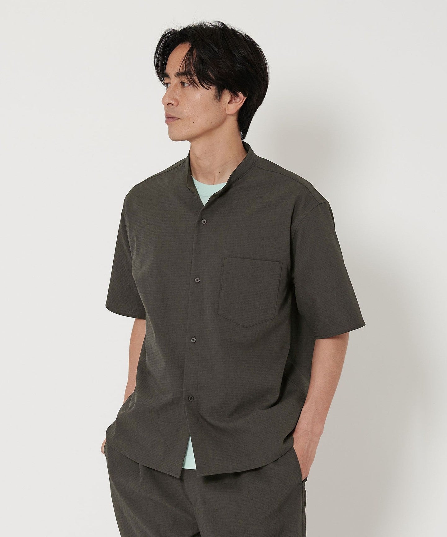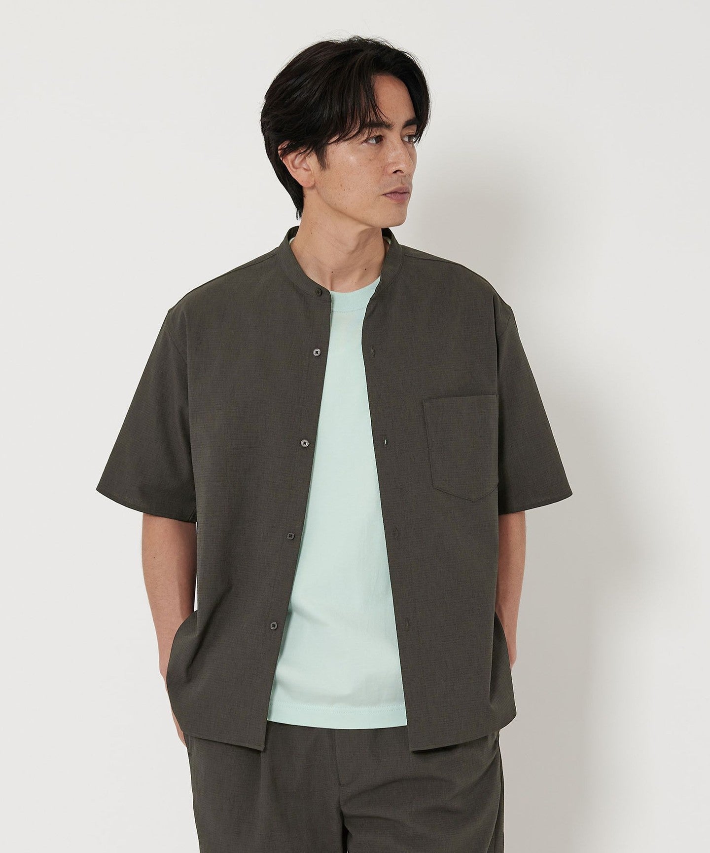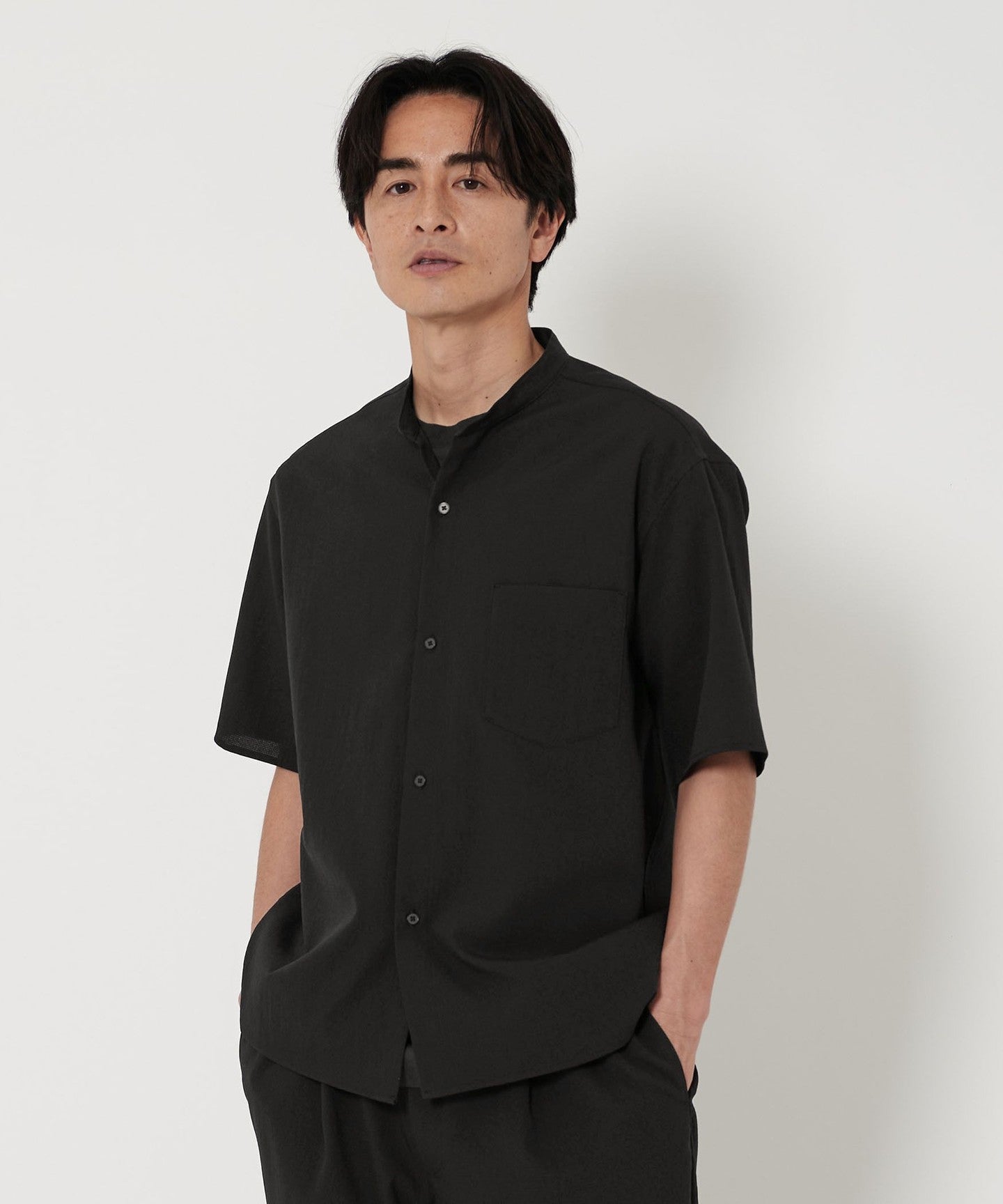 A boxy silhouette short-sleeved band collar shirt that looks great on its own.