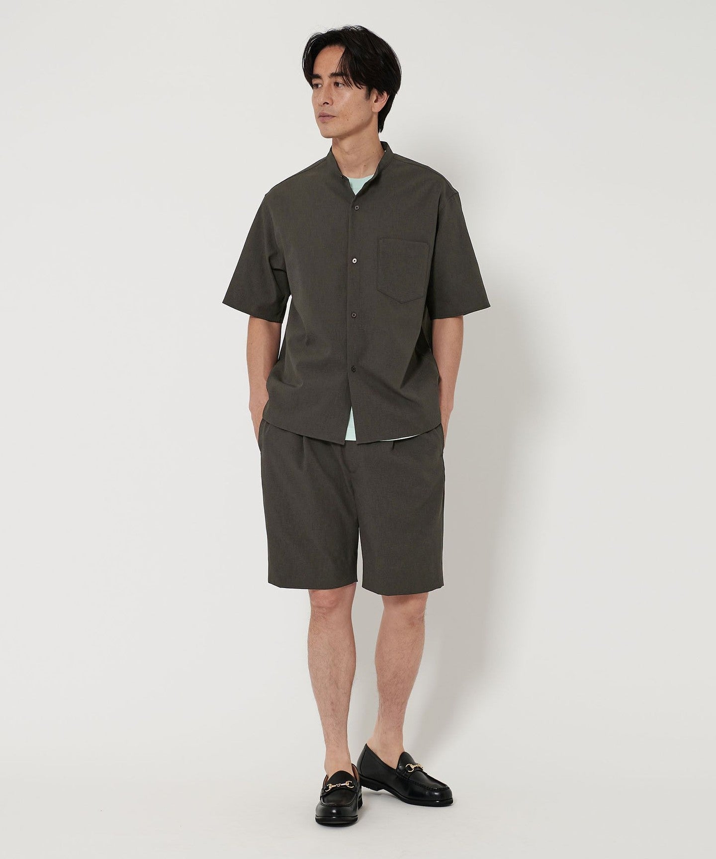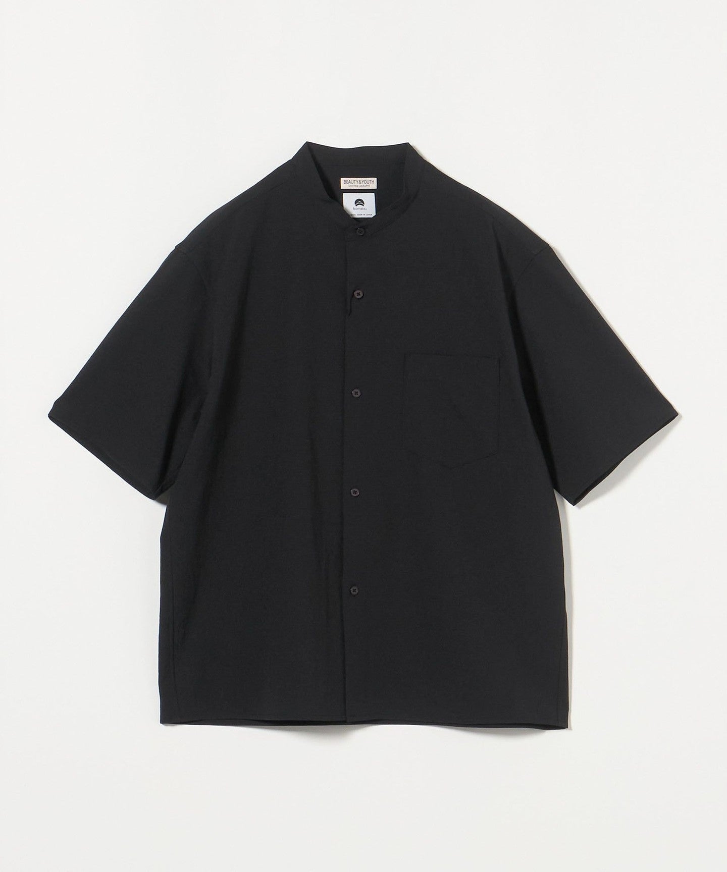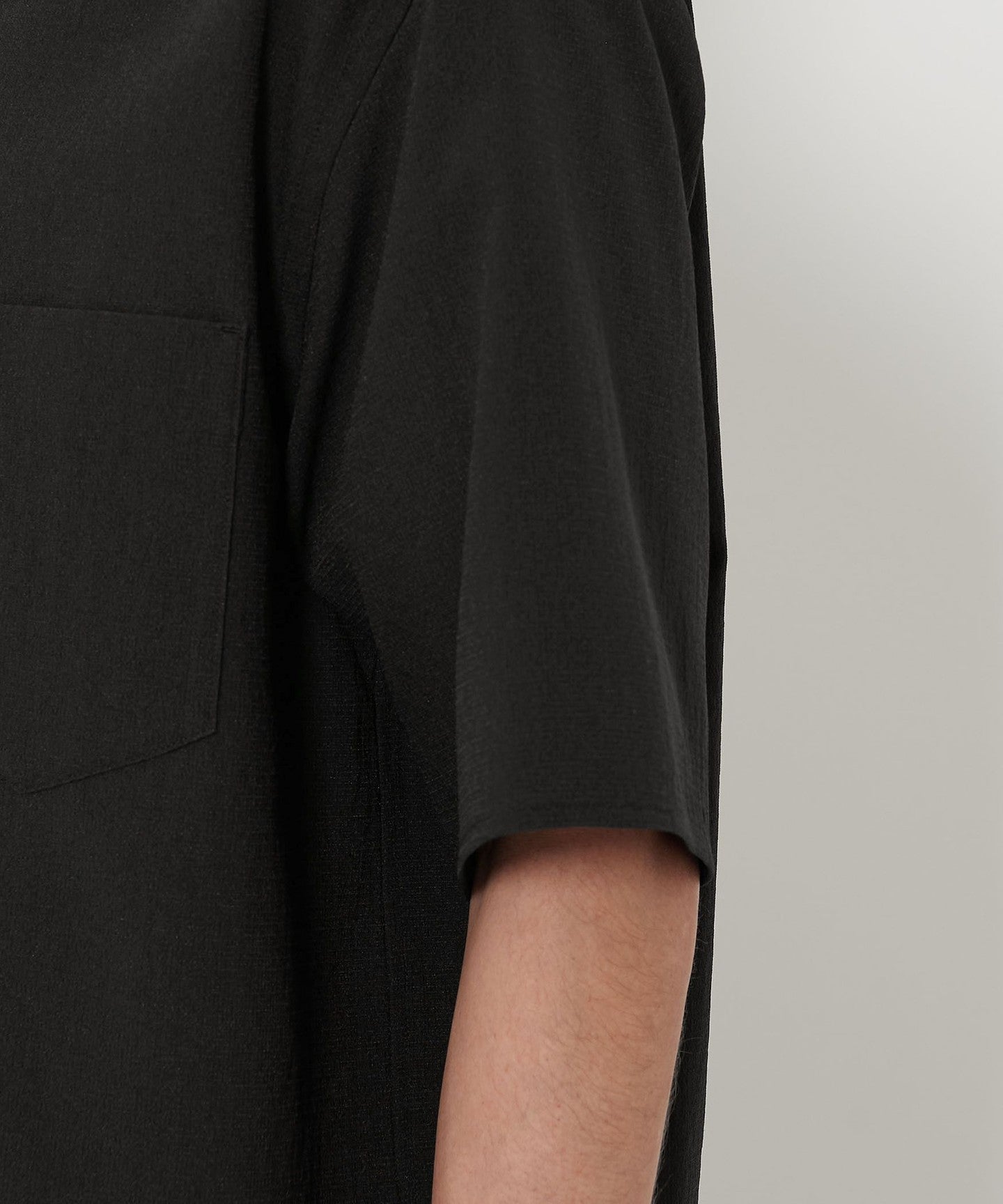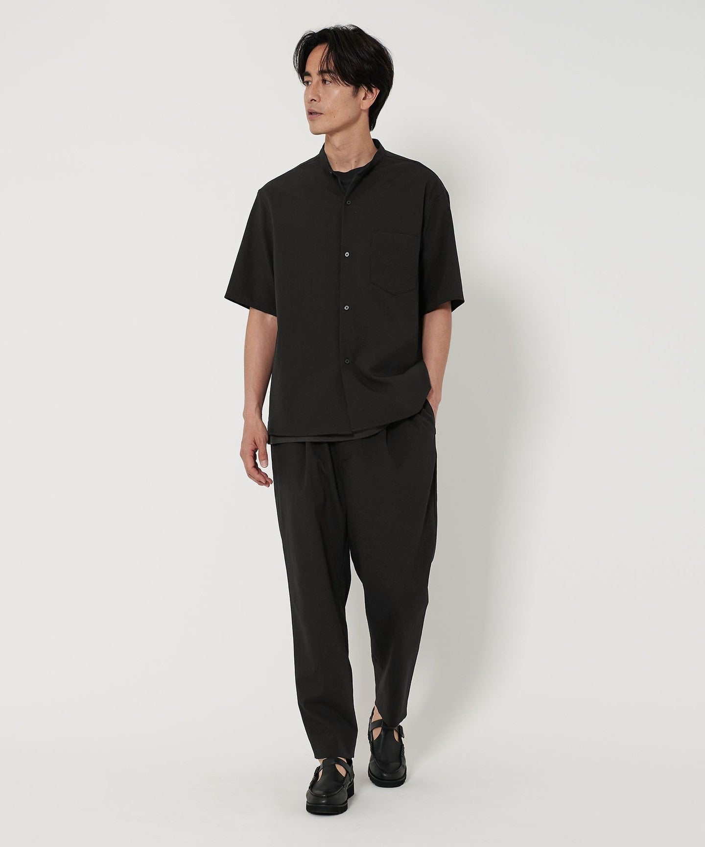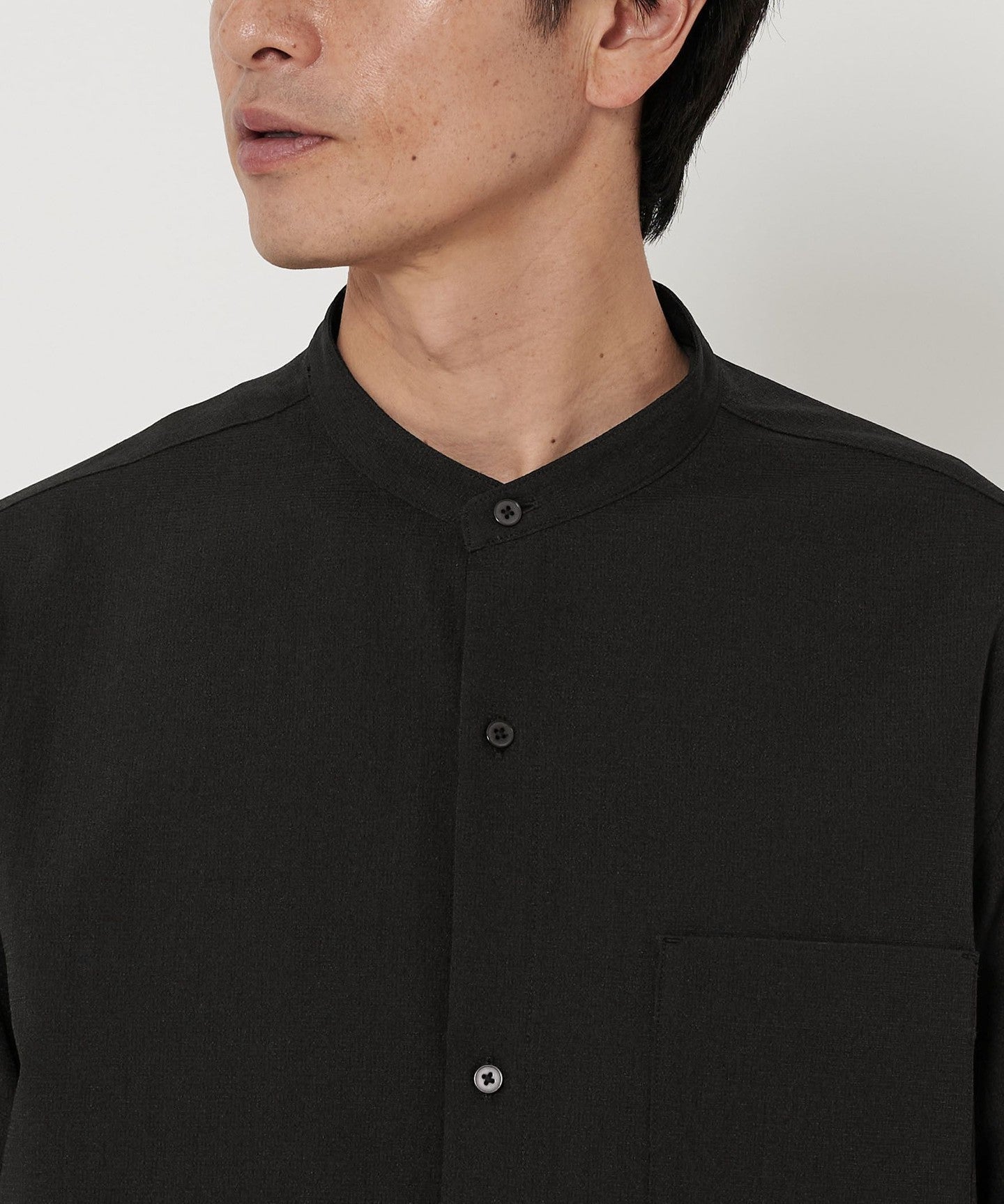 A boxy silhouette short-sleeved band collar shirt that looks great on its own.