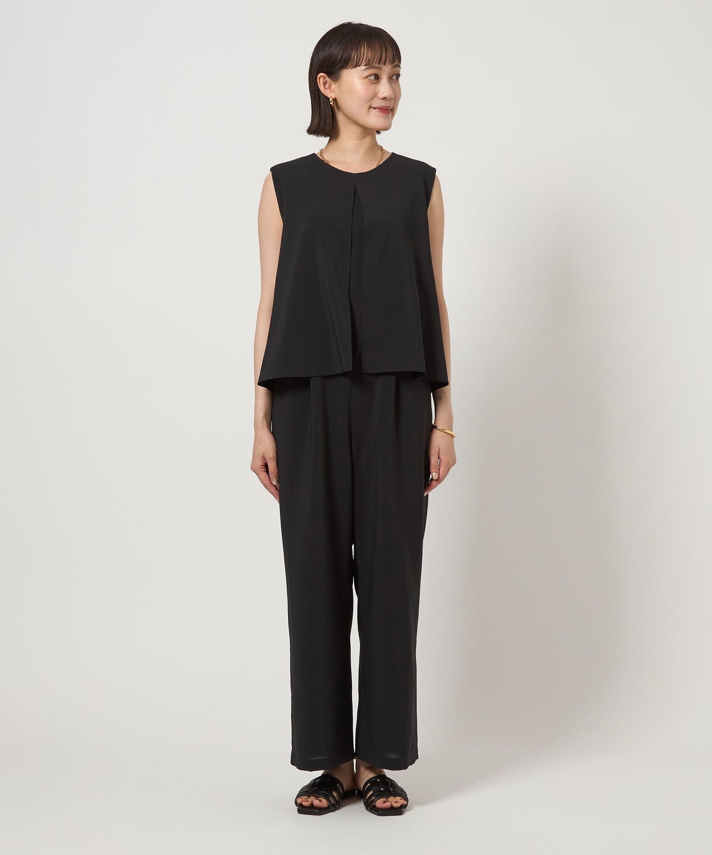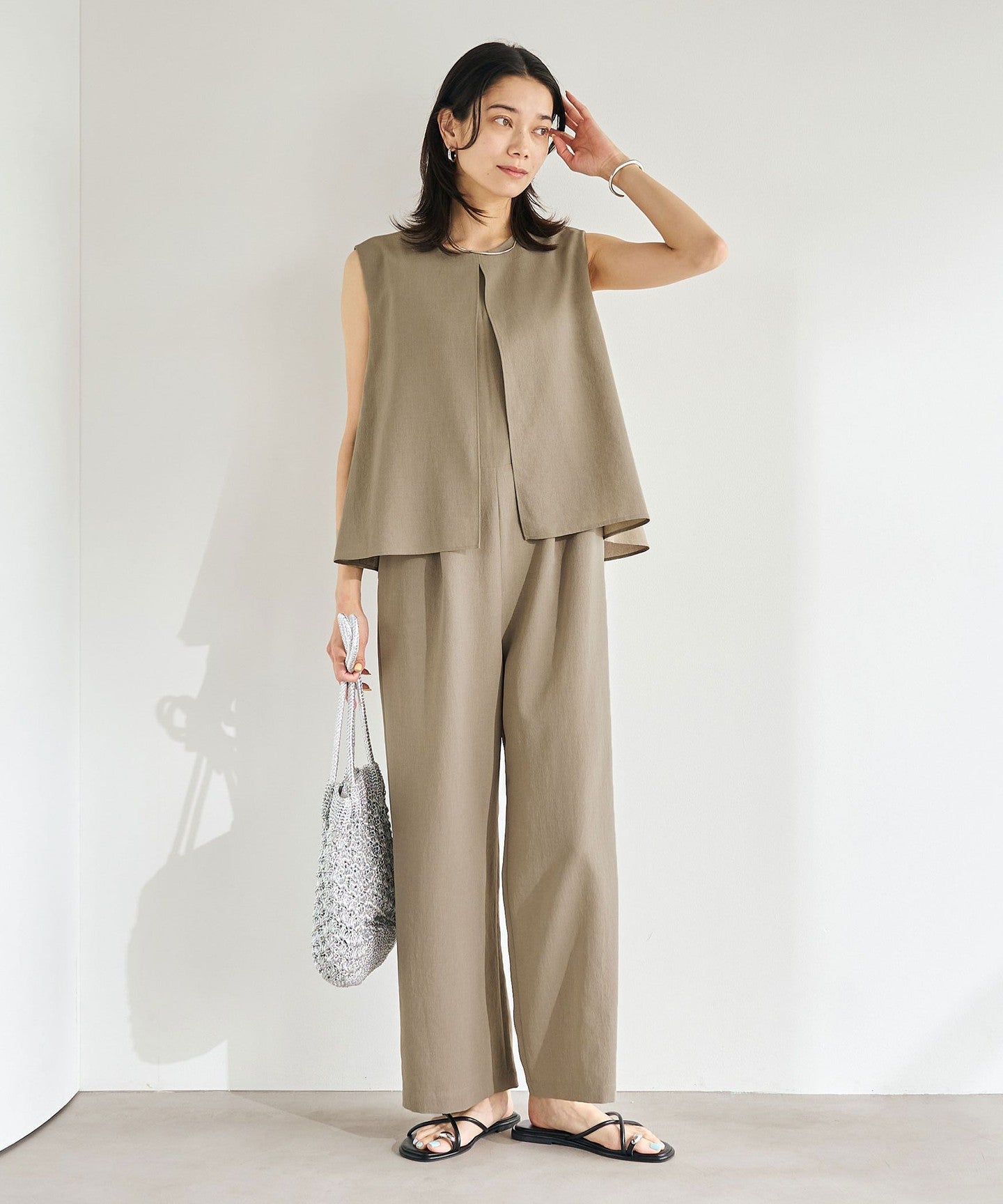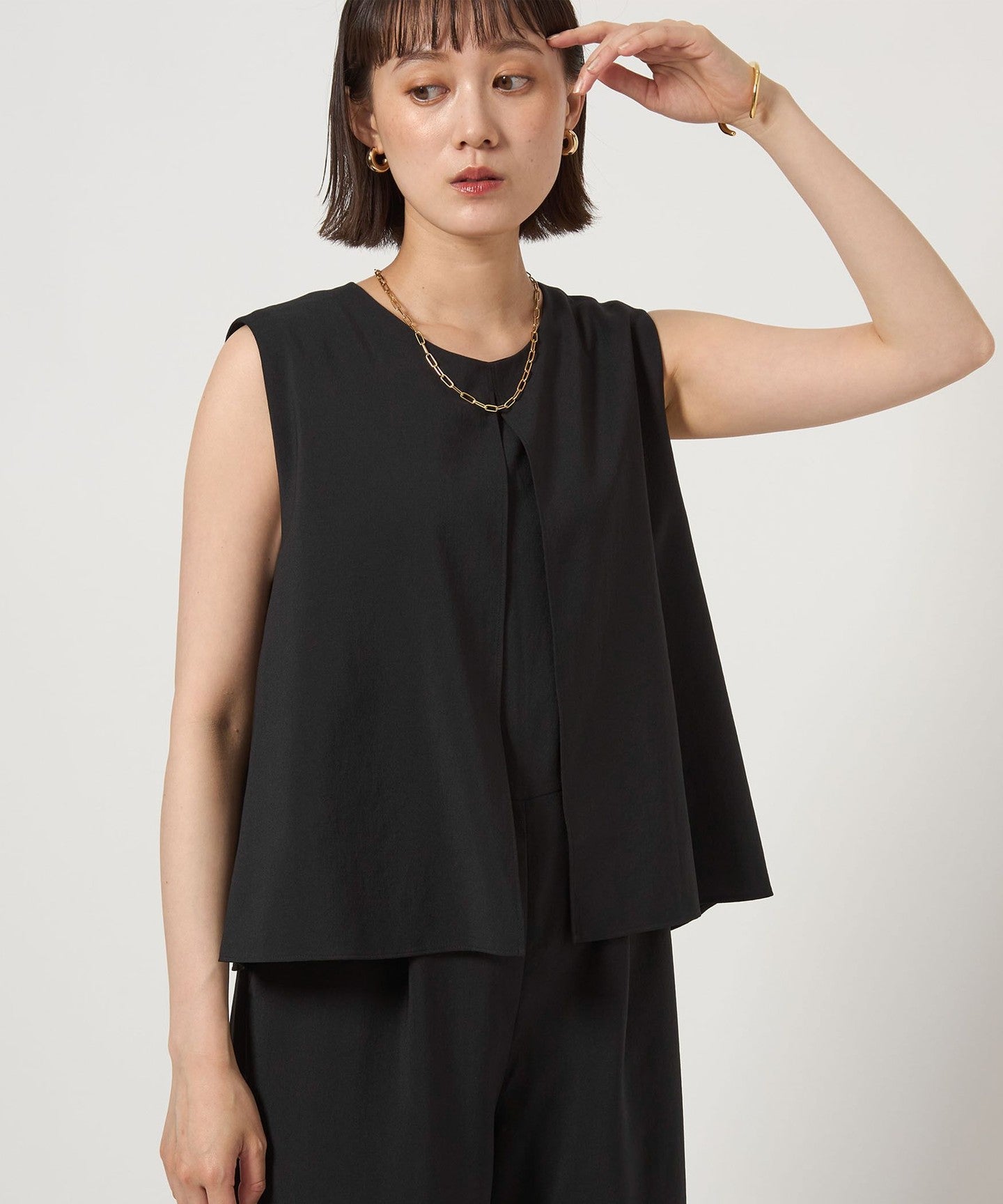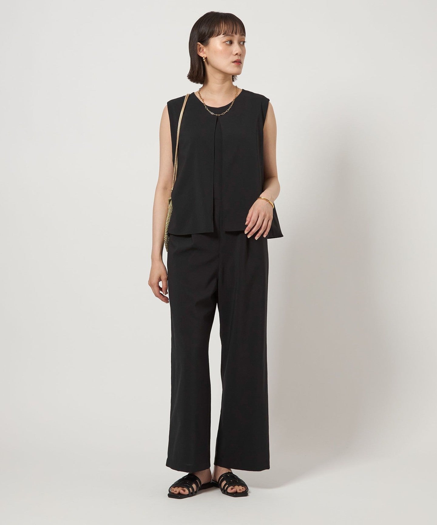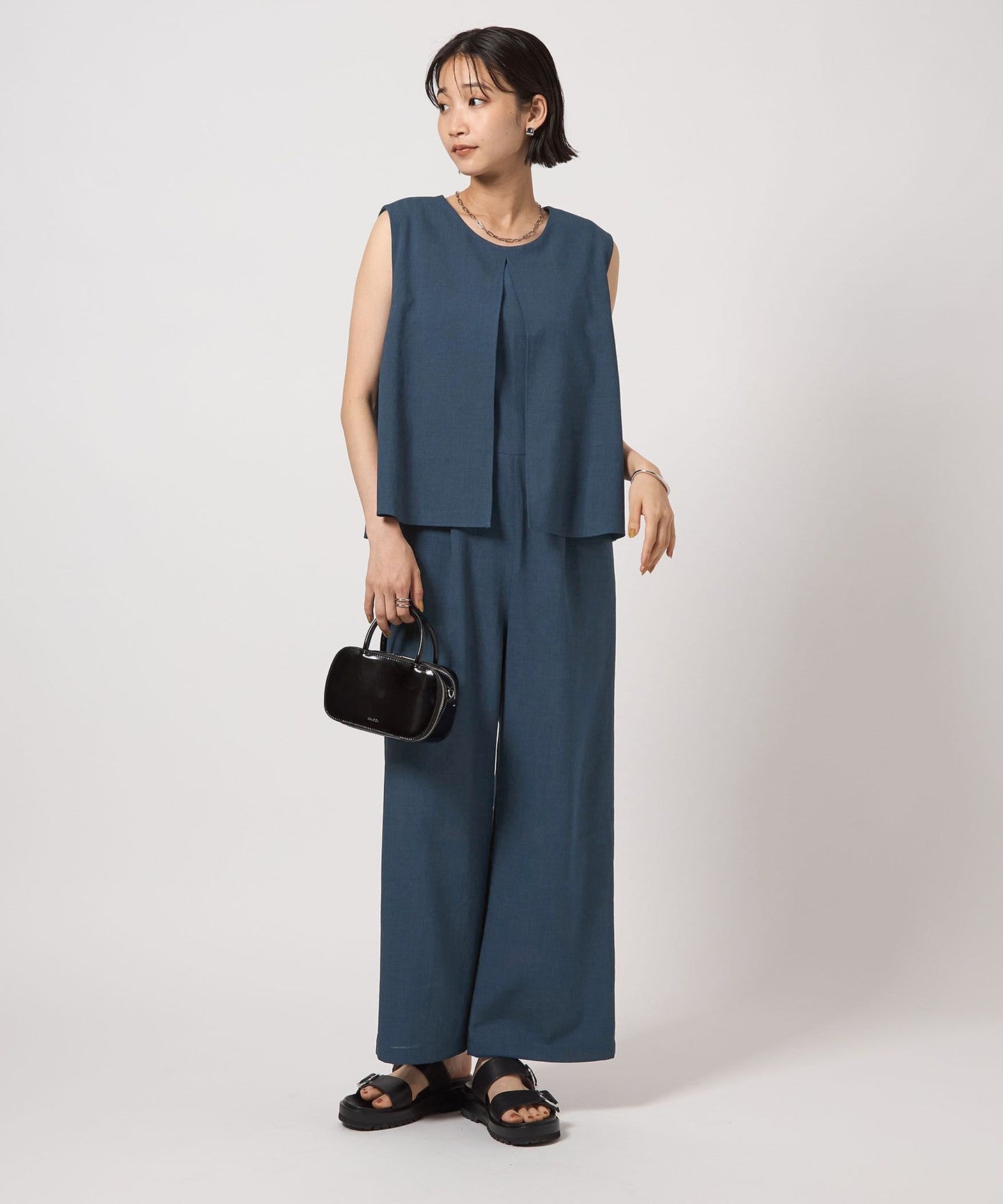 An all-in-one with a layered design that completes your outfit in one piece.