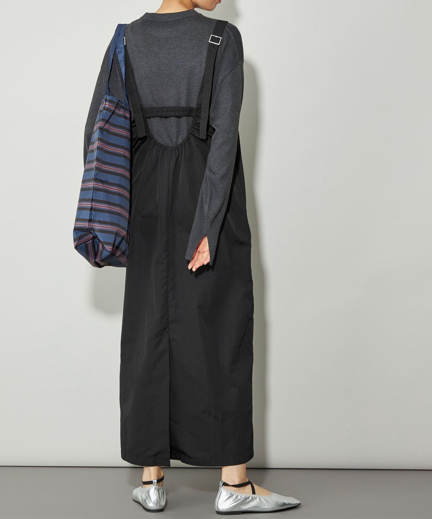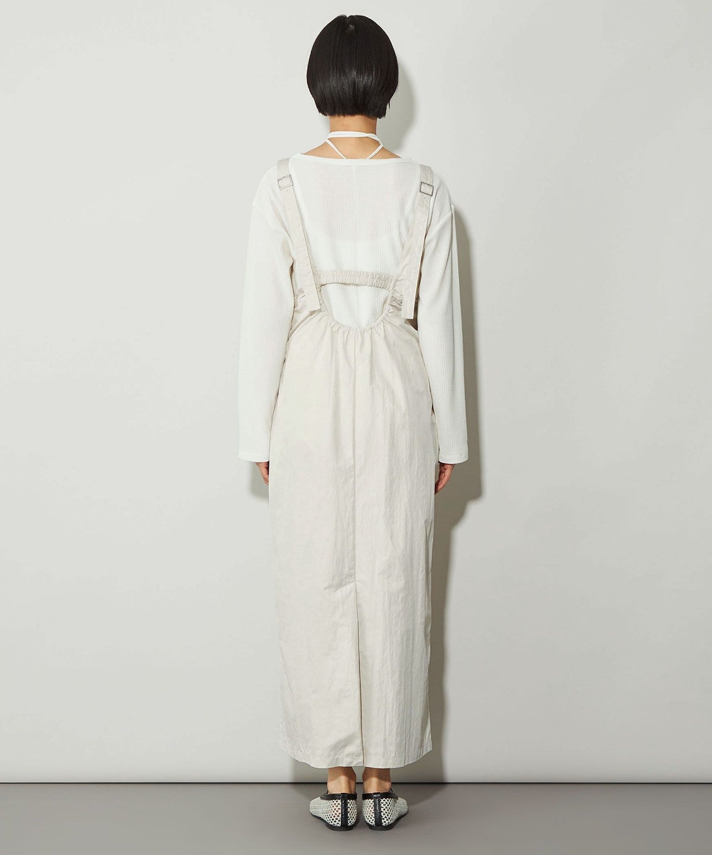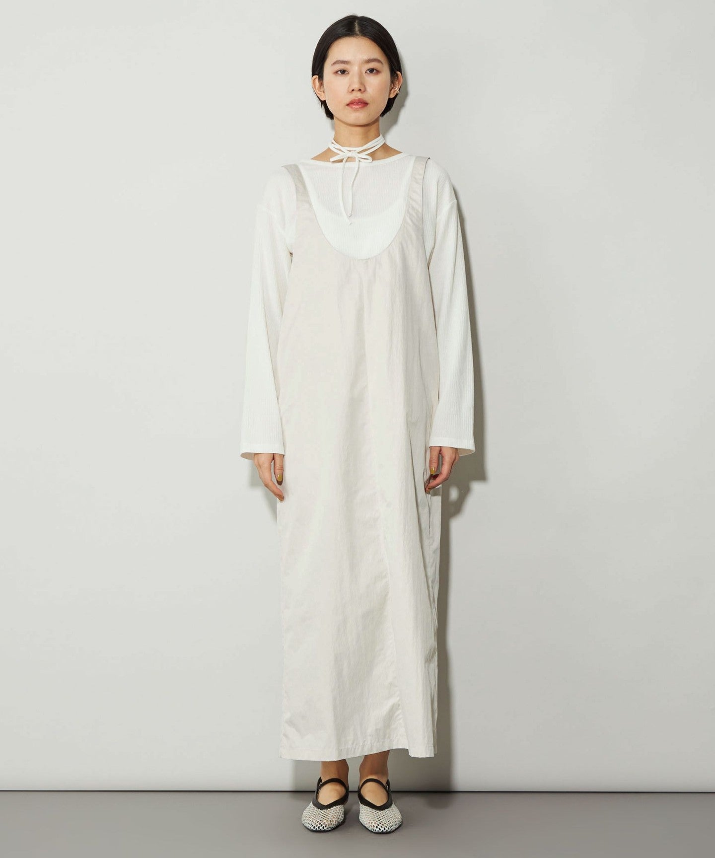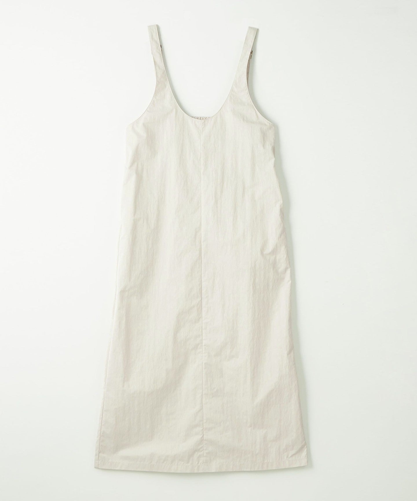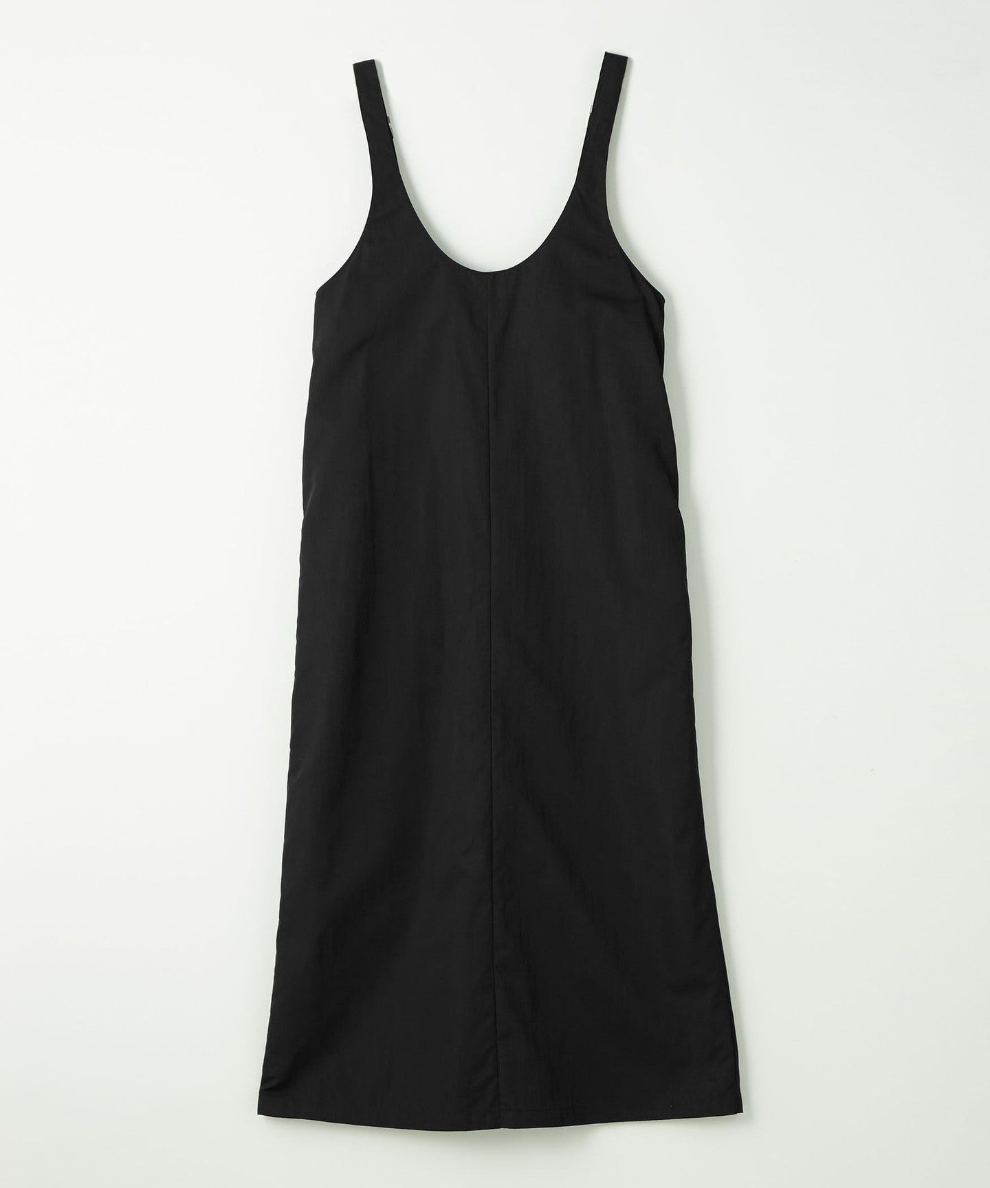 This dress features a deep, clean U-neck design that allows for layering.