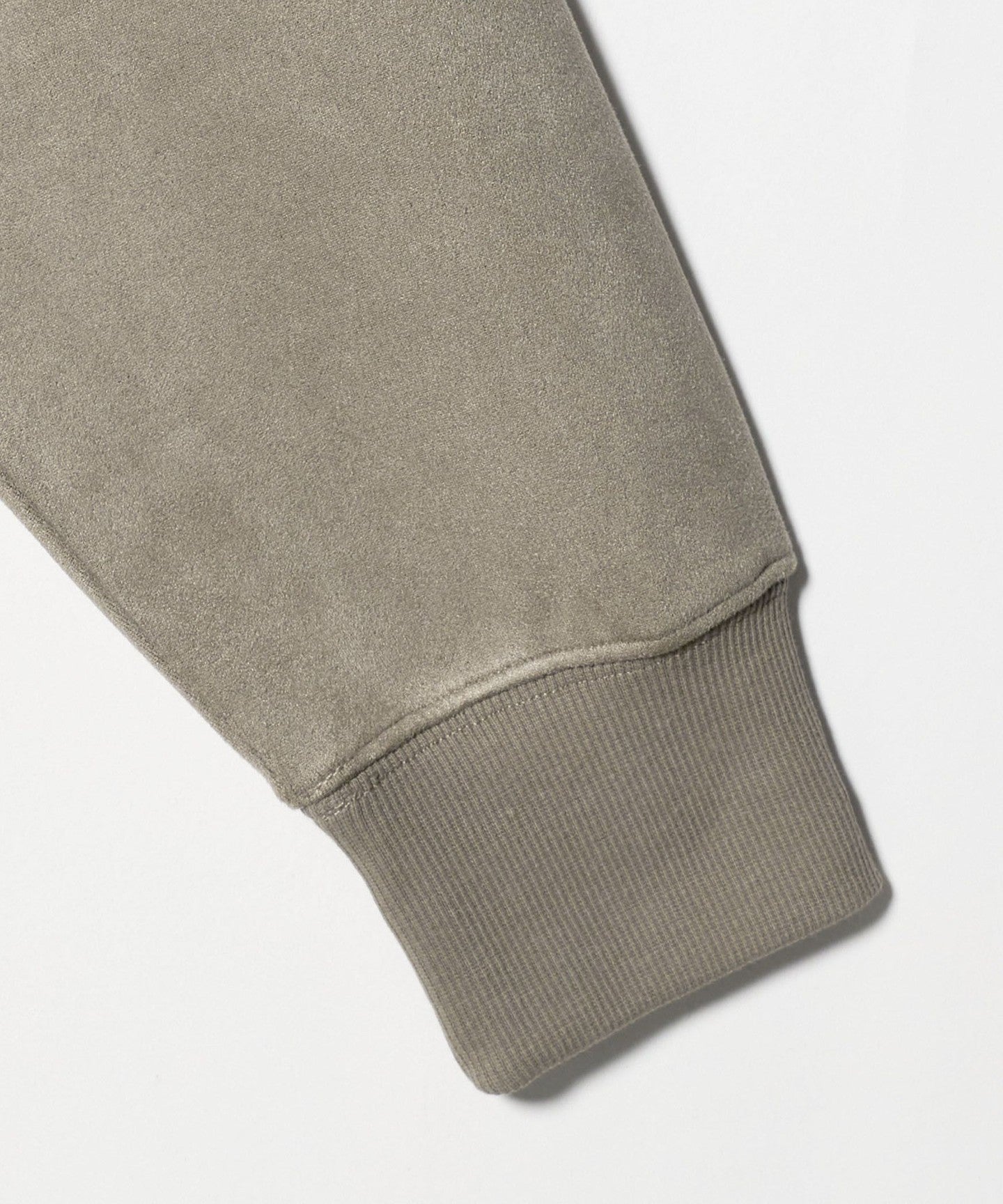 秋らしいスエード調の起毛素材で仕立てたシンプルな長袖カットソー。