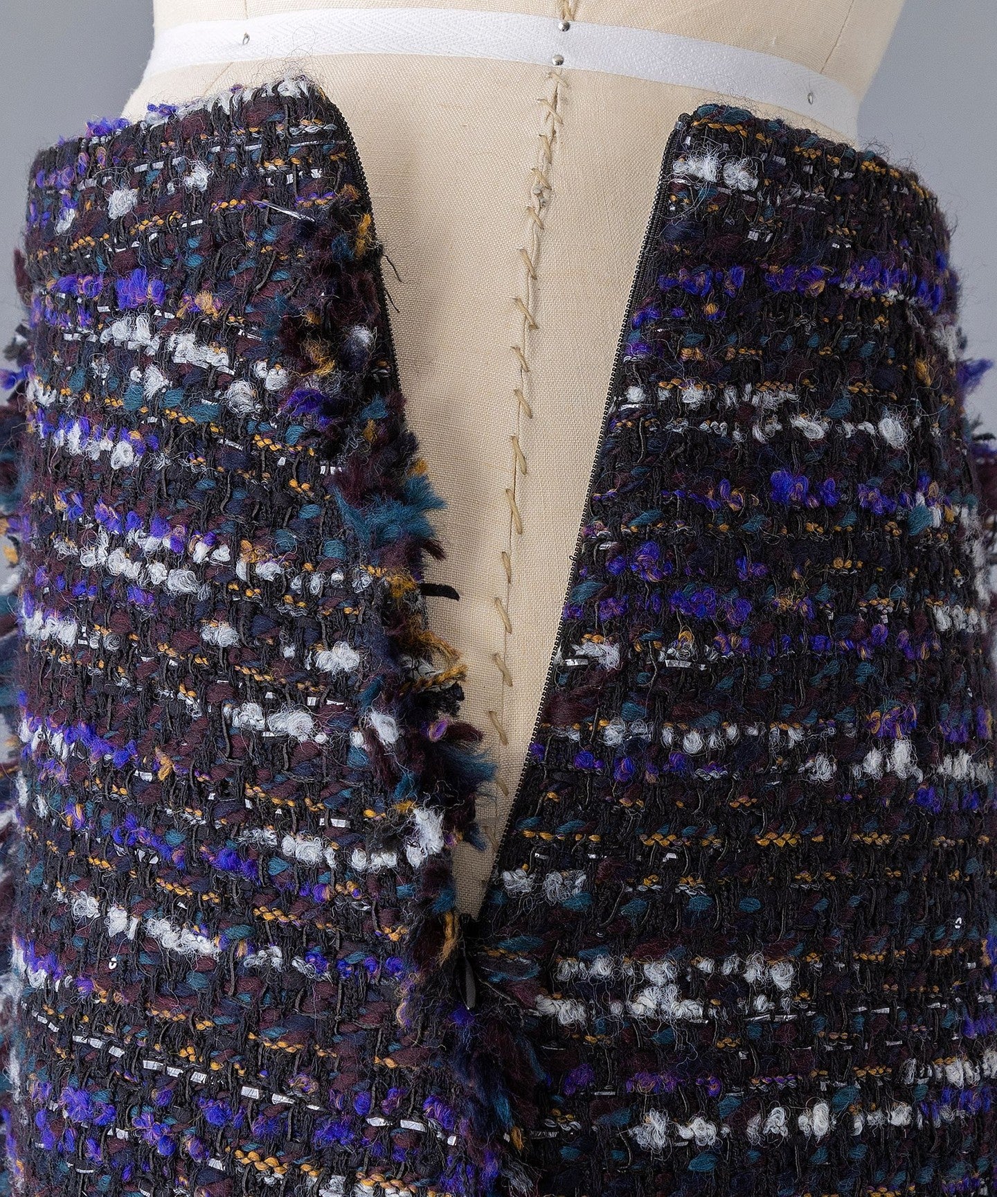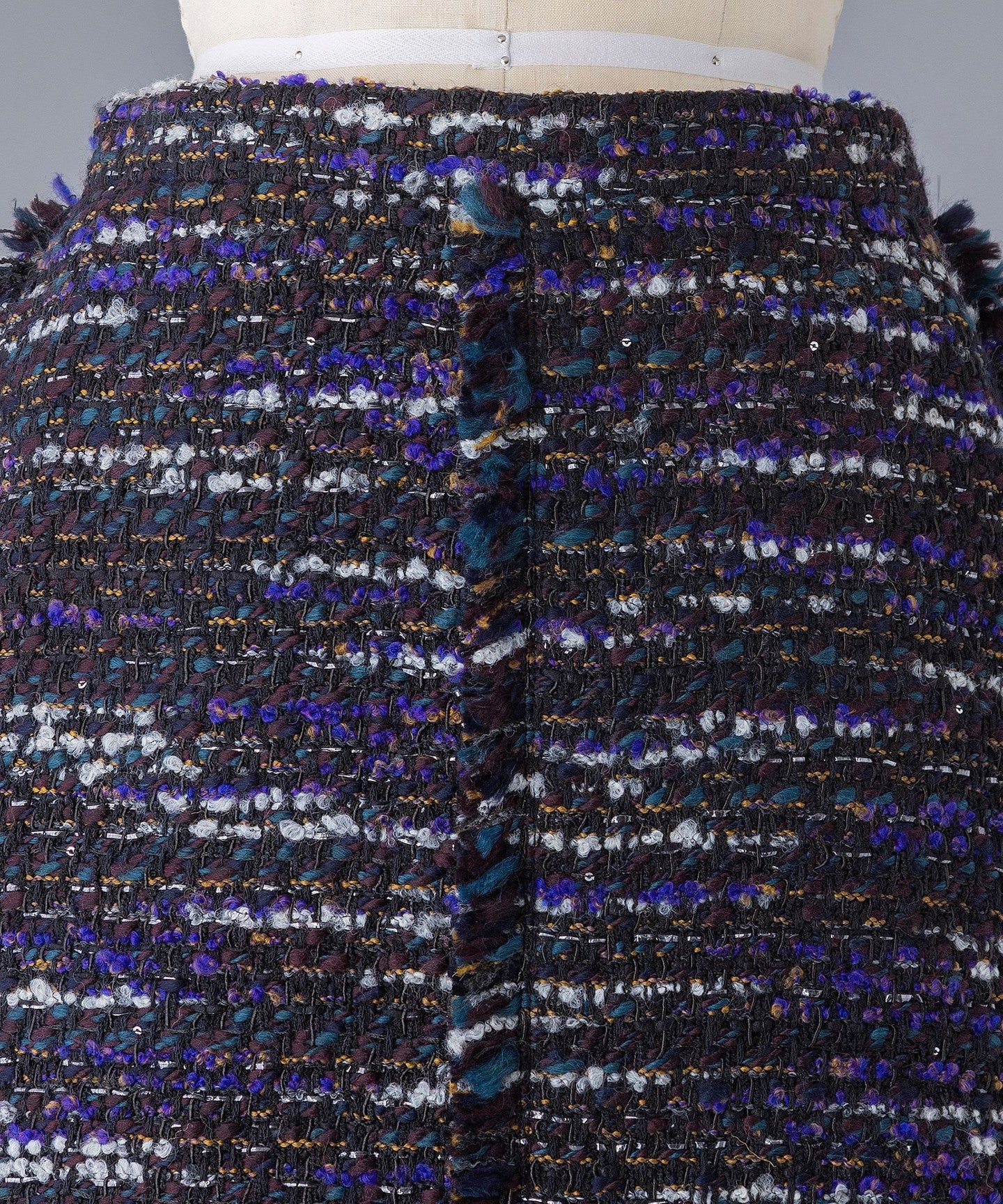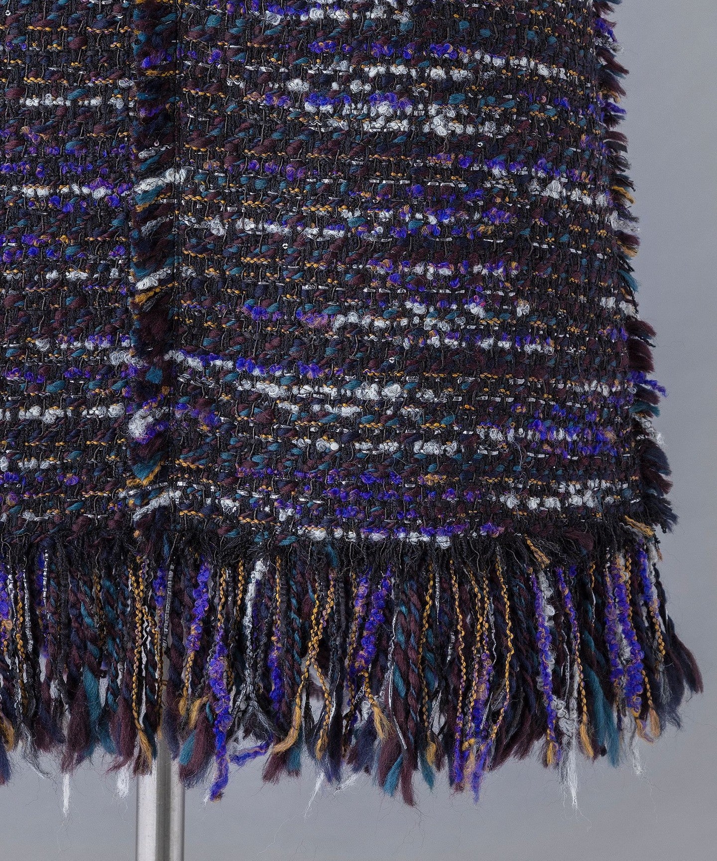The expressive tweed material with a chic and atmospheric color scheme is sure to catch your eye.