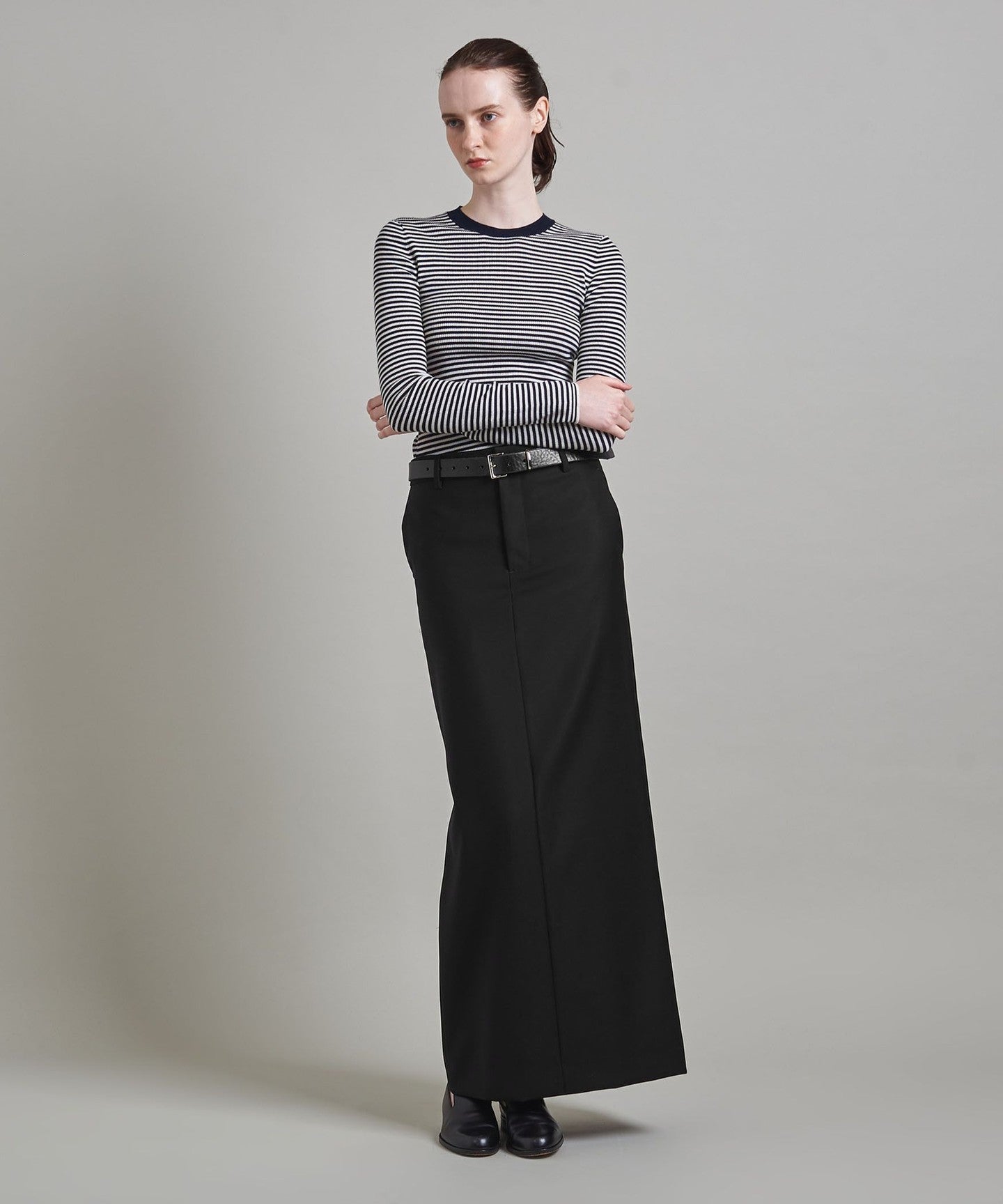 This tight skirt with a masculine impression is perfect to wear with a belt, and is also recommended for those who like pants.
