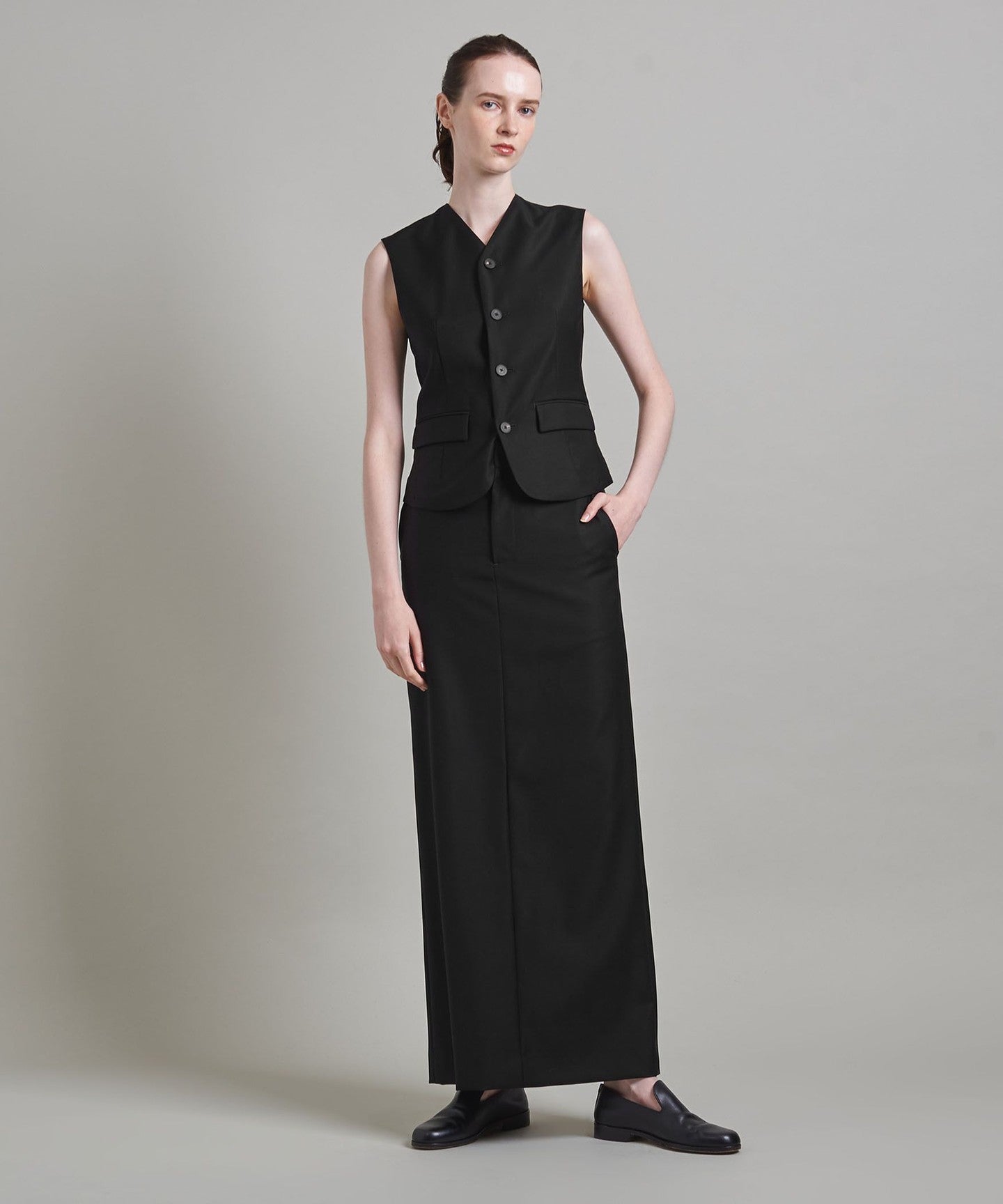 A mannish skirt with a beautiful, sharp vertical silhouette
