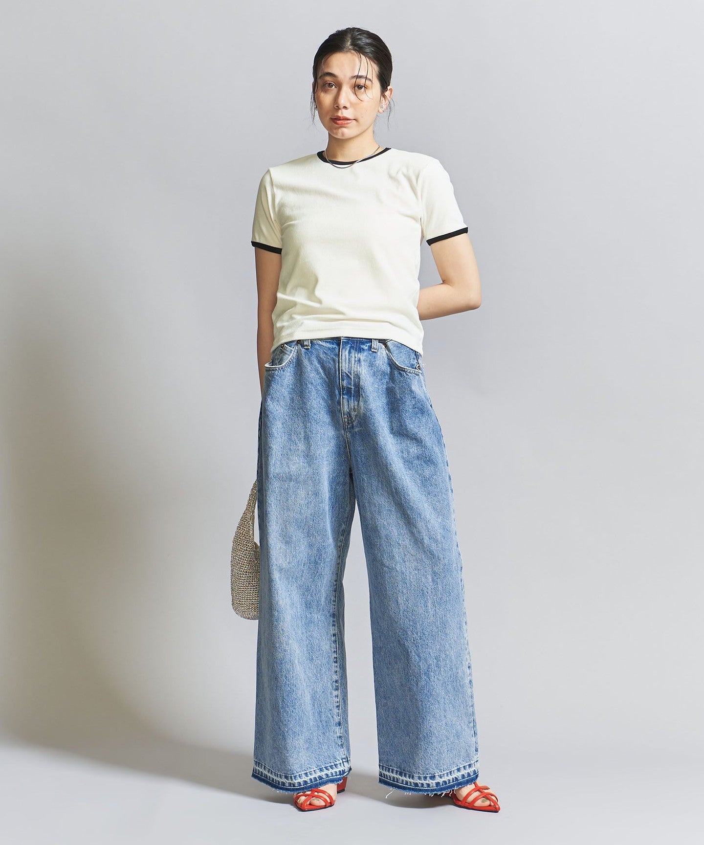 We recommend pairing it with a compact casual top such as a ringer T-shirt or a multi-border T-shirt.