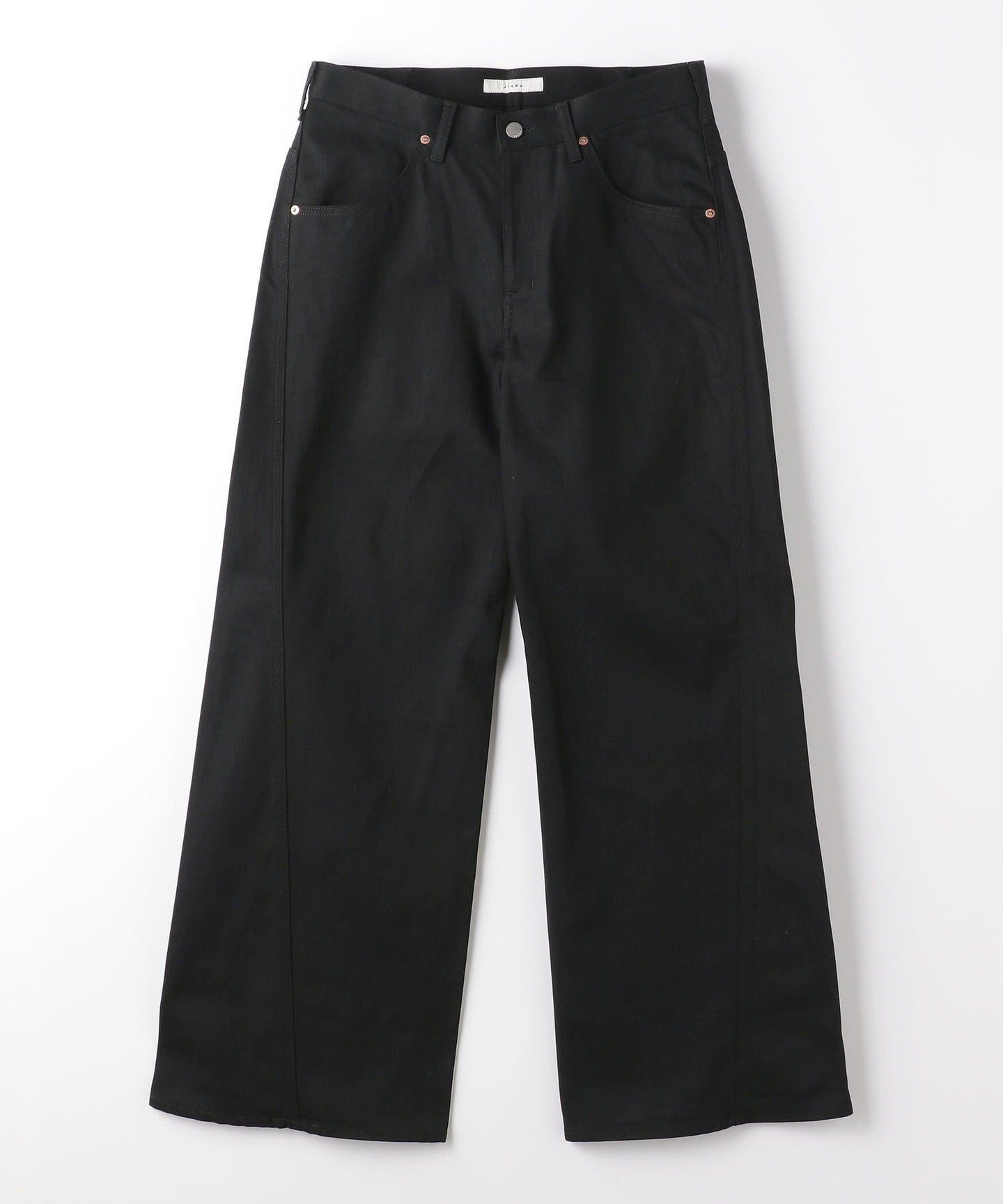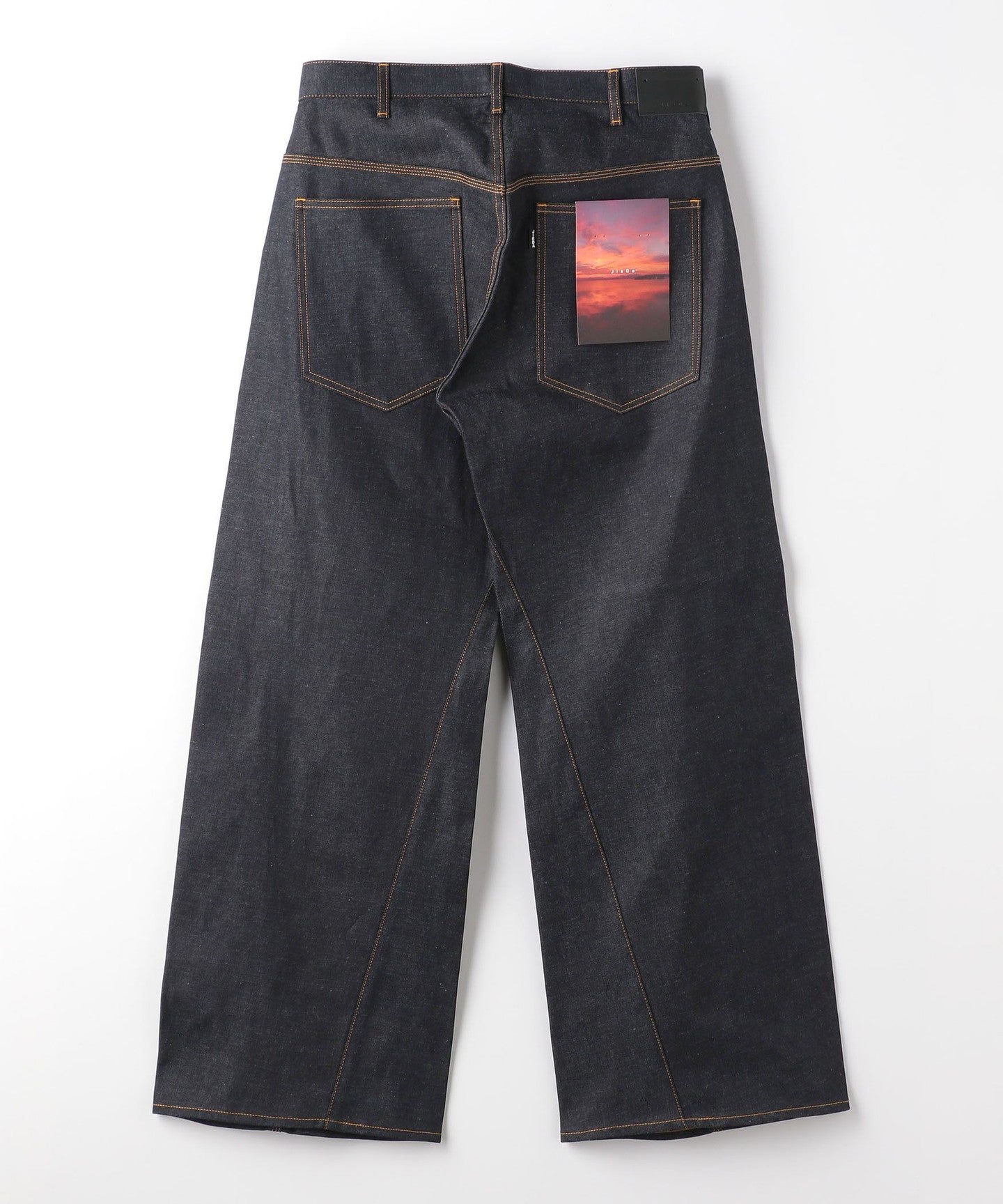 The twisted side seams created by the three-dimensional pattern create a unique silhouette, and the shallow rise gives these wide jeans a clean silhouette around the waist.