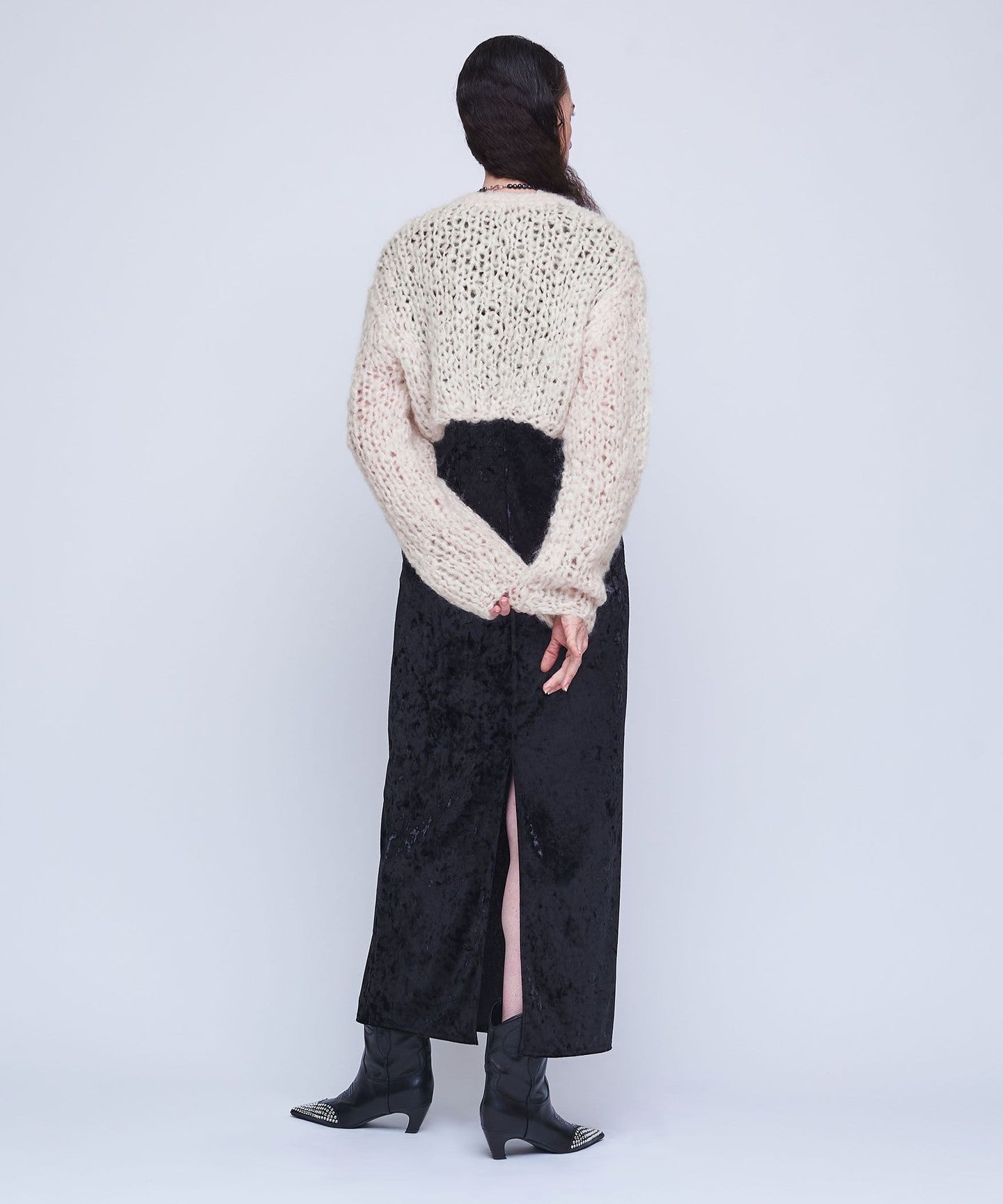 This is a completely hand-knitted piece, carefully and roughly knitted one by one using extra-thick knitting needles.