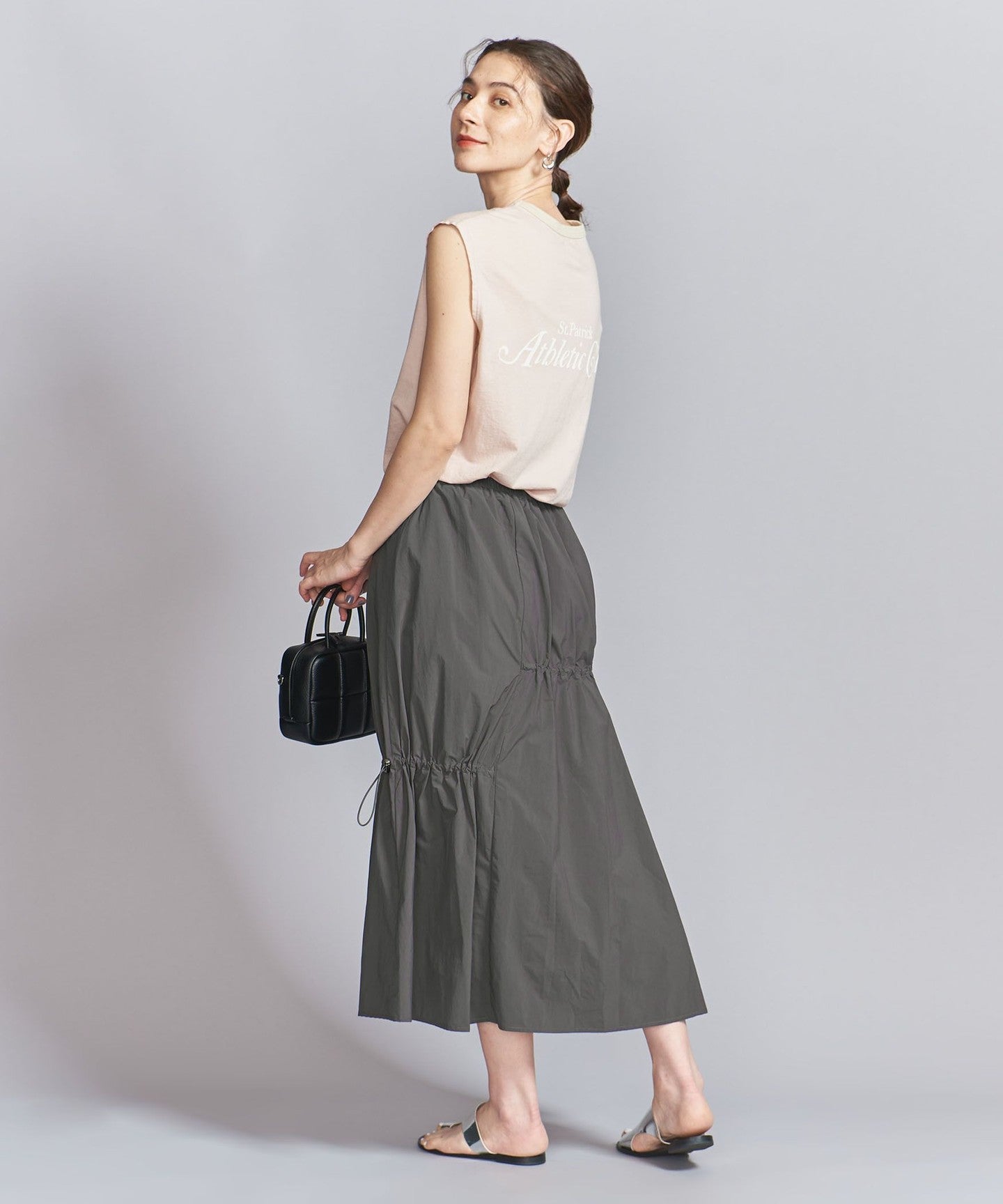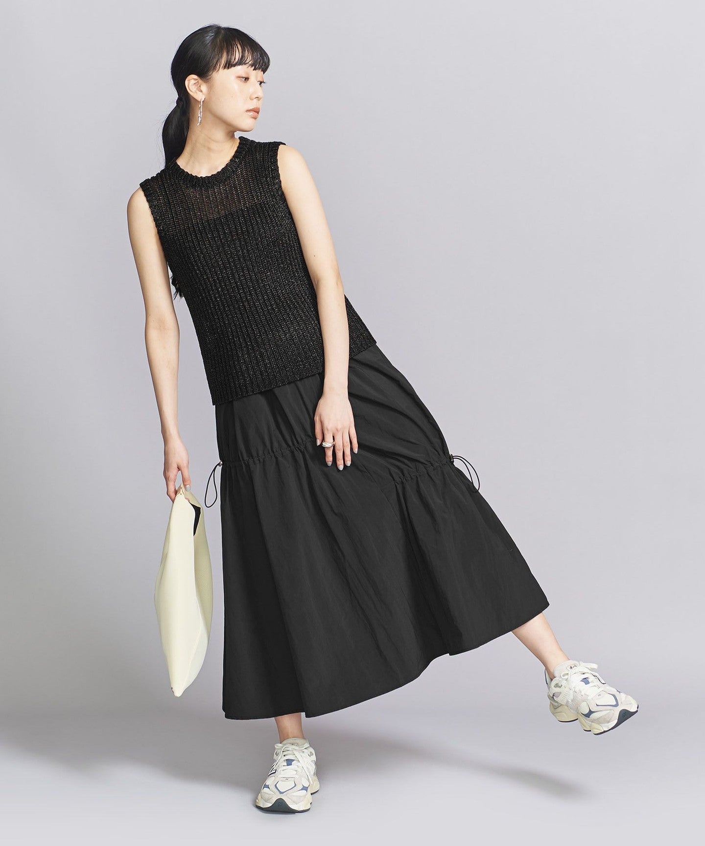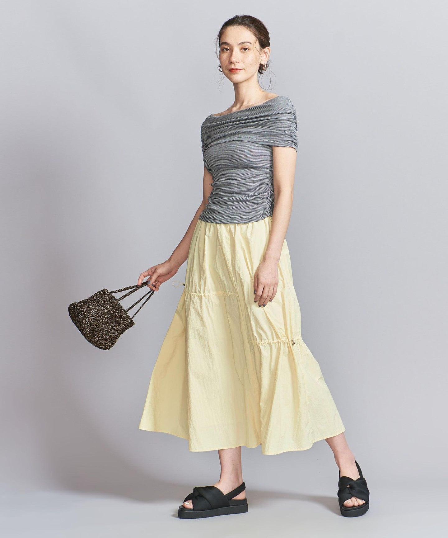 The range of styles can be expanded by adjusting the gathers to make it fluffy when wearing a tight top, or by tightening the cord to make it tight when wearing a loose T-shirt or sweatshirt.