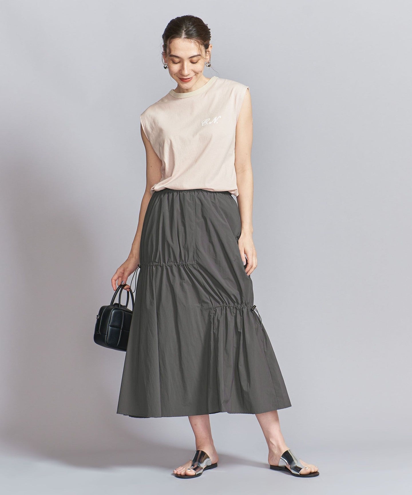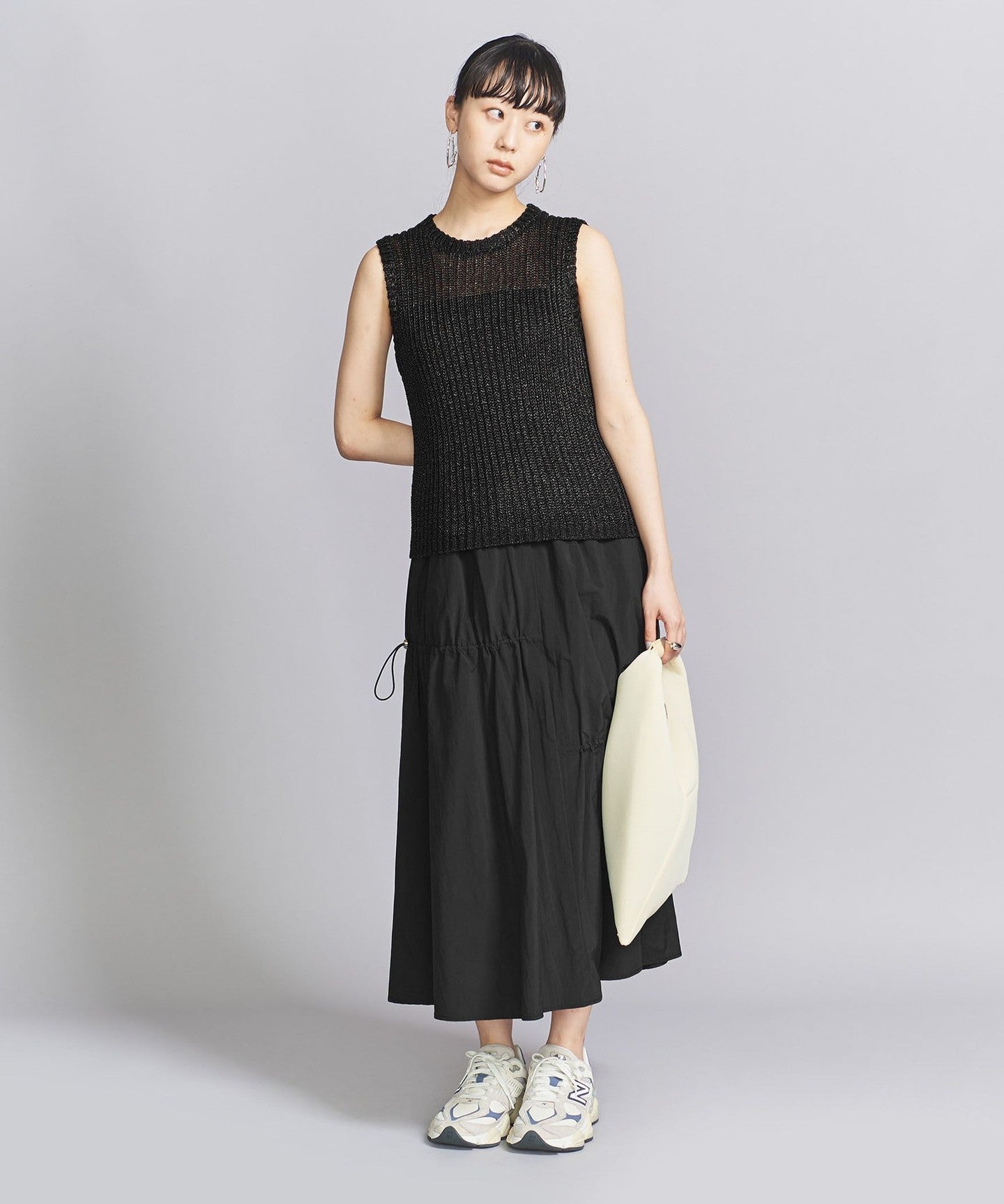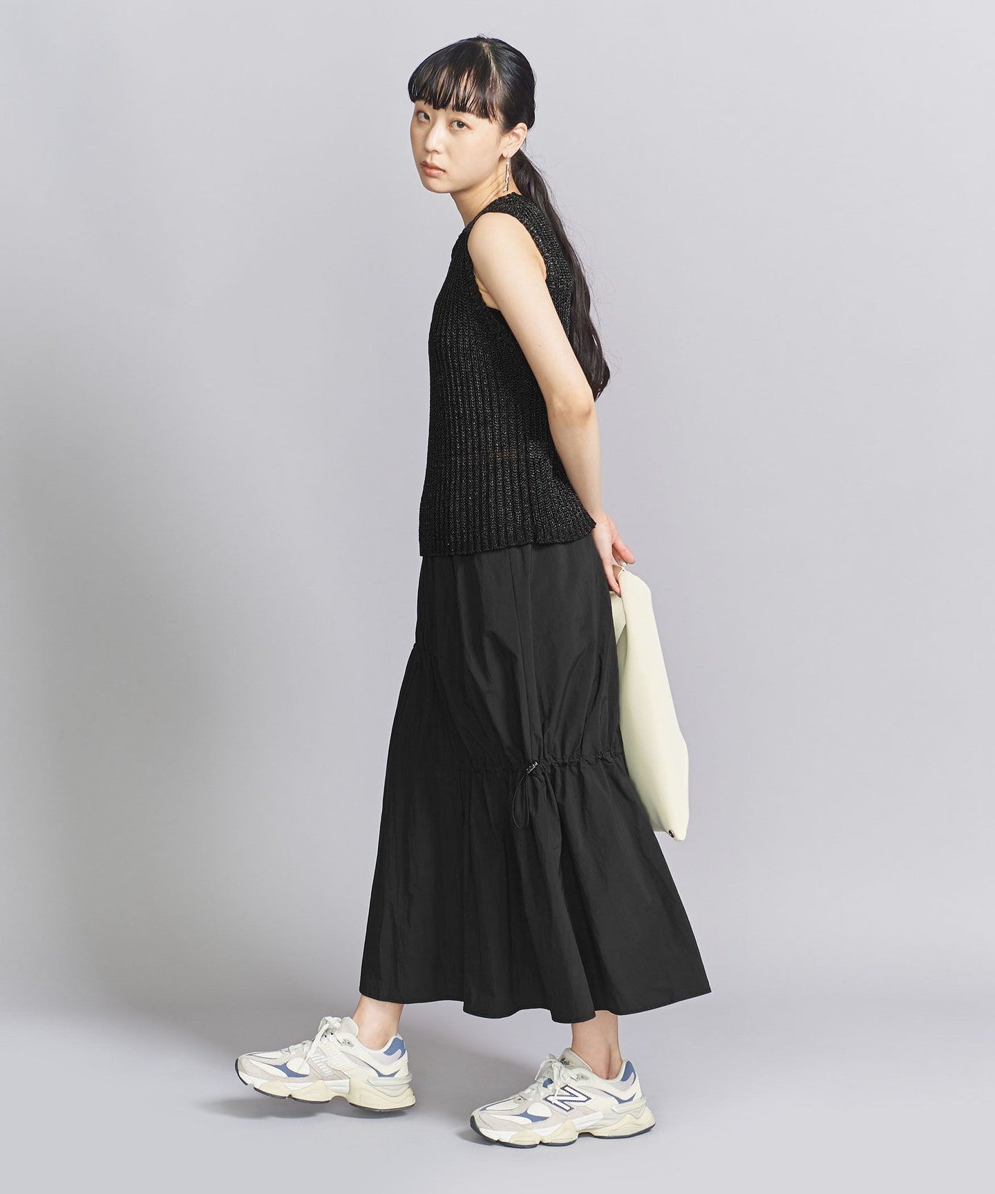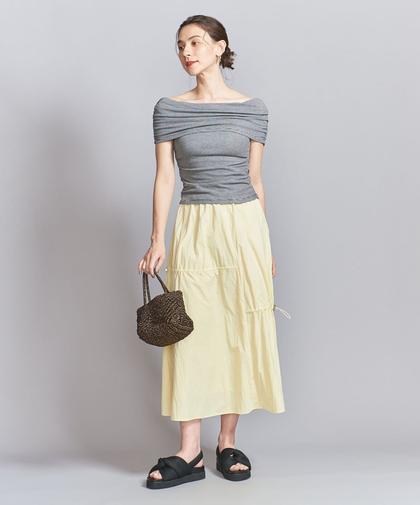 The range of styles can be expanded by adjusting the gathers to make it fluffy when wearing a tight top, or by tightening the cord to make it tight when wearing a loose T-shirt or sweatshirt.
