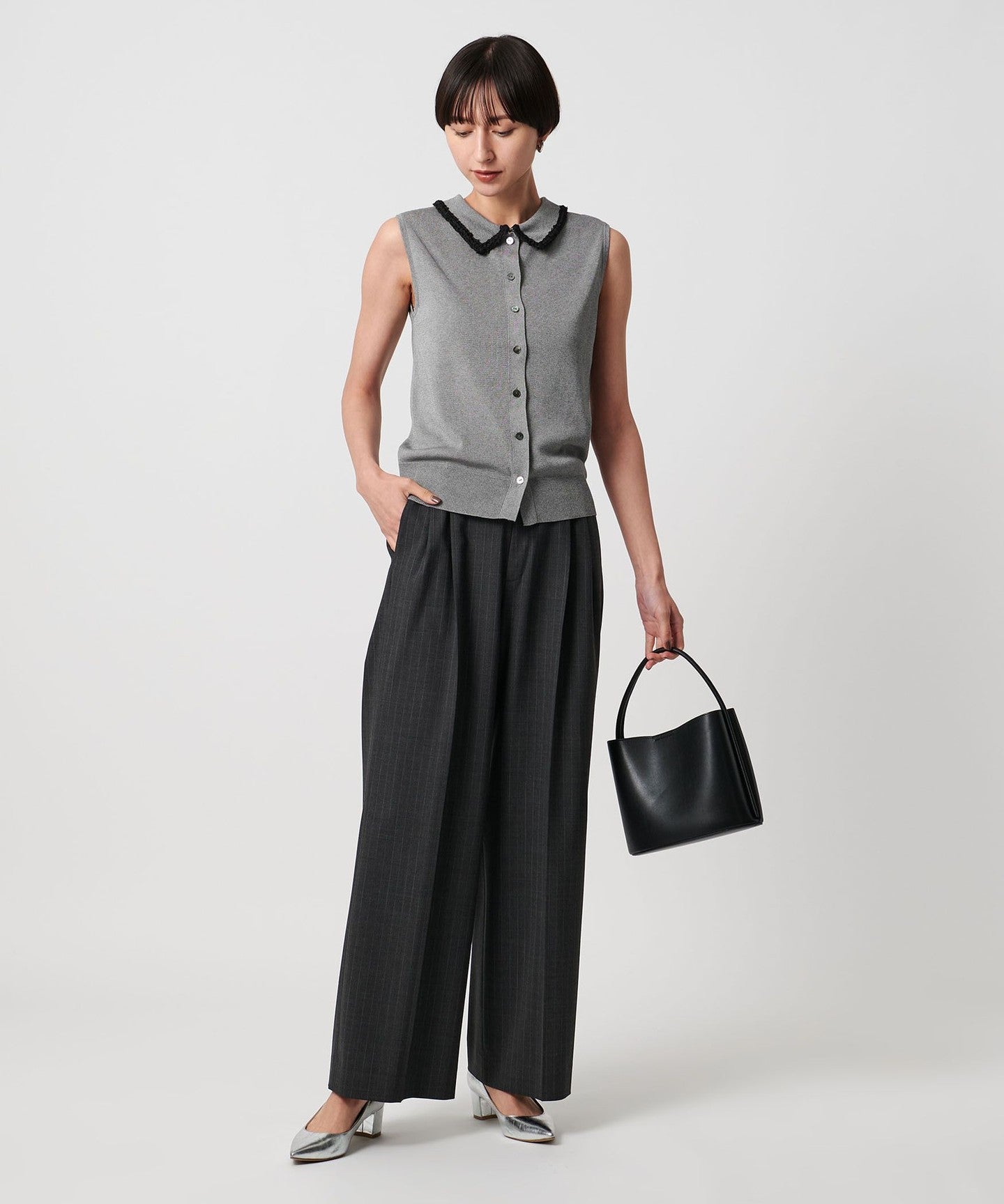 A neat sleeveless knit goes well with voluminous pants or skirts.