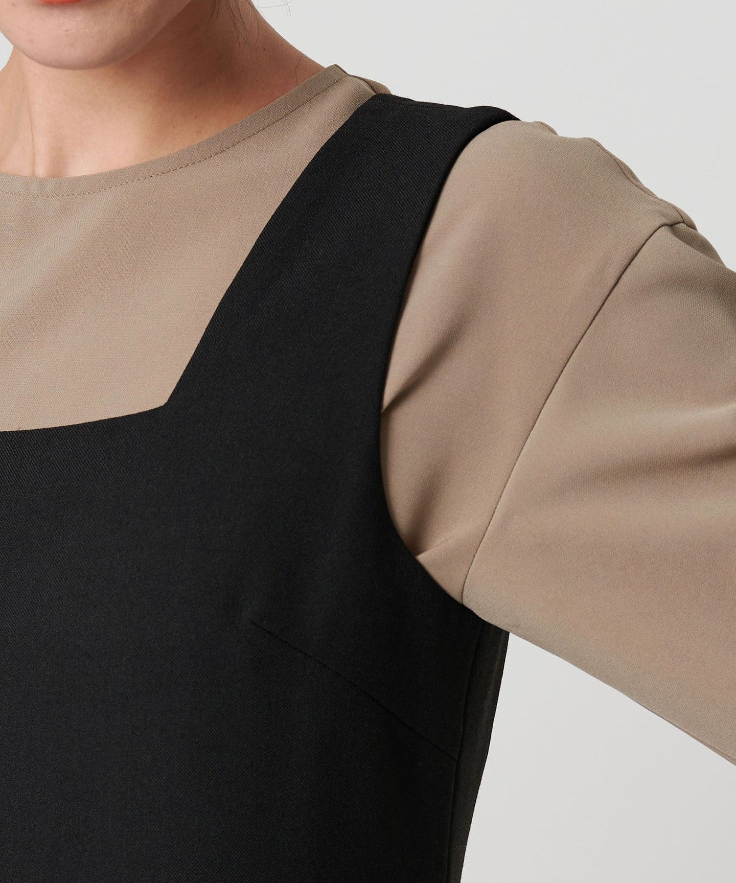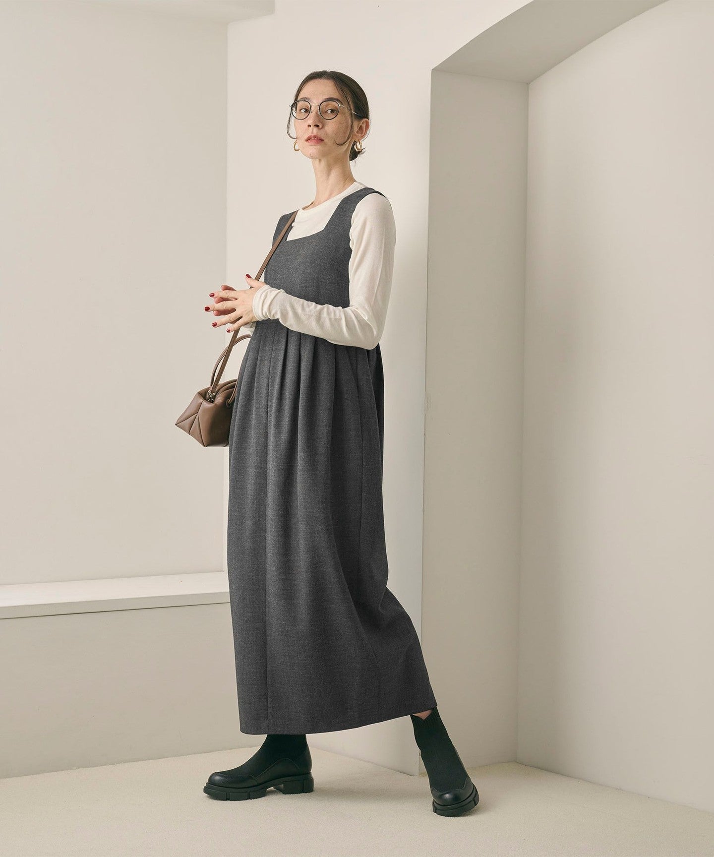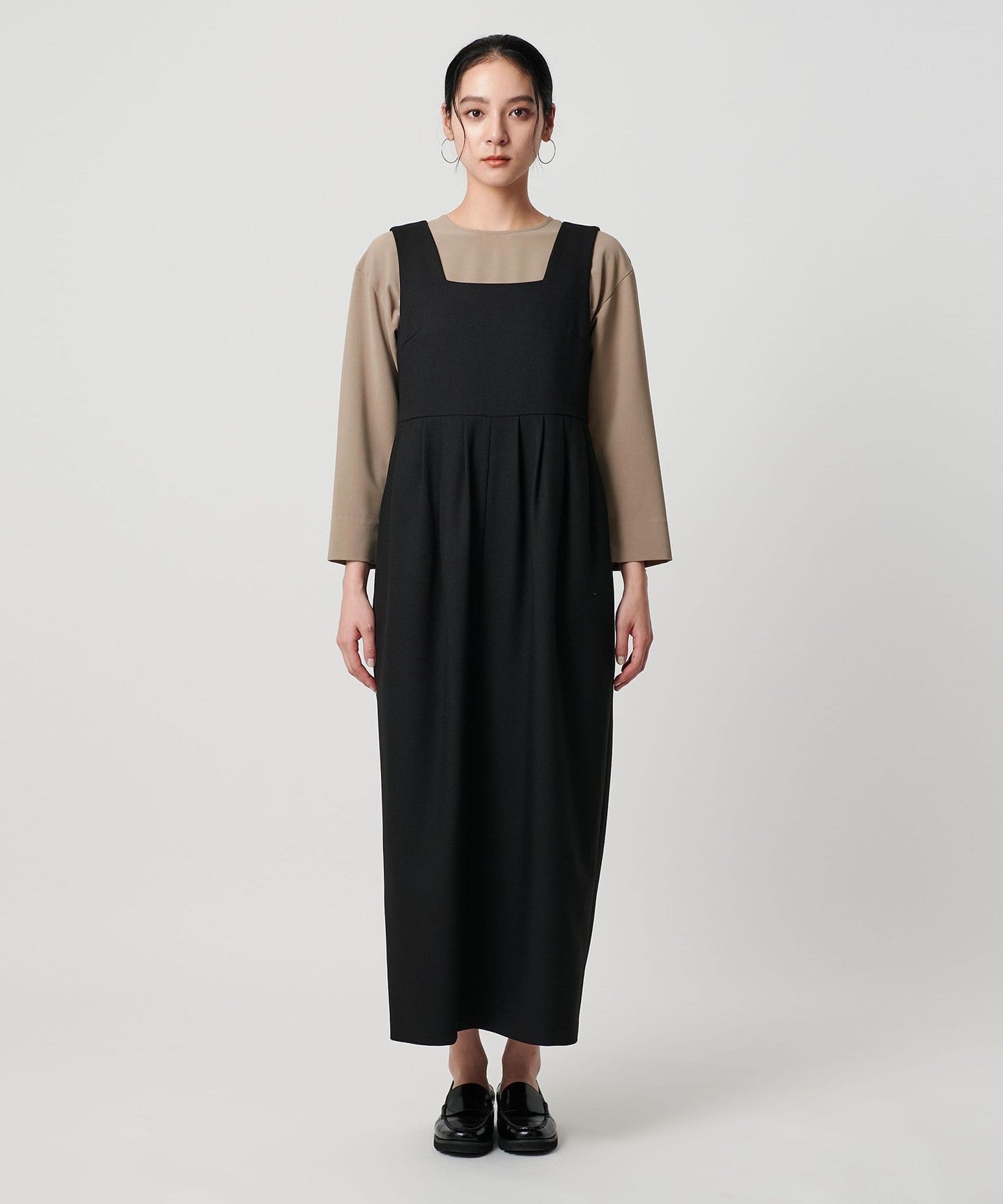 [Wardrobe DAILY MINIMAL, online only] Wool-like melange square neck dress, washable