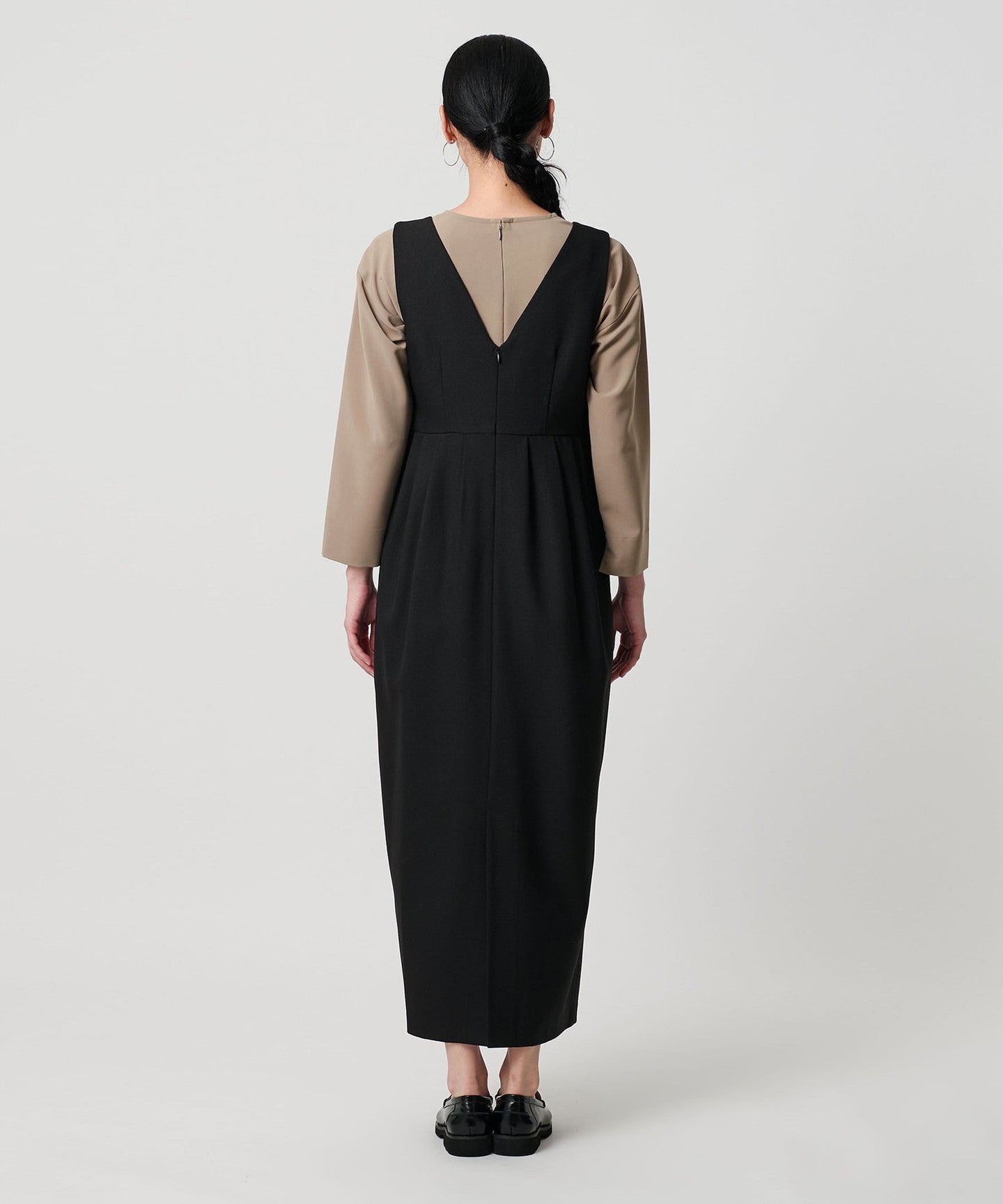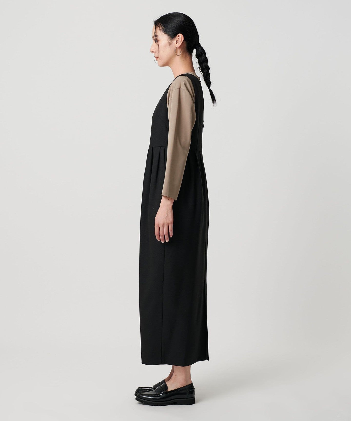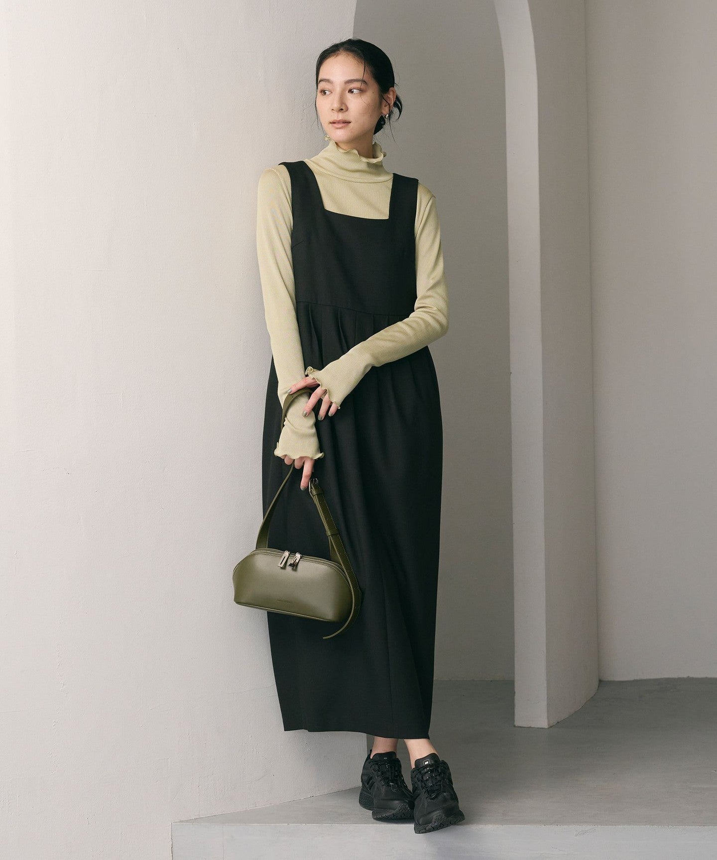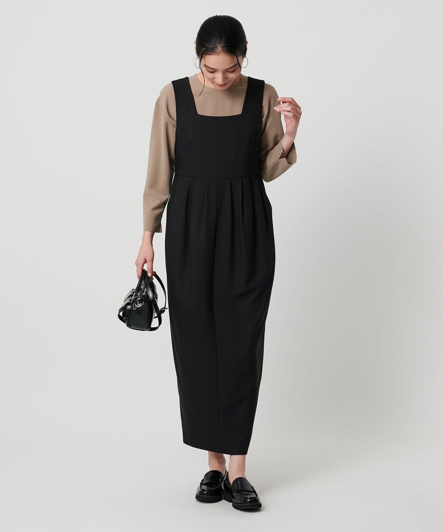 [Wardrobe DAILY MINIMAL, online only] Wool-like melange square neck dress, washable