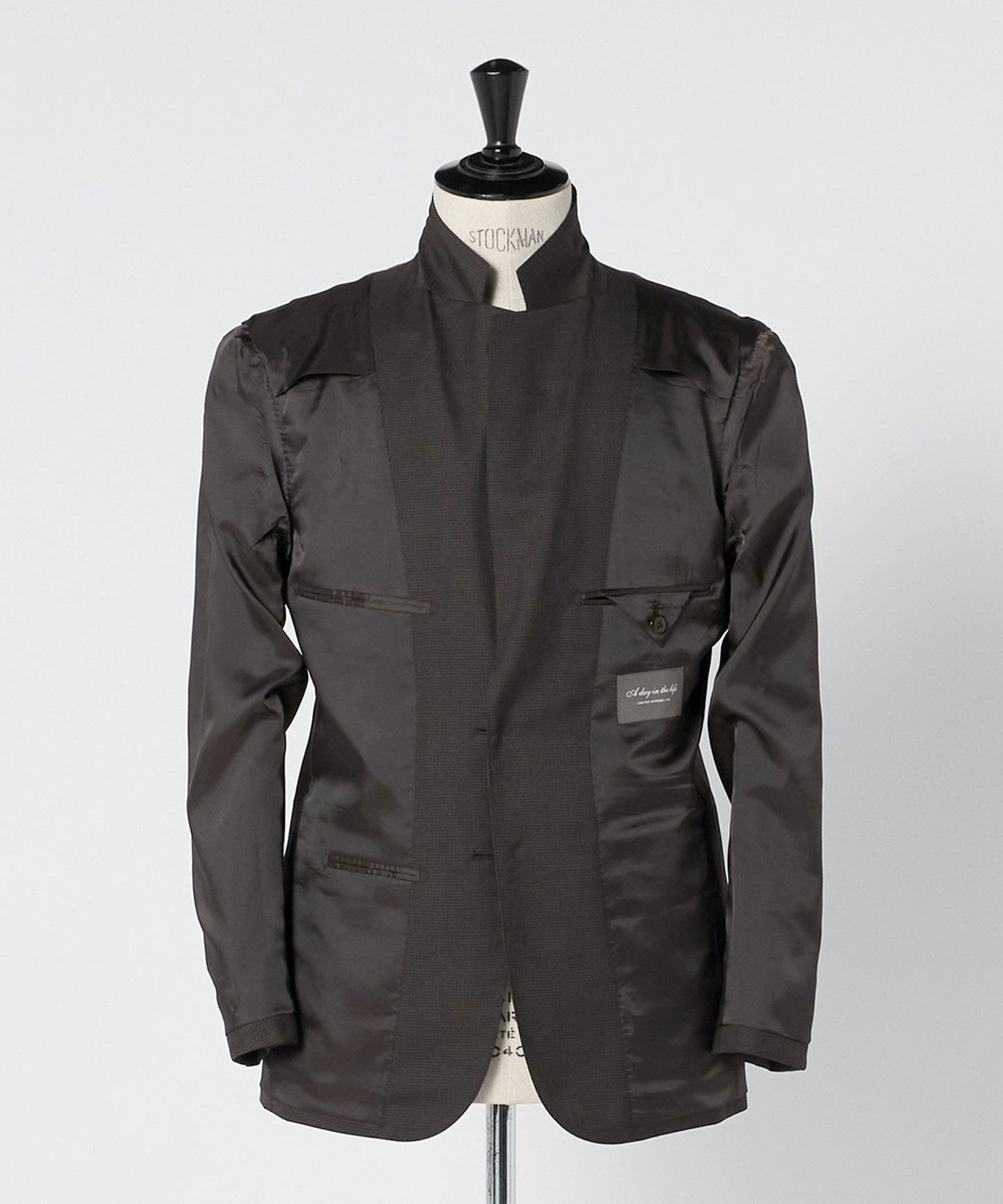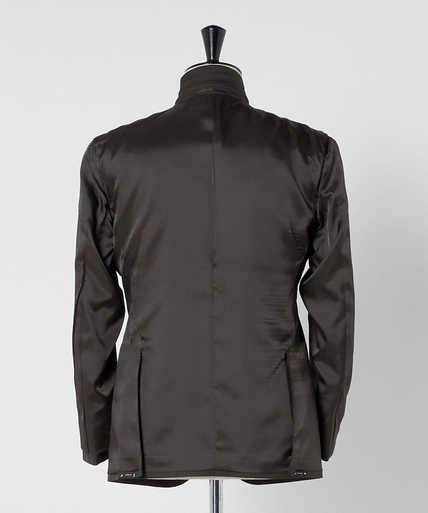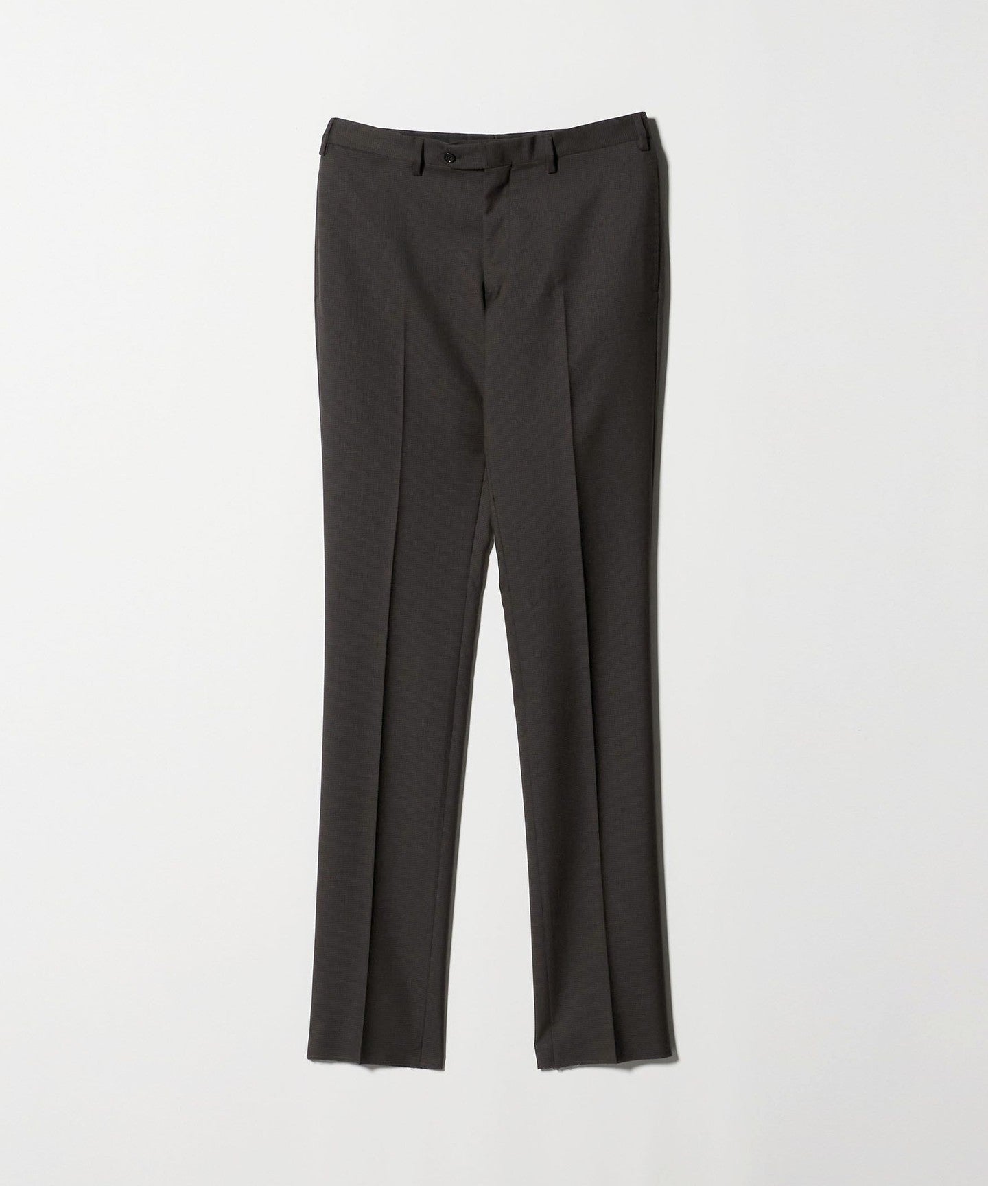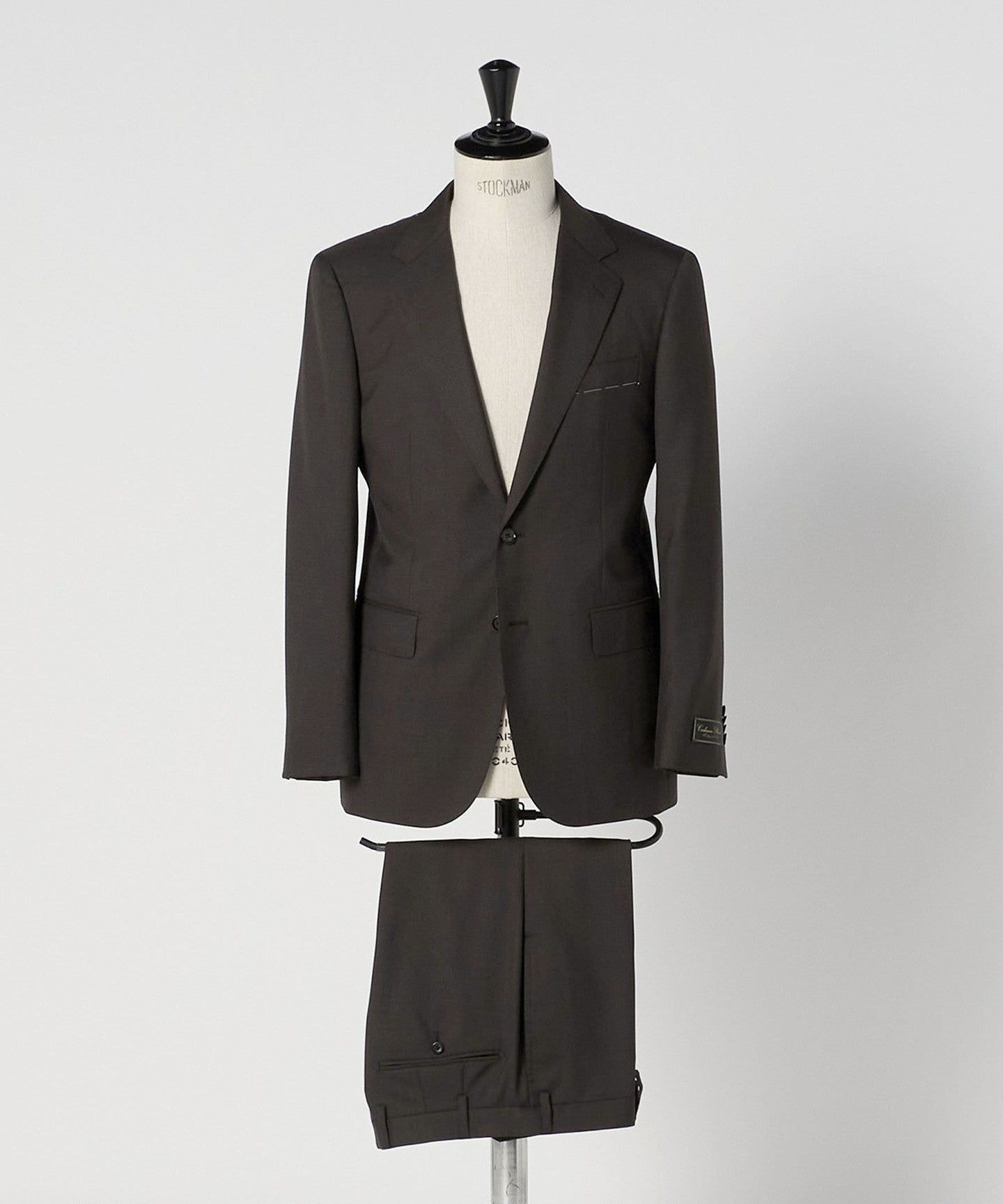 ジャケットはスタンダードな2つボタン、パンツはノータックの腰回りから強めのテーパードをかけ、すっきりとしたシルエットに仕上げています。