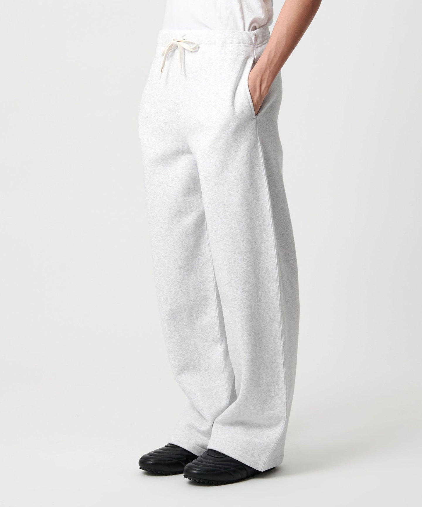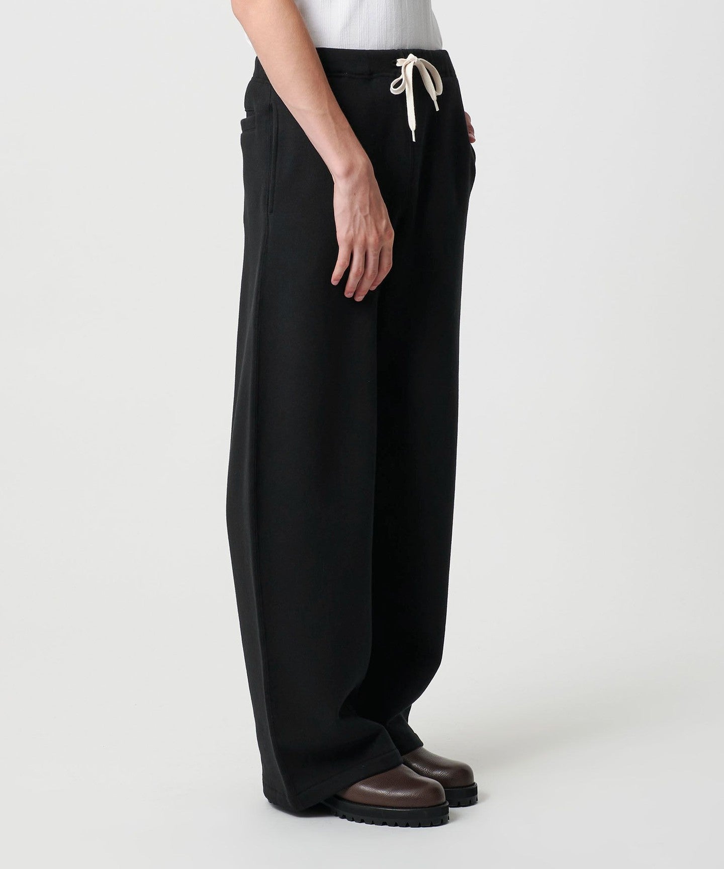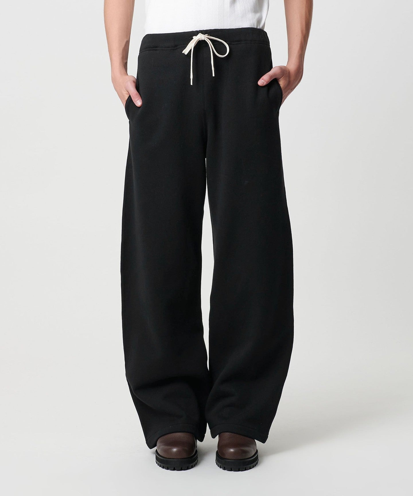 しっかりとした肉感の裏毛(裏微起毛加工)を使用したバギーシルエットのスウェットパンツ。