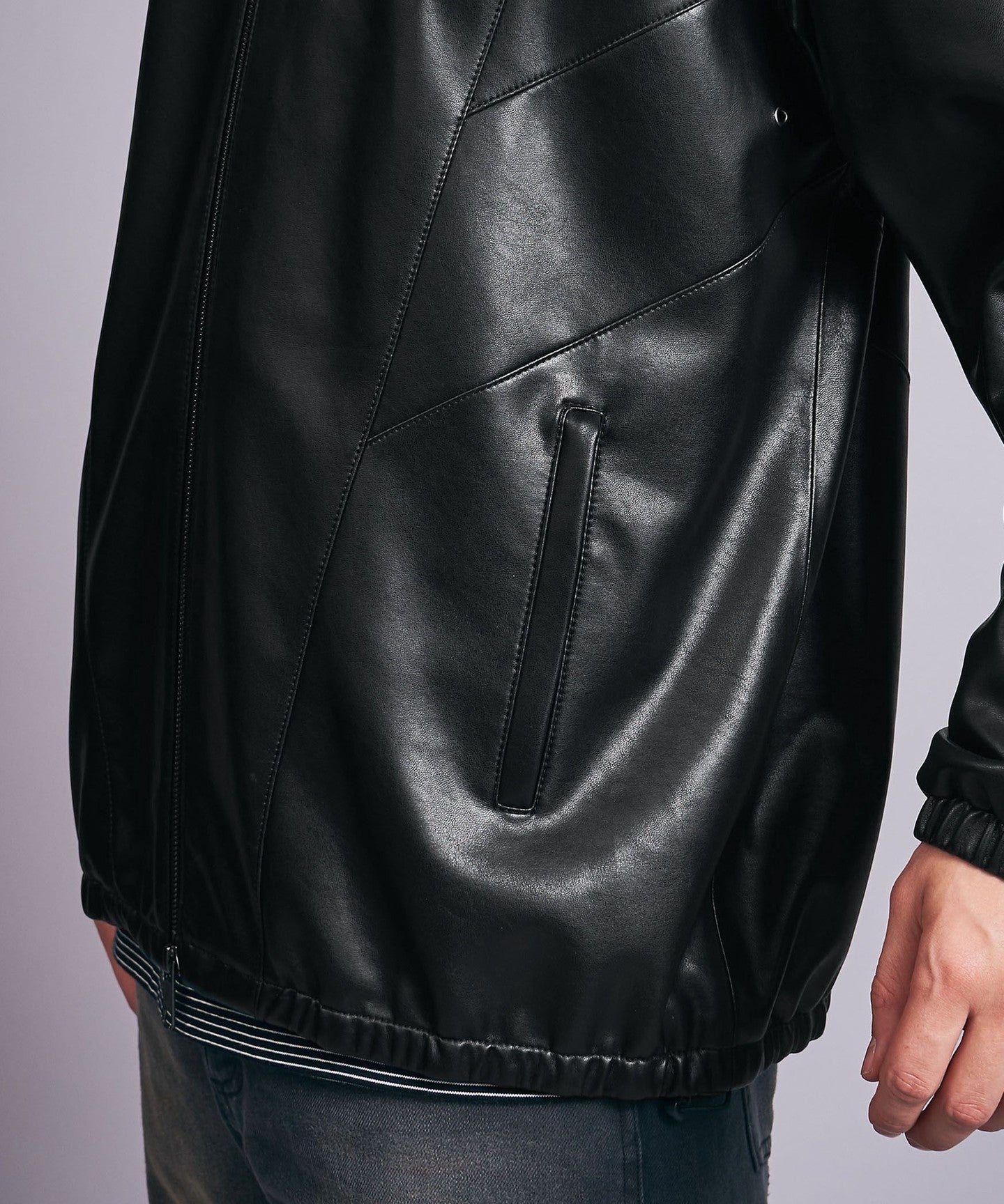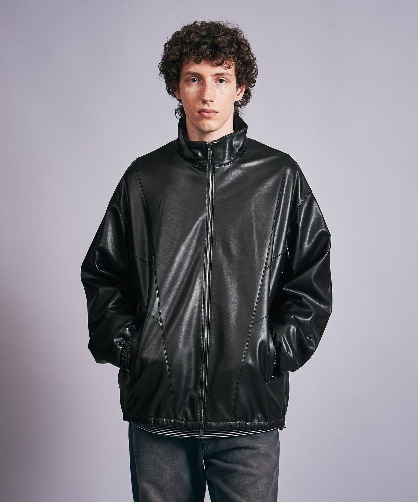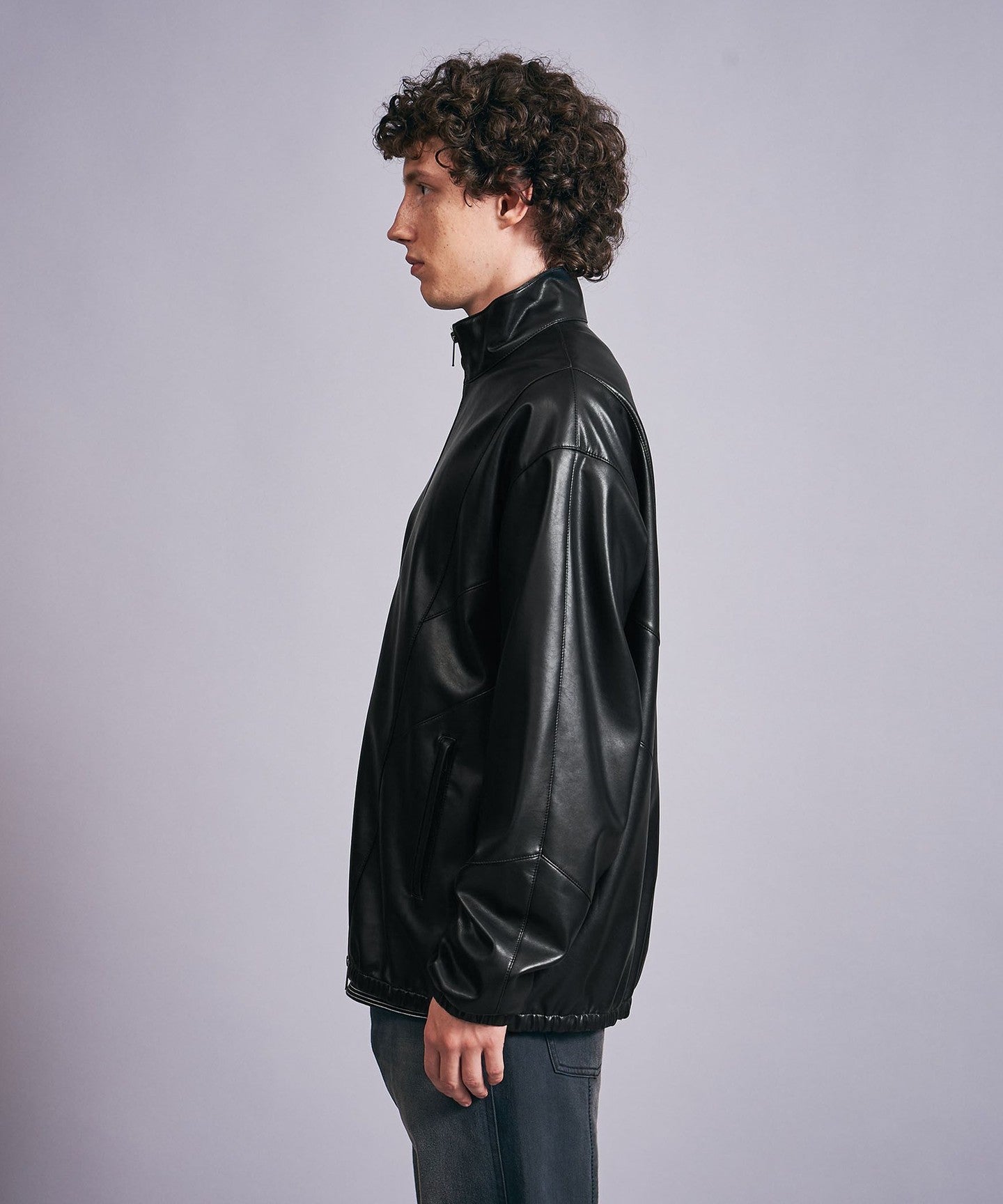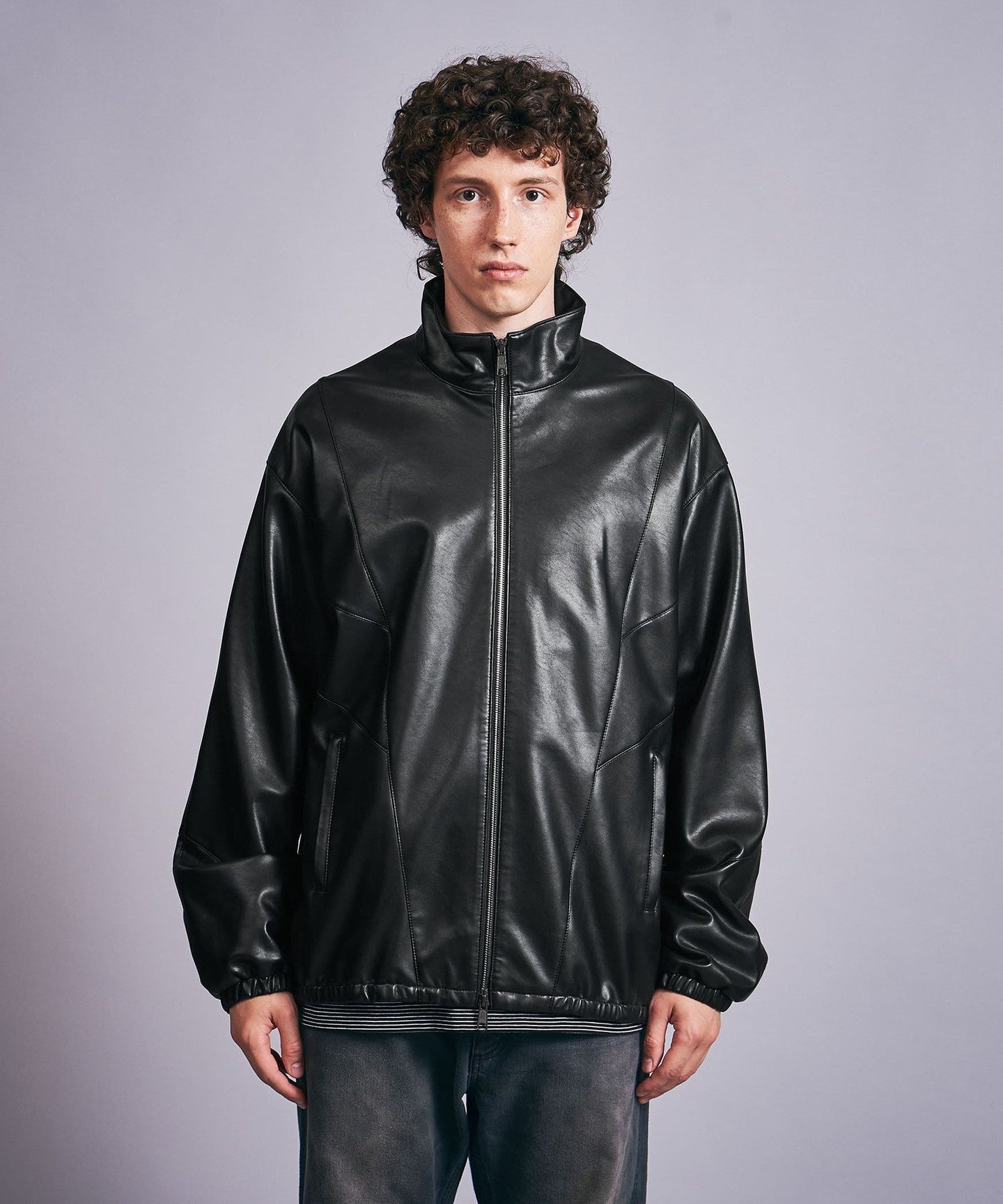 A track jacket made of soft synthetic leather that looks like real leather.