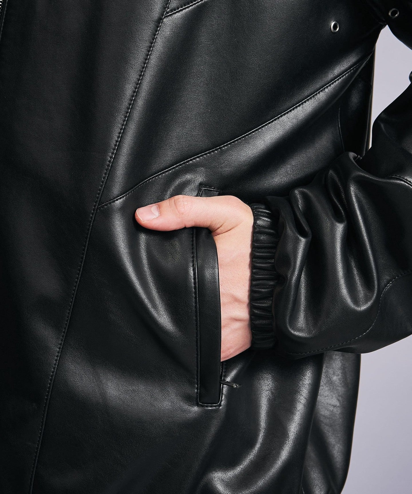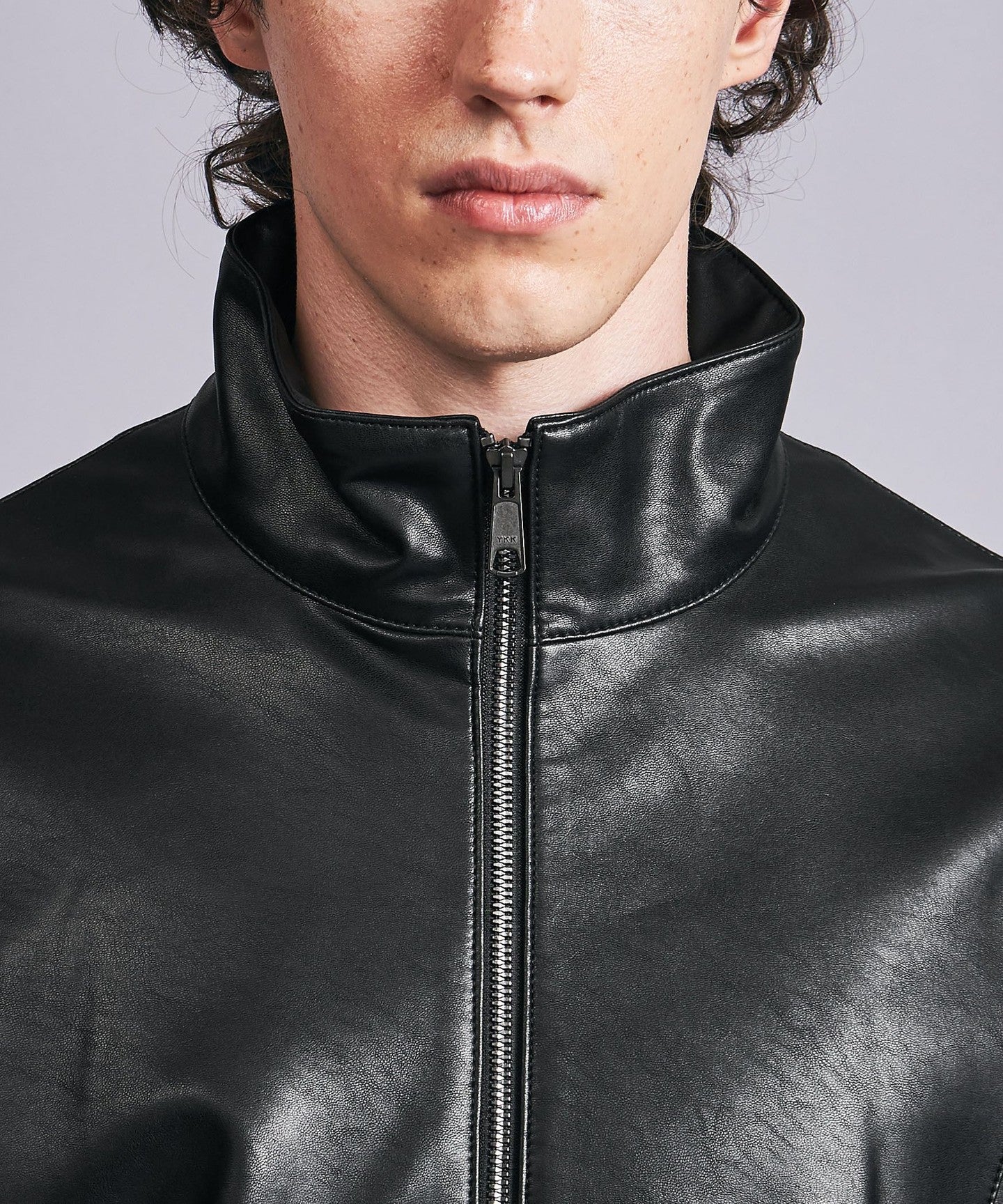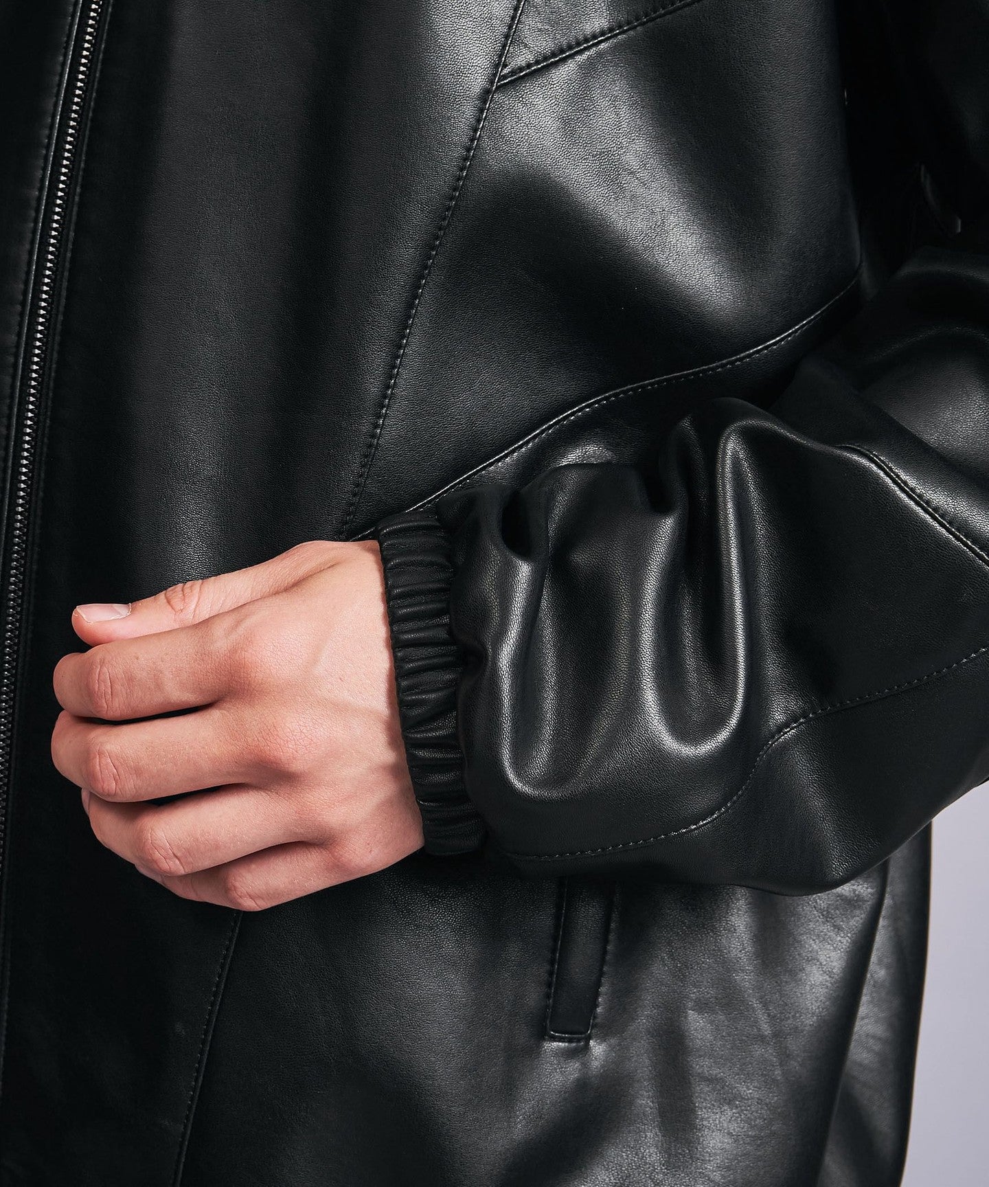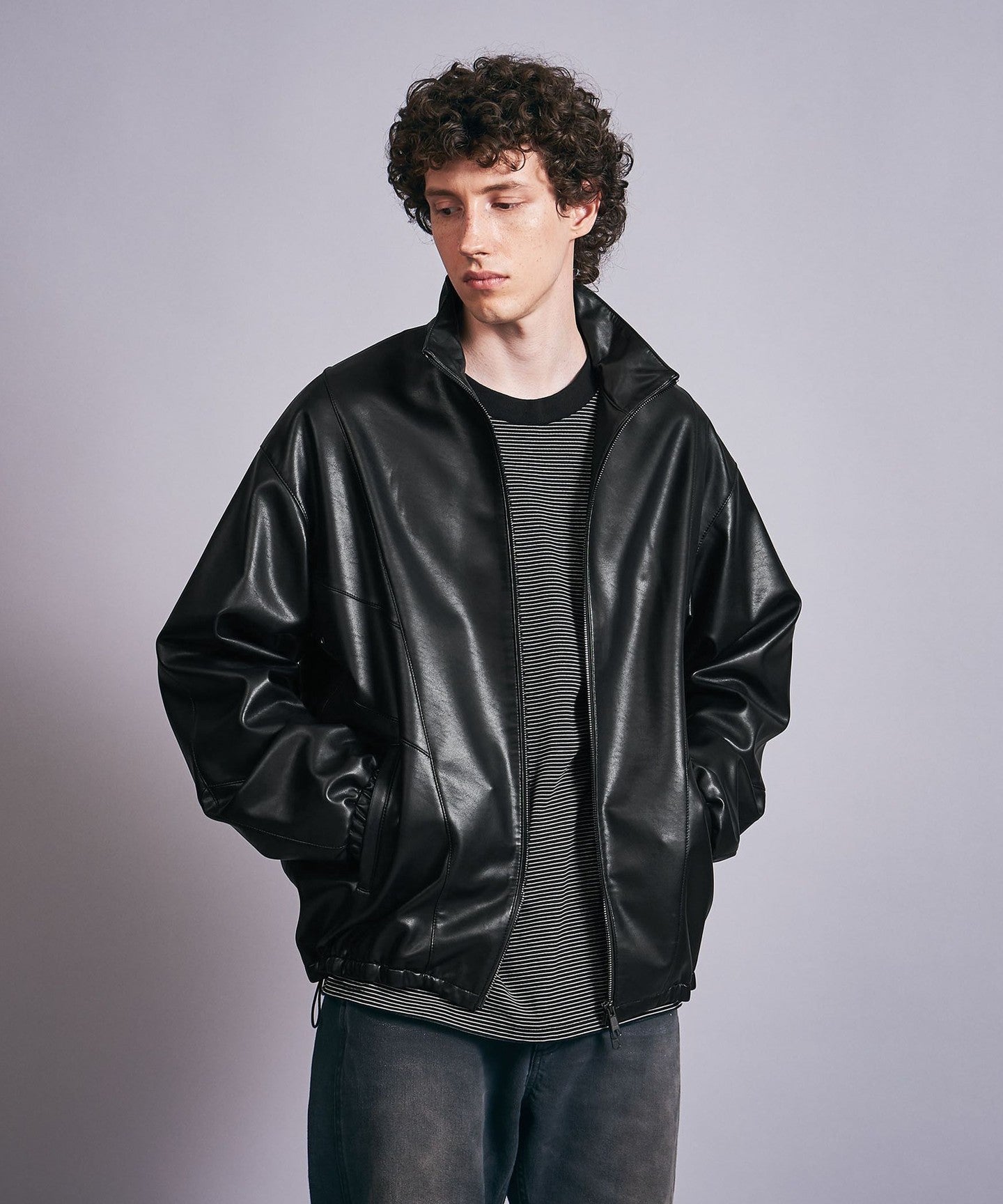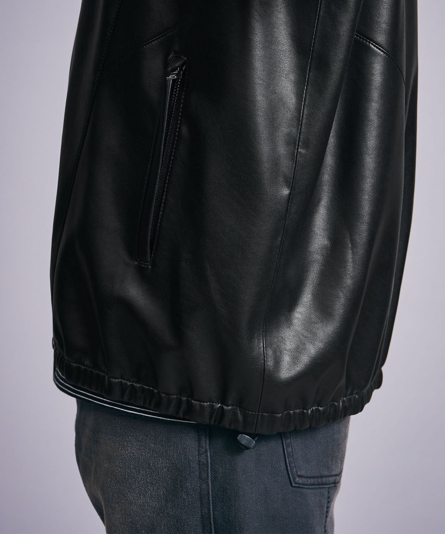 A track jacket made of soft synthetic leather that looks like real leather.