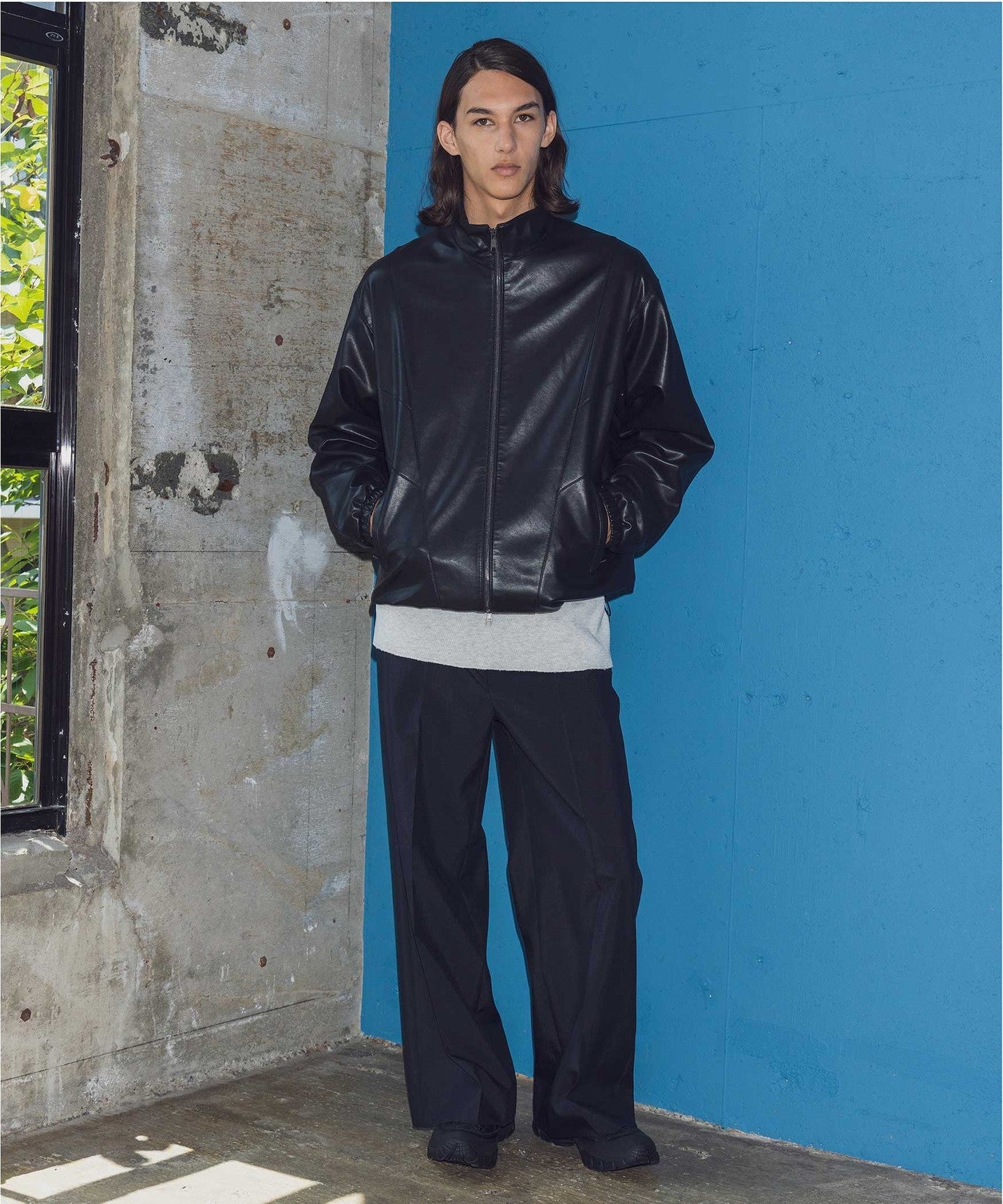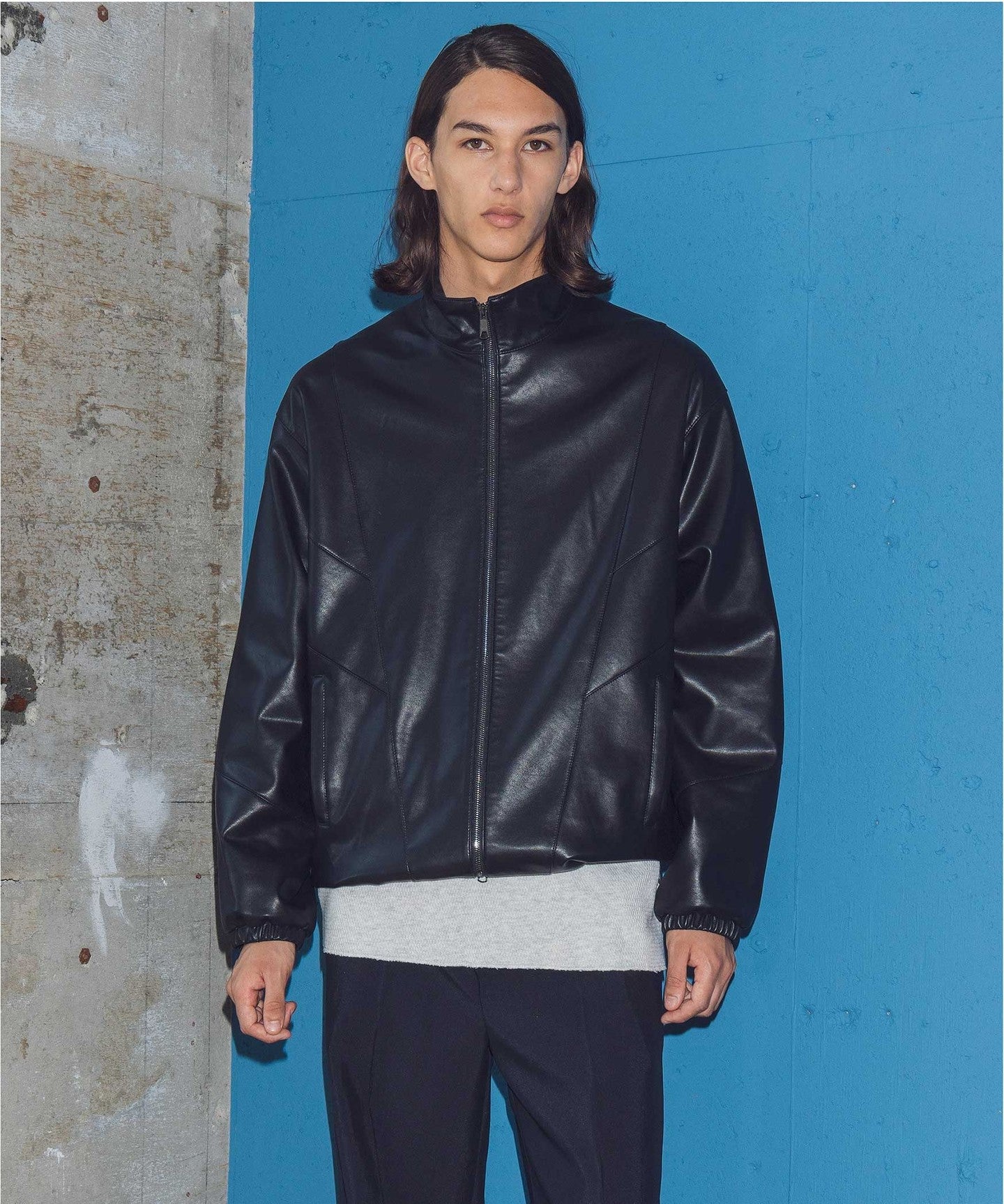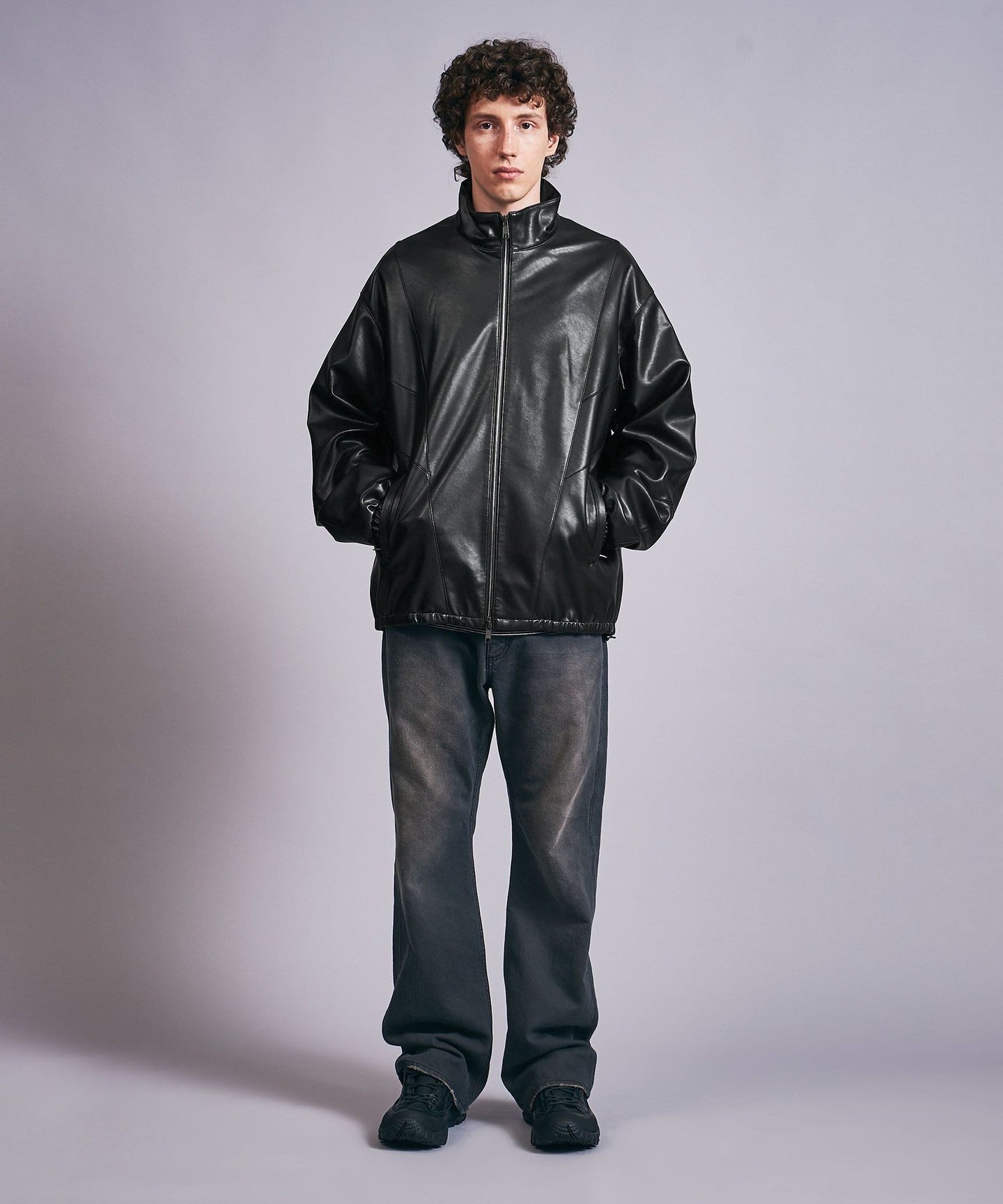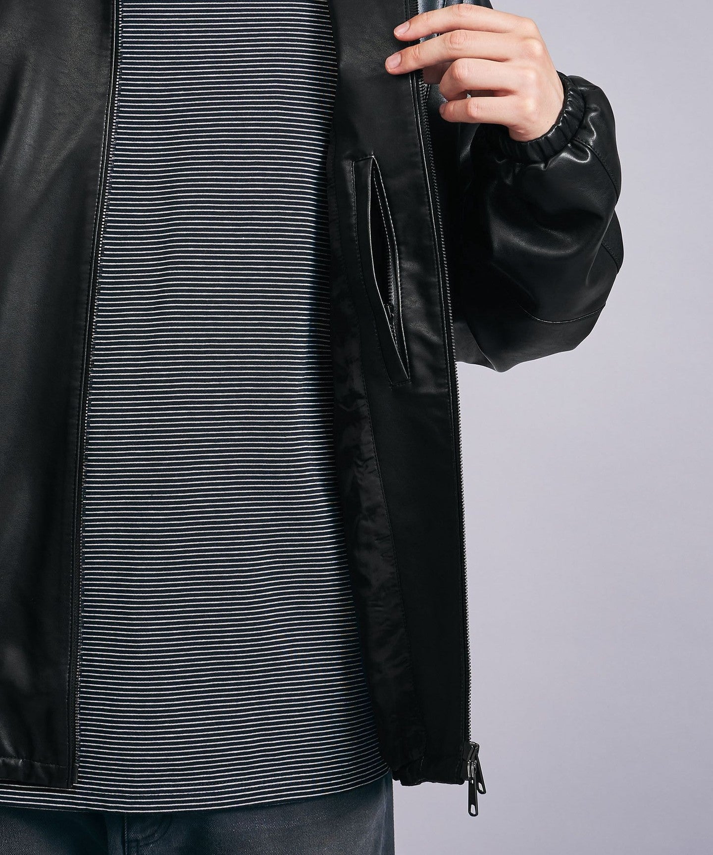 A track jacket made of soft synthetic leather that looks like real leather.