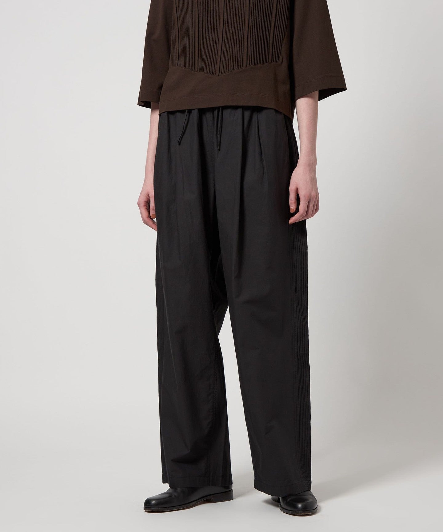 These wide, straight-leg pants feature lavish hand-crafted pin tucks on the side stripes.