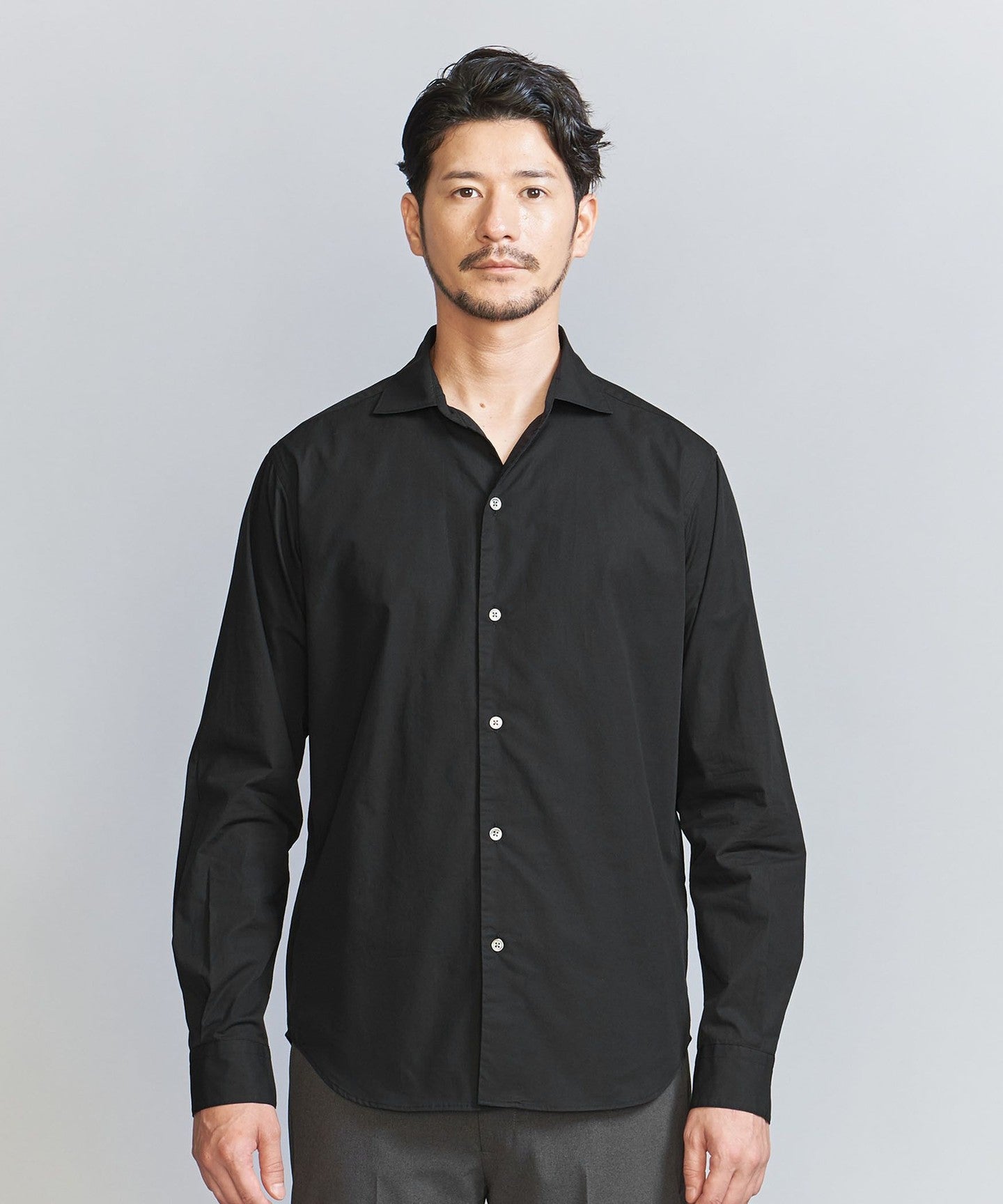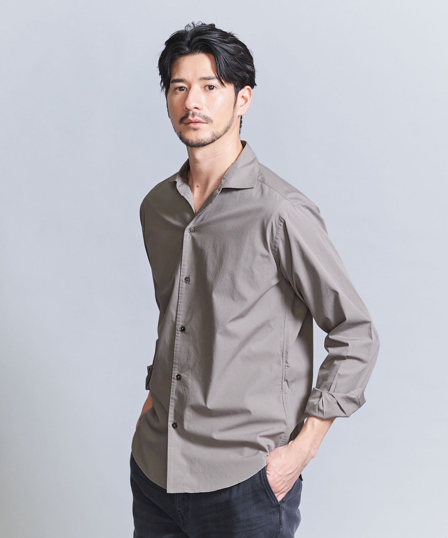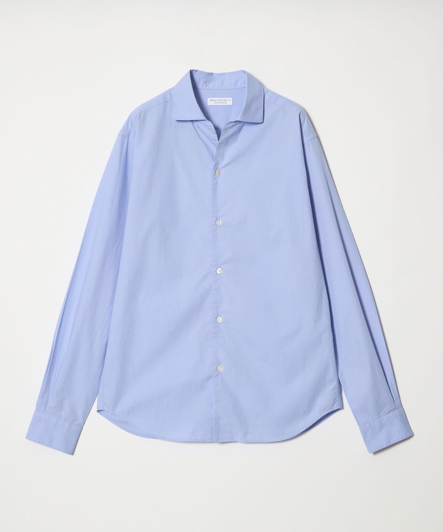 A wide-collar shirt with a clean neckline now available in cotton broadcloth