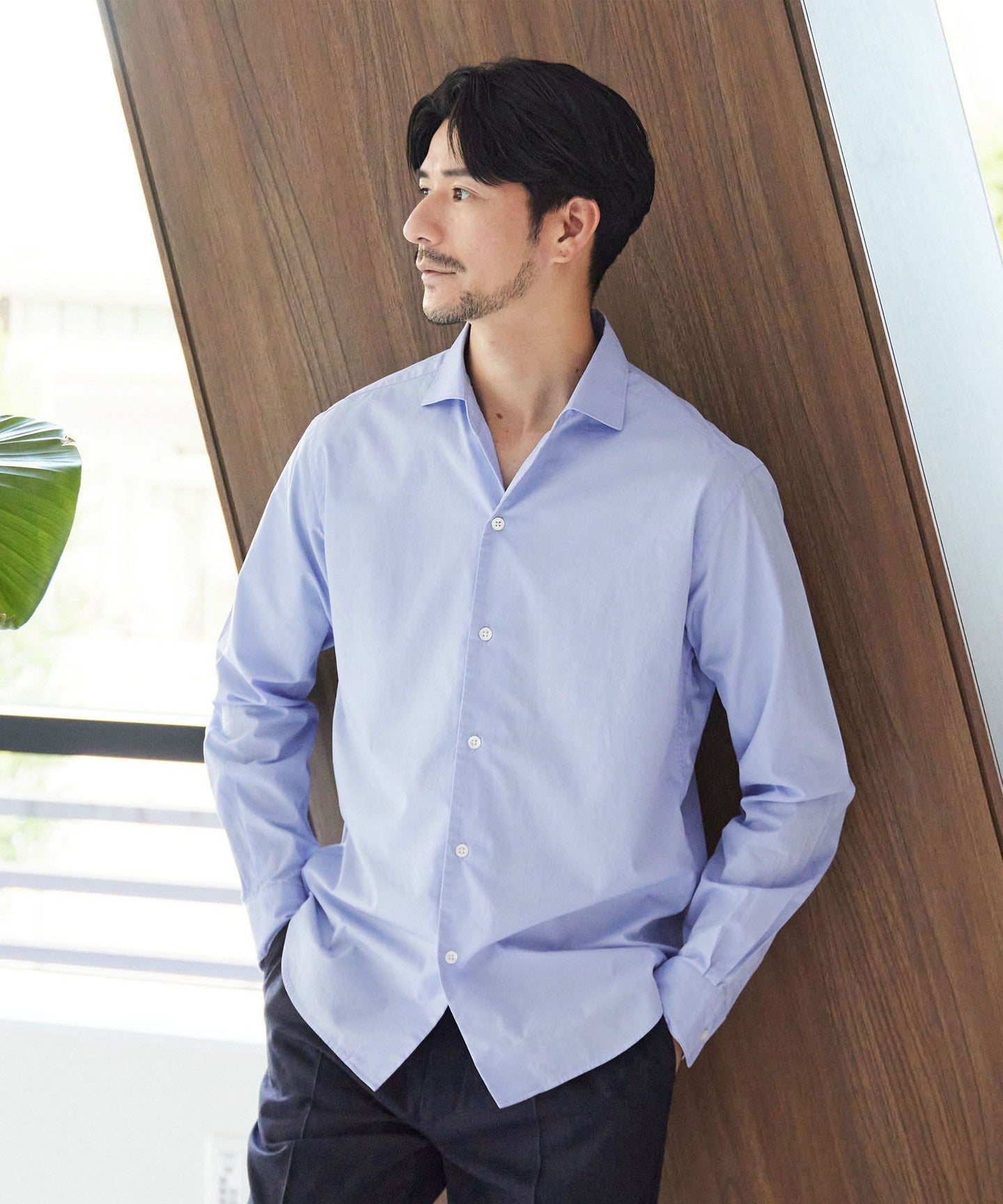[WEB-only WARDROBE SMART] Cotton wide collar skipper shirt