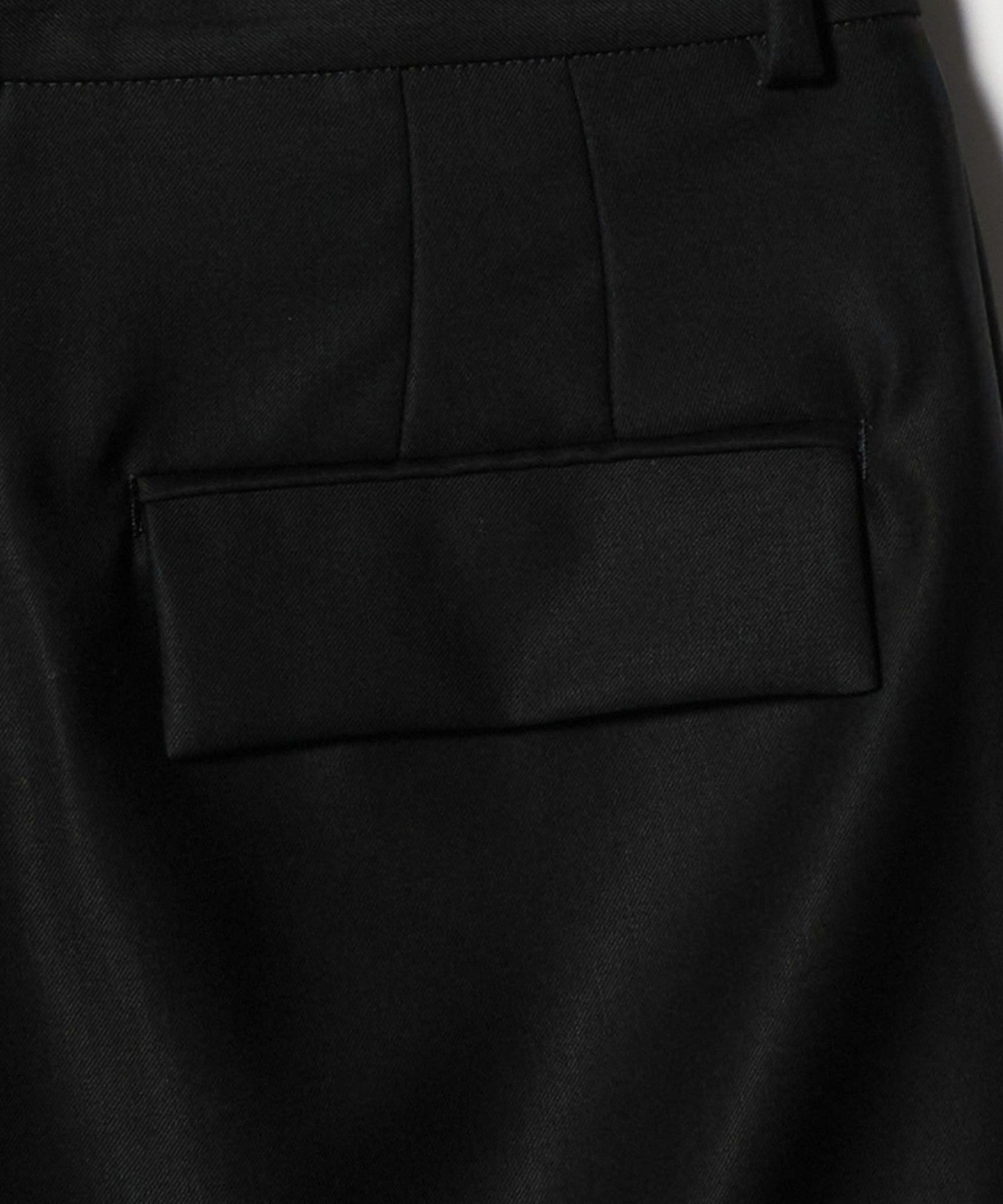 洗練されたフレアシルエットが特徴のトラウザーです。薄手ながらハリがあり、きれいな表面感のツイルを使用しています。腰回りはすっきりと、膝上から緩やかなフレアラインを描きながら、裾に託したほどよいボリュームがスタイリッシュなバランスに。プレーンなニットを添えたり、同シリーズのビスチェやジャケットを合わせたセットアップもおすすめです。クリースを施した端正なデザインが凛としたムードを与え、カジュアルにもモードにも溶け込む万能な一着。