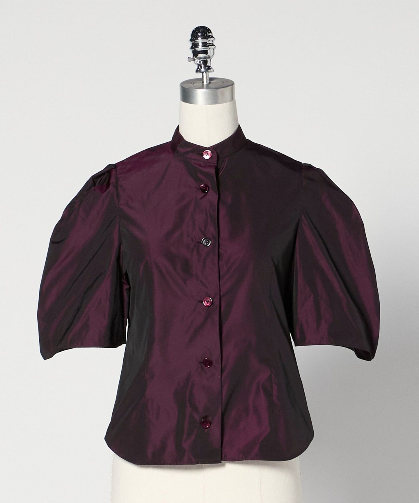 LOEFFGlossy Taffeta Puff Sleeve Blouse
