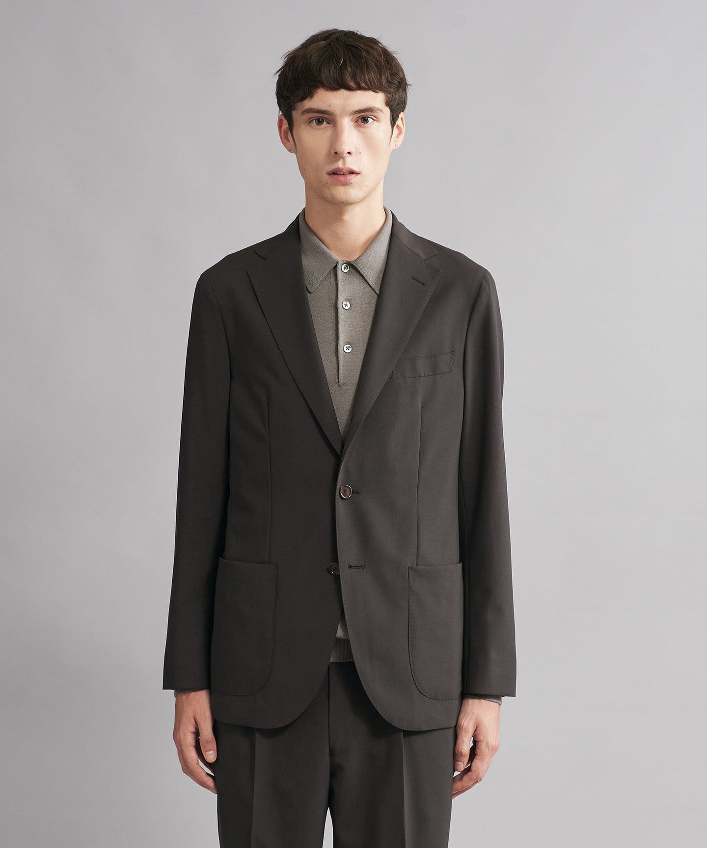 The tailored jacket uses fusible interlining, making it lighter and softer to wear than suits with a structured silhouette that use wool interlining or padding.
