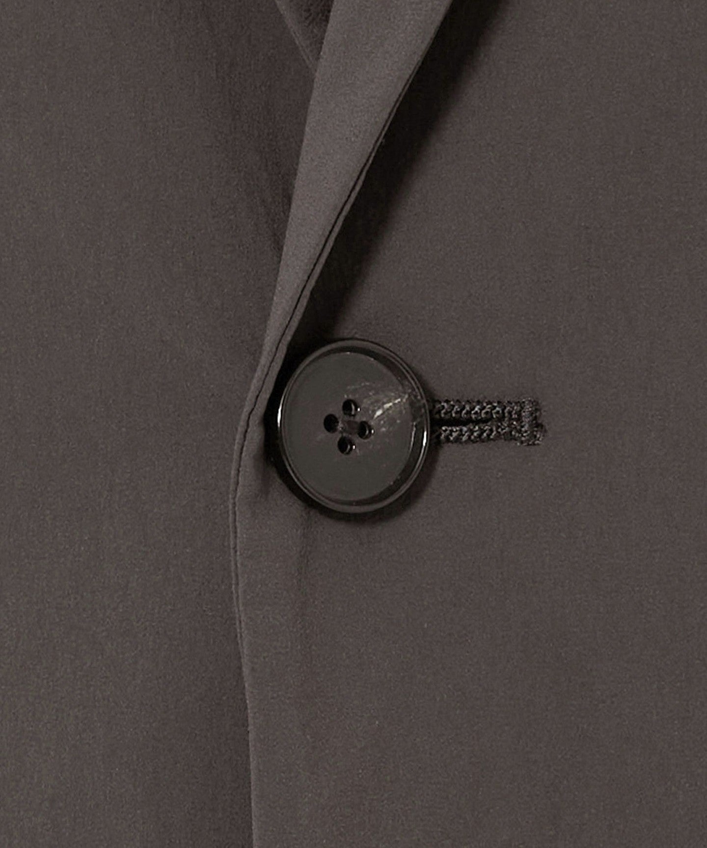 This two-button jacket has a boxy silhouette with almost no waistband, giving it a relaxed feel.