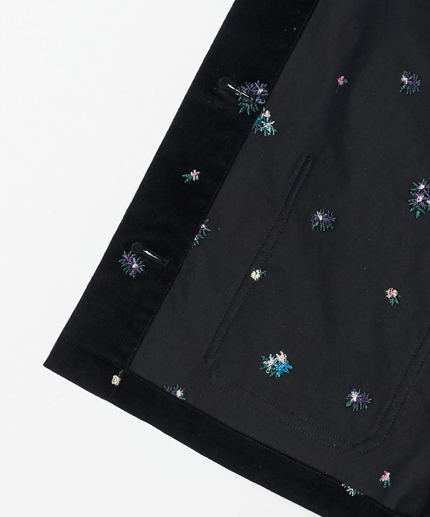 秋のムードが感じられる別珍生地に軽やかな小花柄の刺繍を施しました。