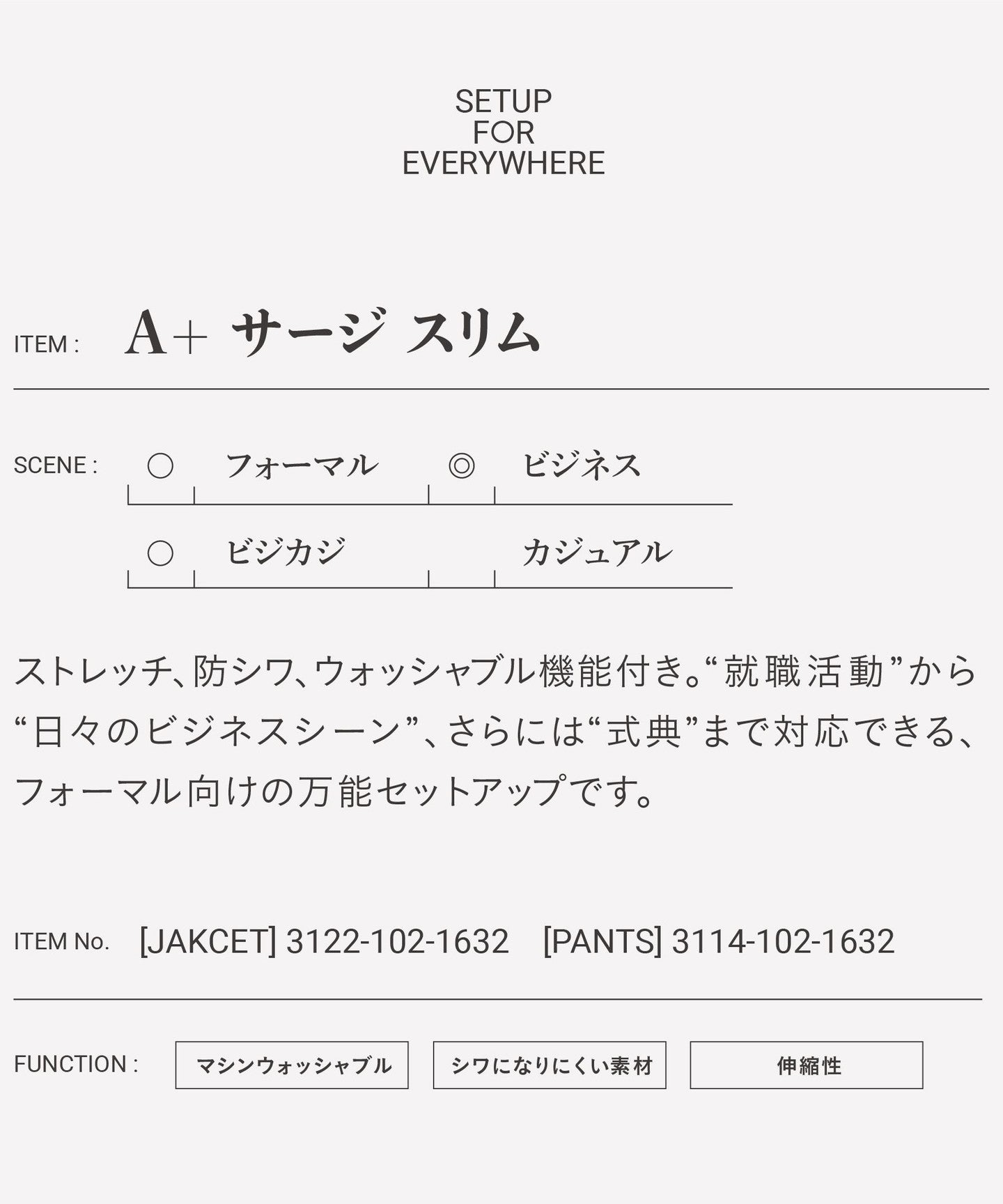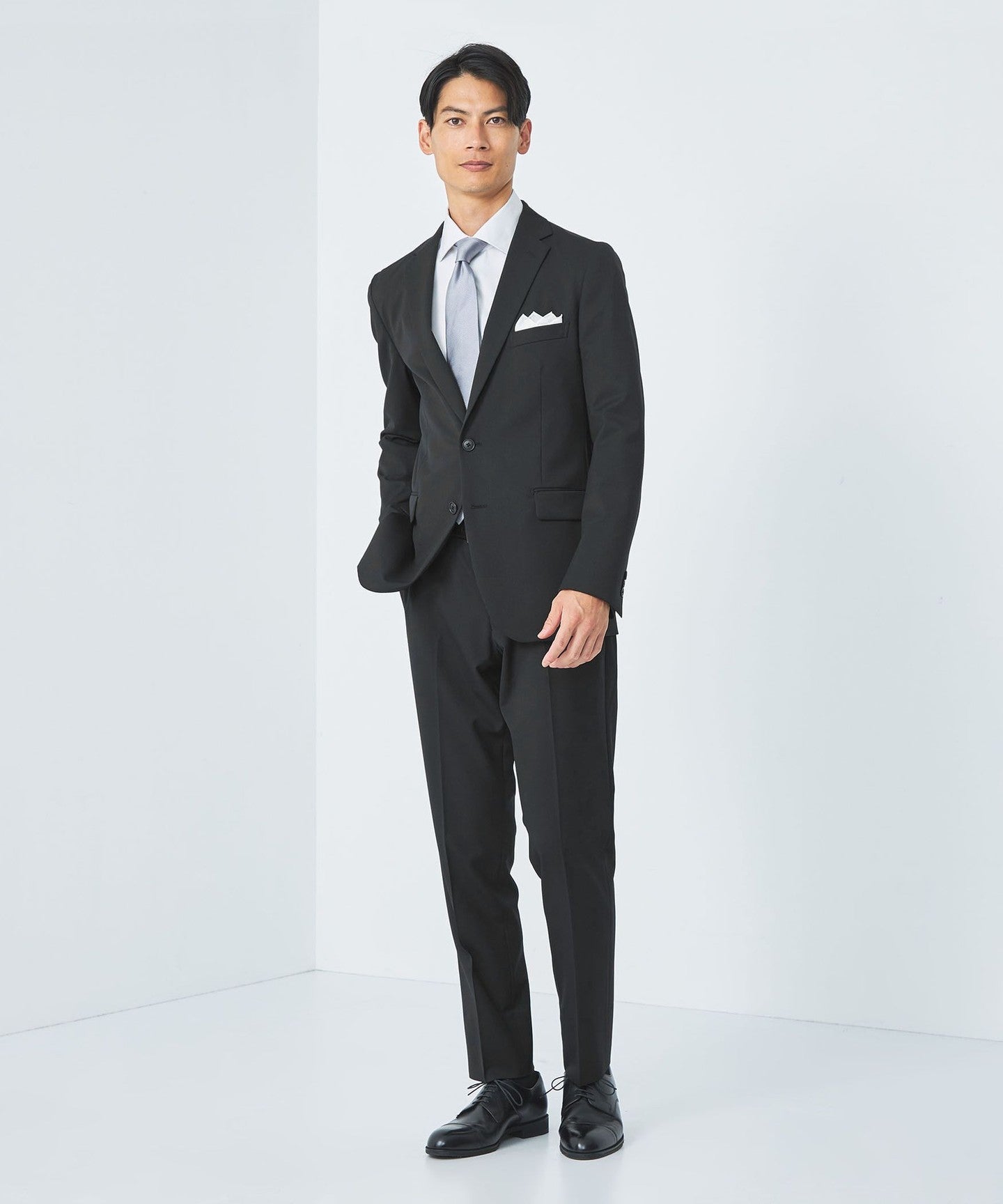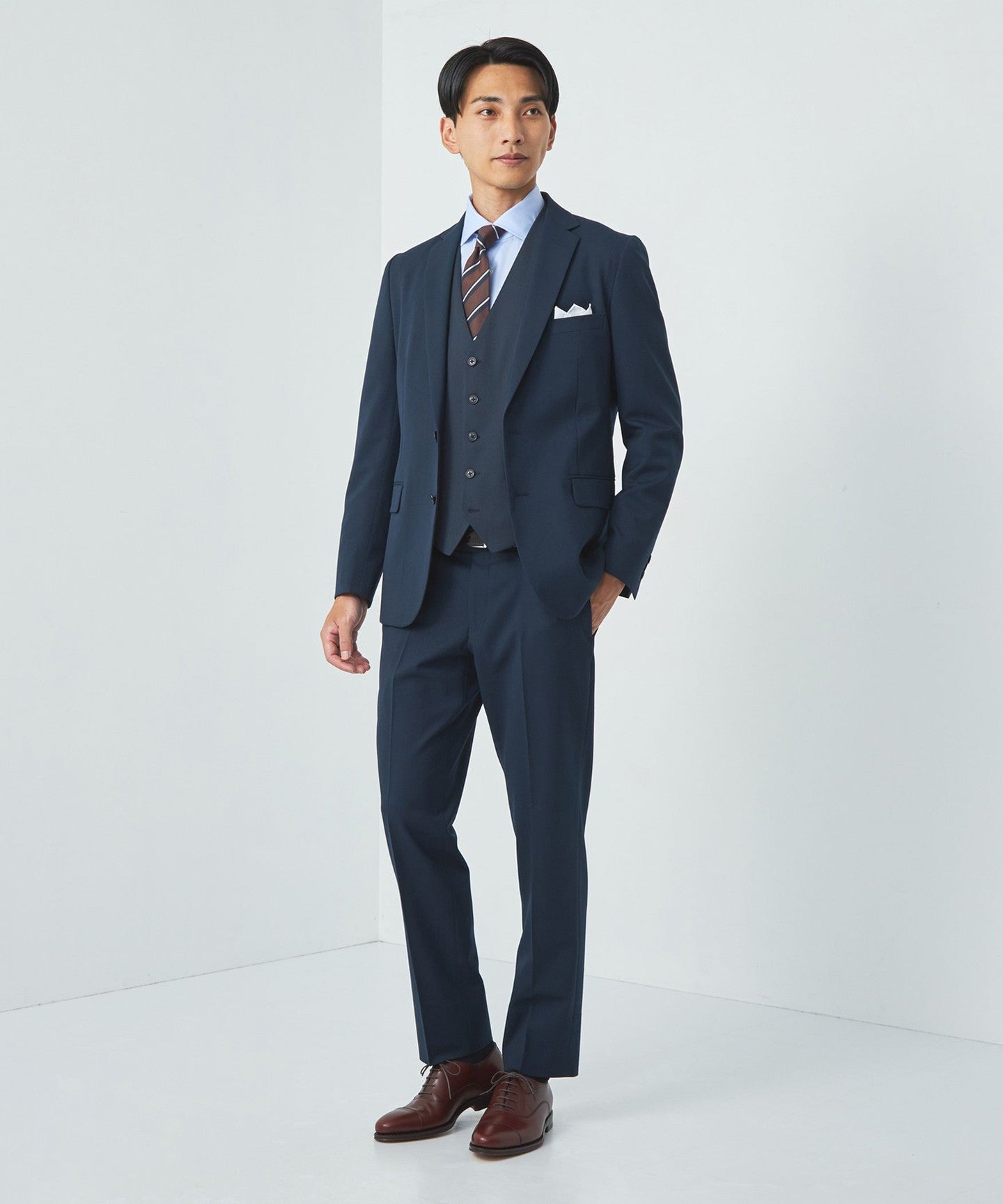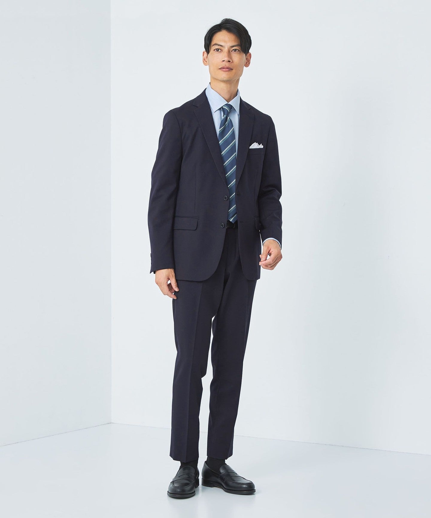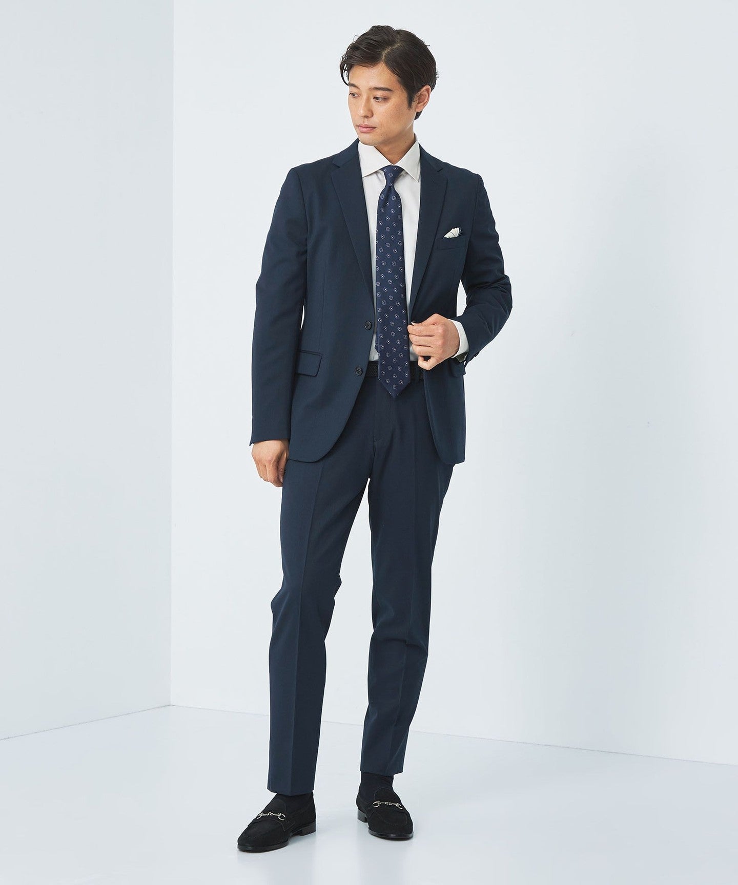 A set-up style with a jacket made of the same material is recommended for business situations.