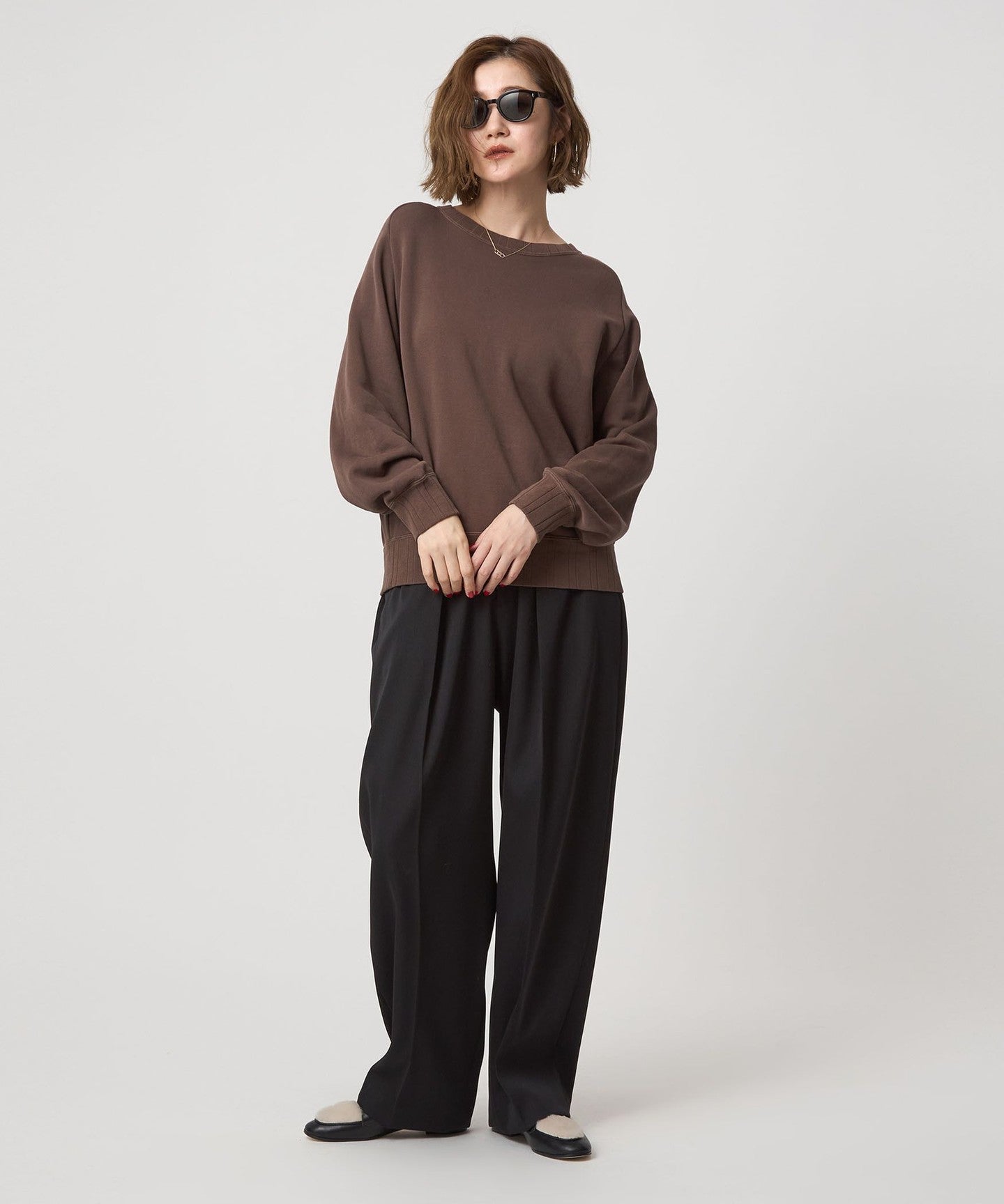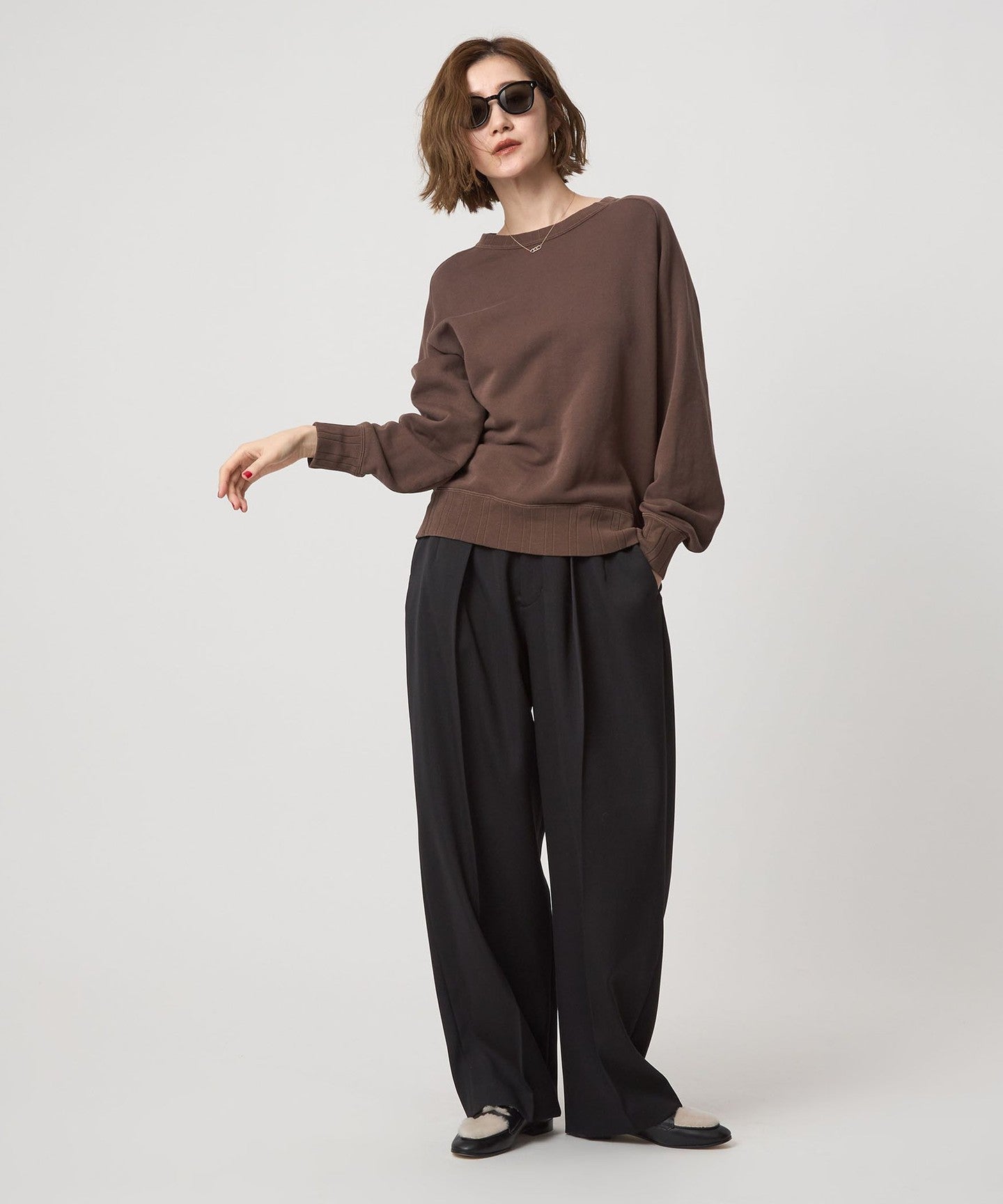It has a relaxed silhouette but not too long length, making it a well-balanced piece that pairs well with voluminous pants.